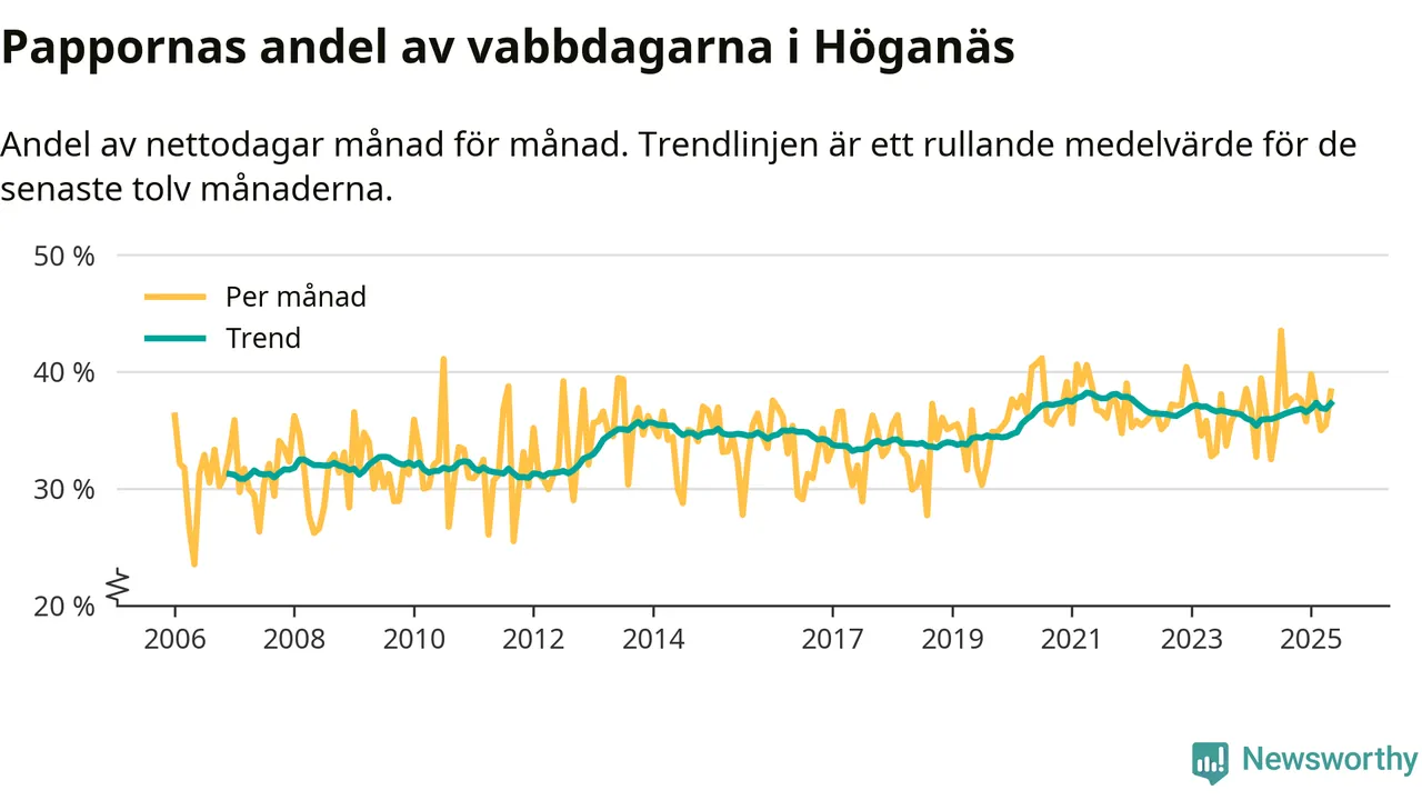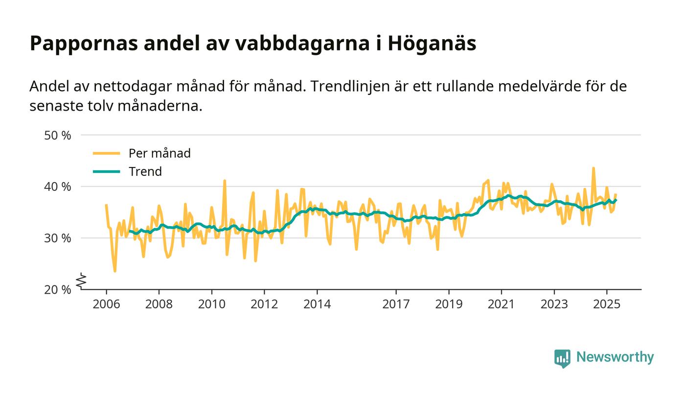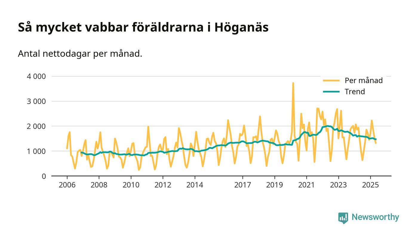 Höganäs ligger en bit från ett jämställt uttag. Under de senaste tolv månaderna har männen stått för 37 procent av all vabb i kommunen.