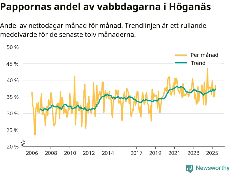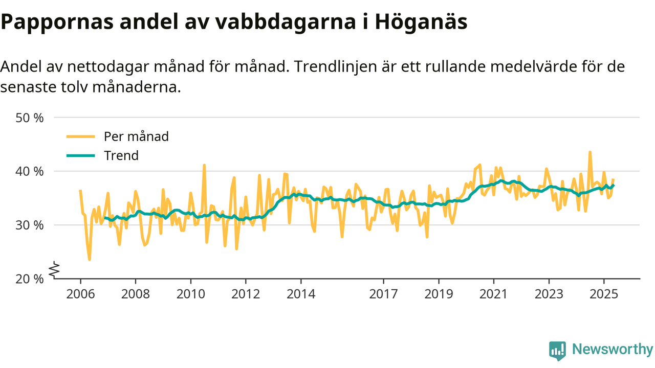 Kraftigt ökat vabbande över tid – men mindre än under pandemin