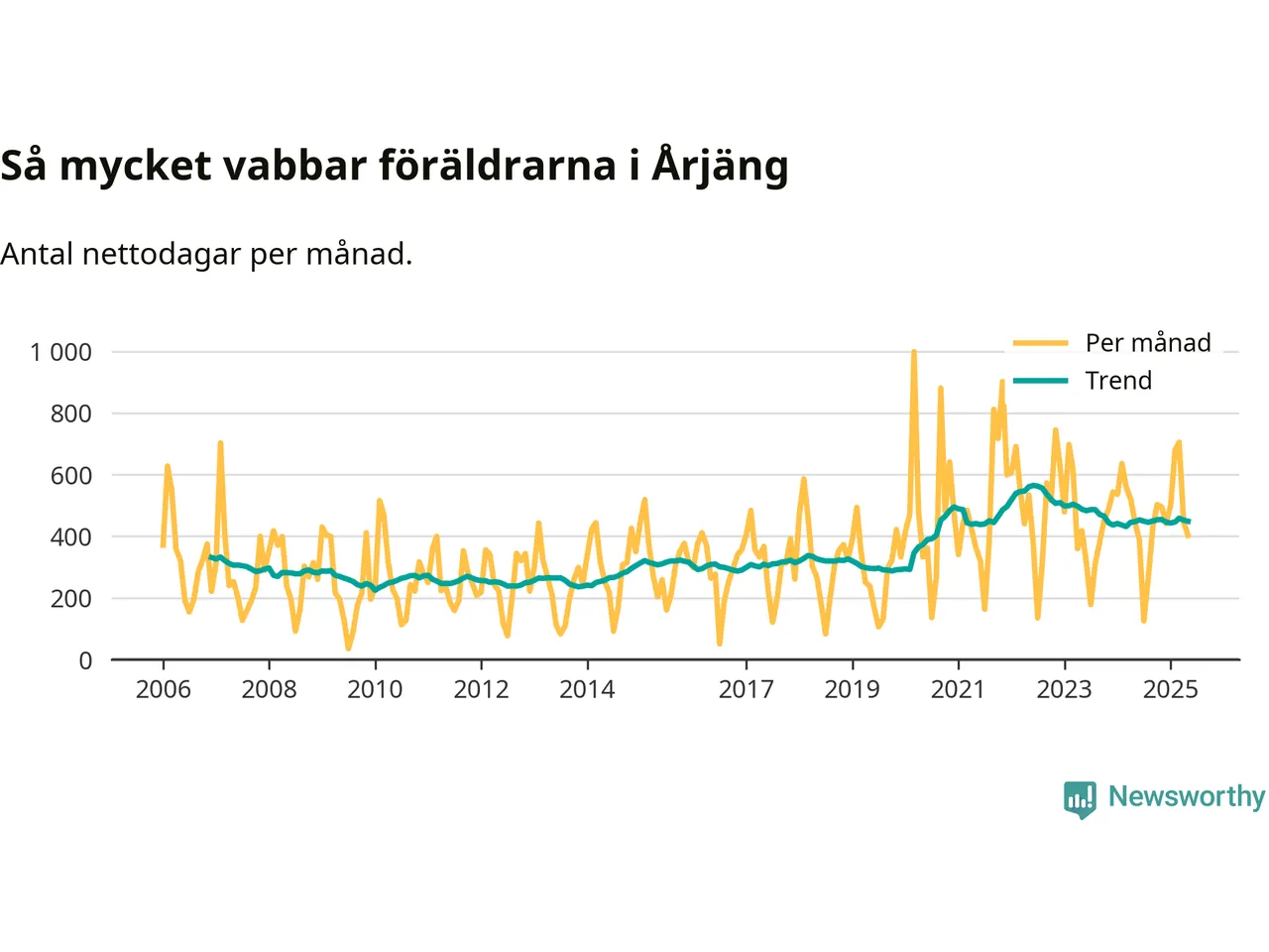 Trenden fortsätter – pappor jobbar, mammor stannar hemma när barnen är sjuka. Årjängs kommun sticker ut med ett av landets mest ojämställda vabbuttag.