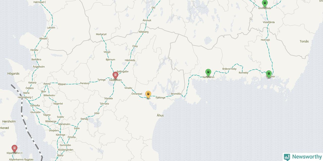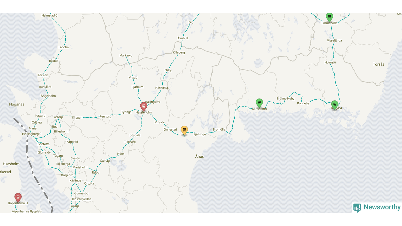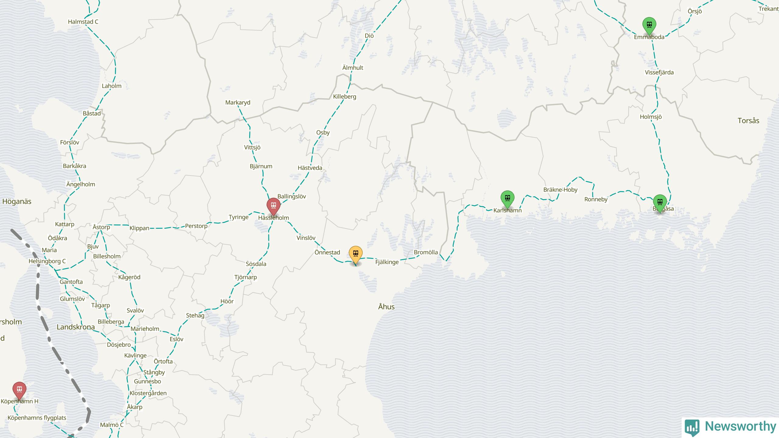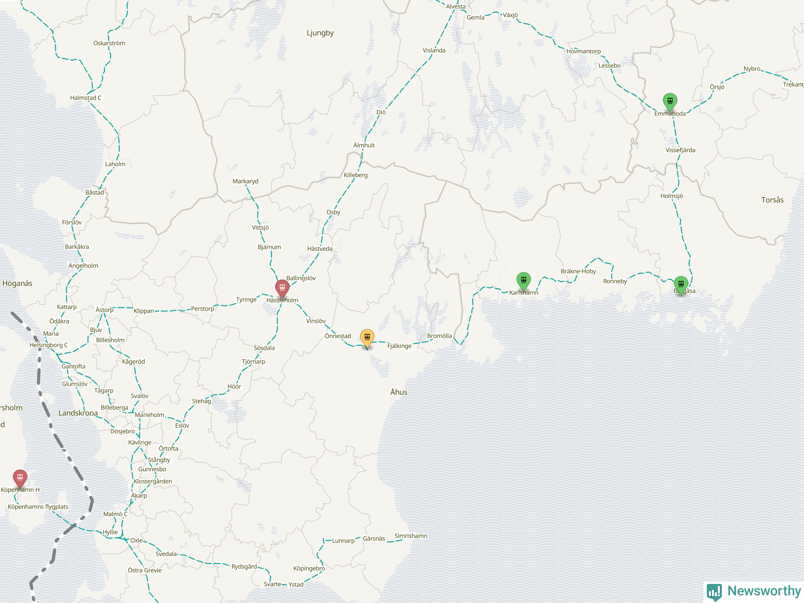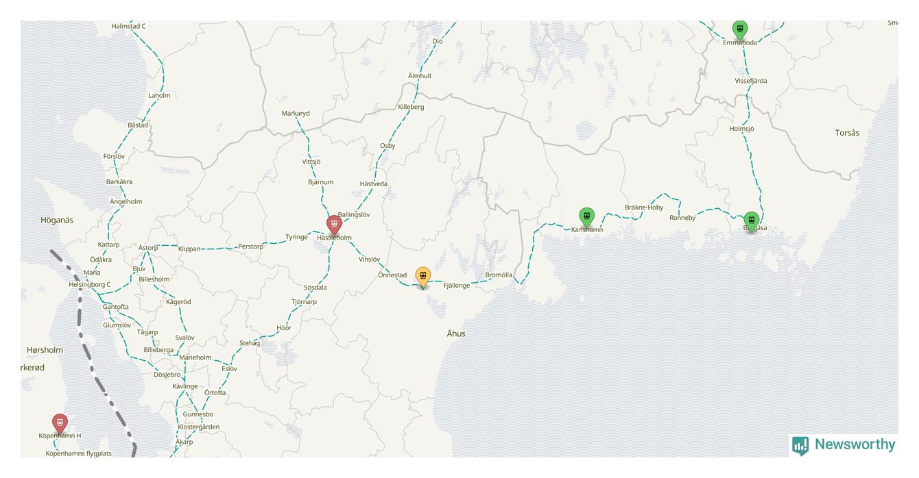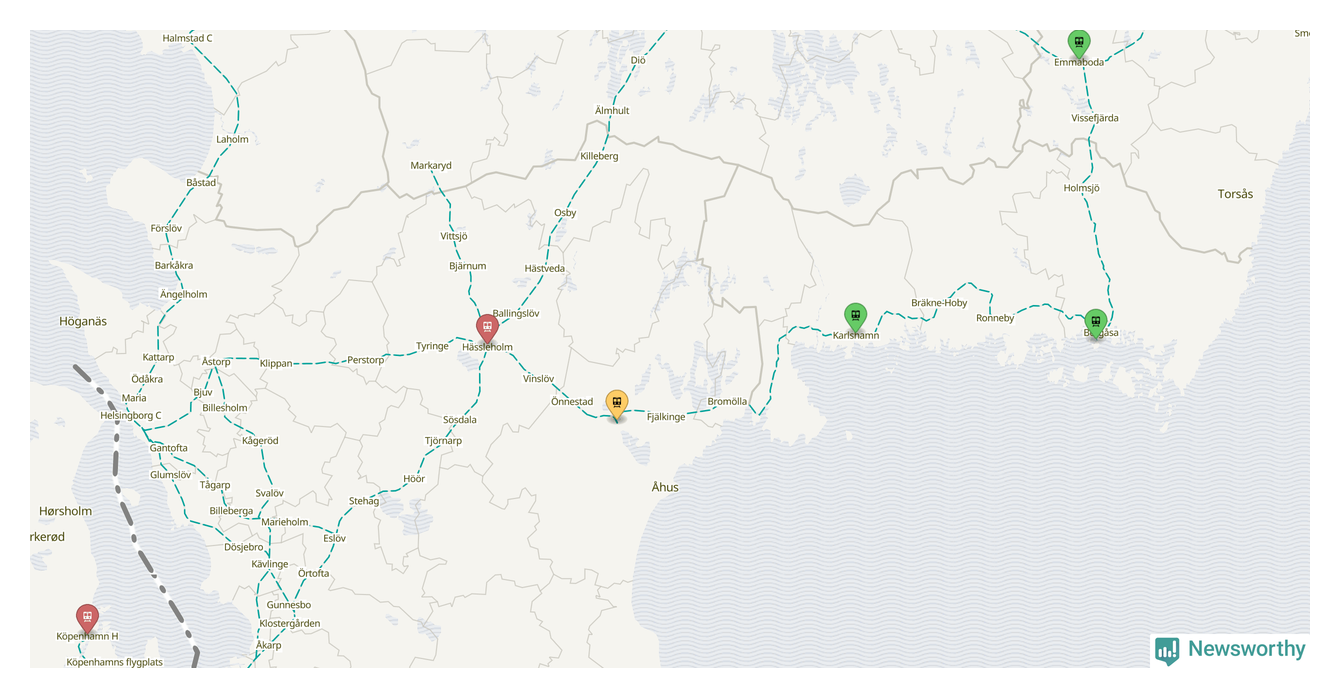 Kartdata från Mapbox, Newsworthy, OpenStreetMap och Trafikverket. Uppgifter om sträckor med passagerartrafik från jarnvag.net.