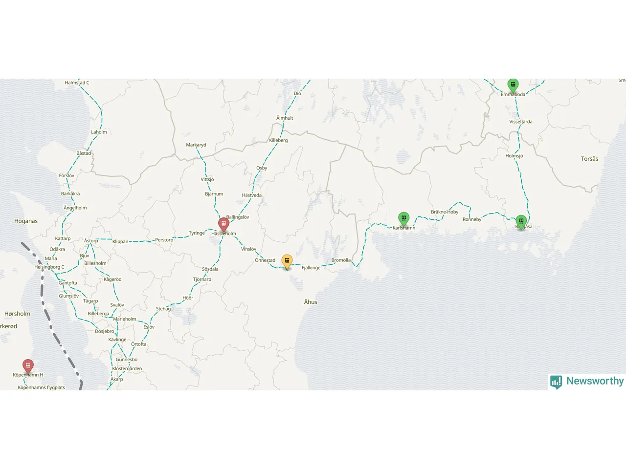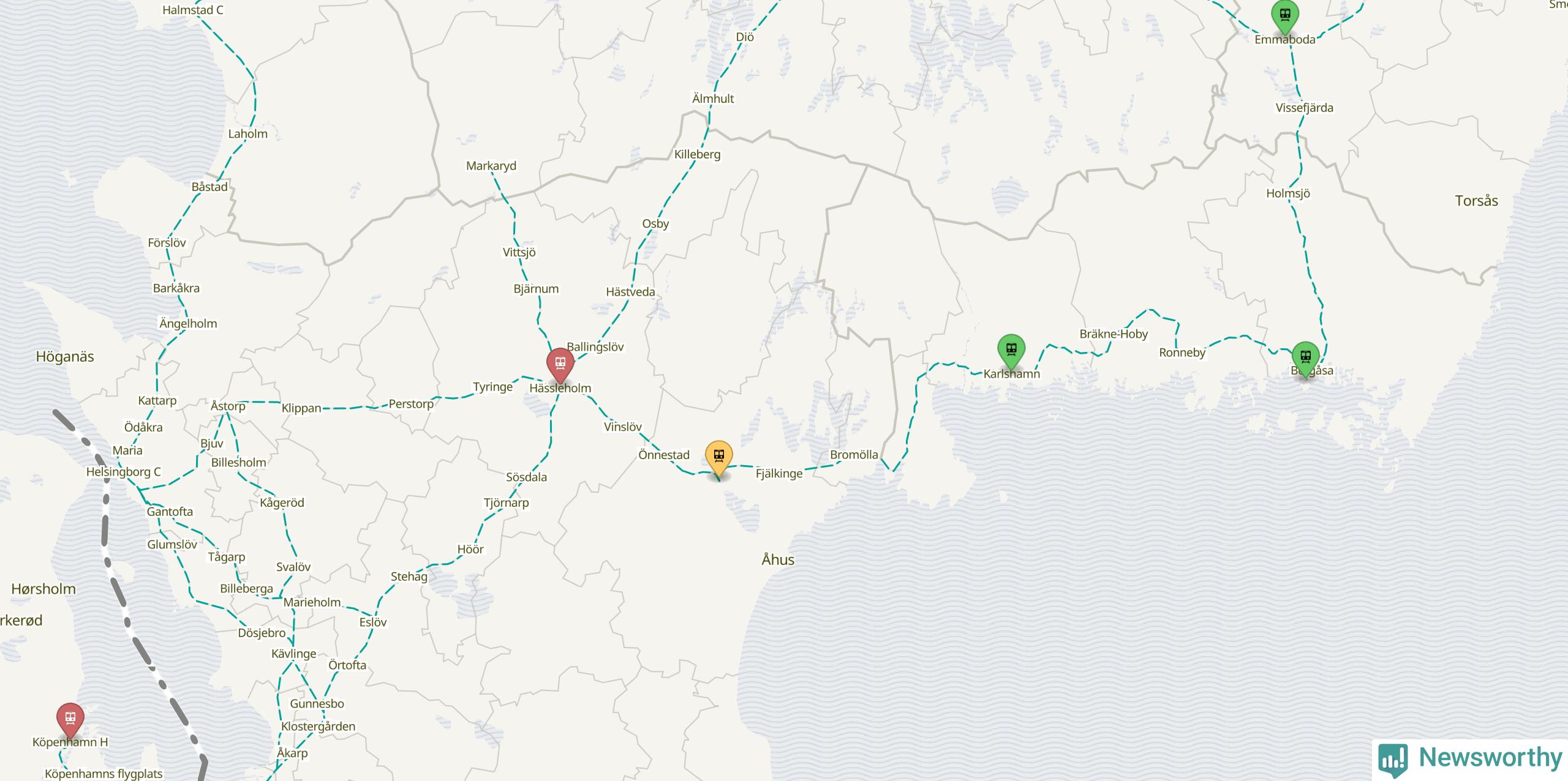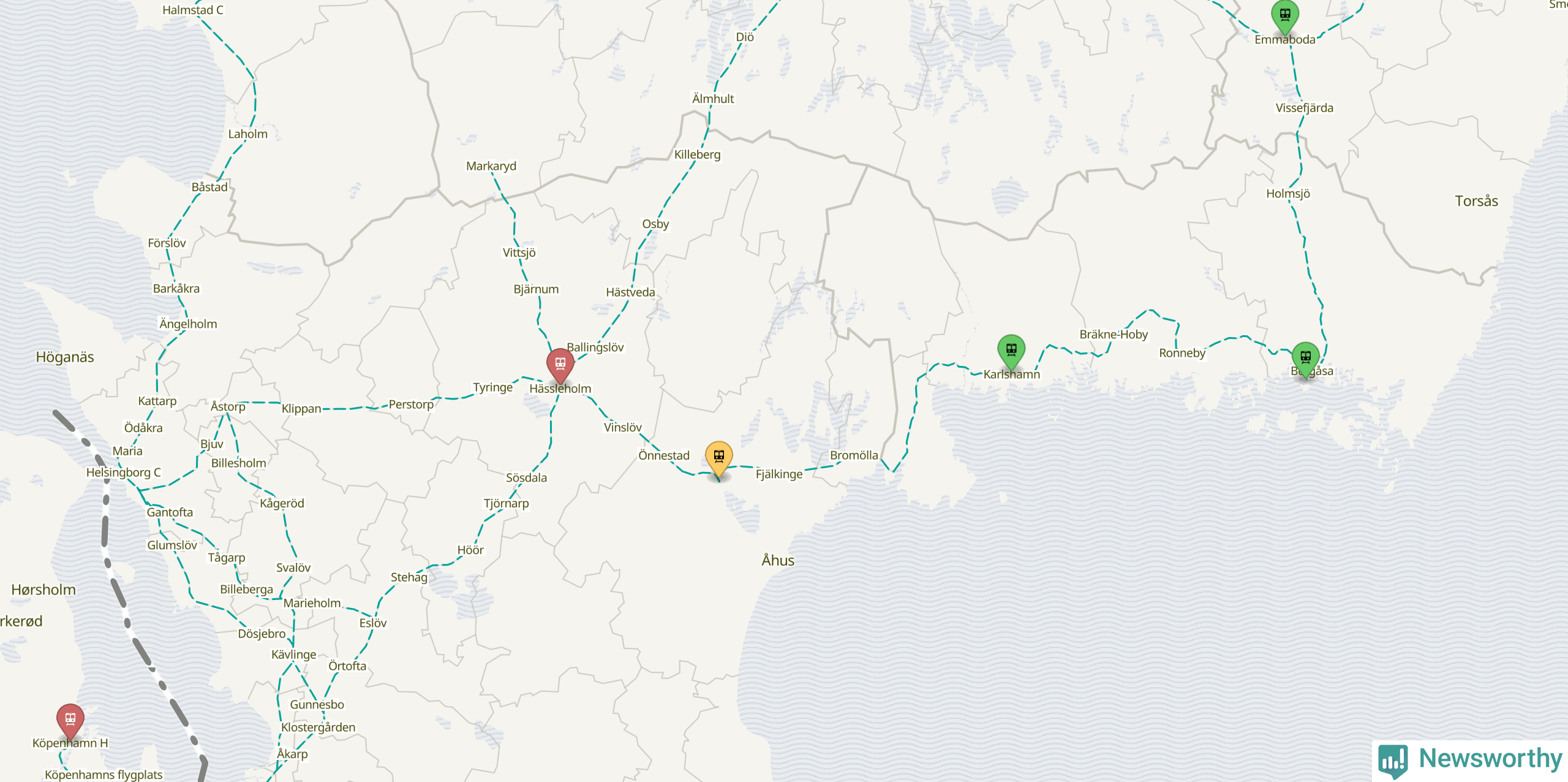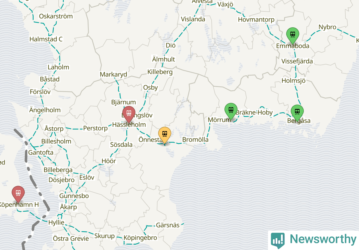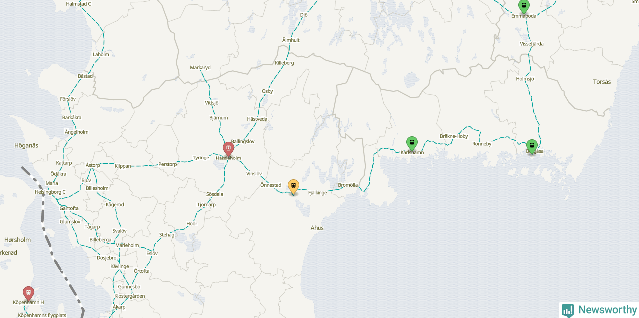 Kartdata från Mapbox, Newsworthy, OpenStreetMap och Trafikverket. Uppgifter om sträckor med passagerartrafik från jarnvag.net.