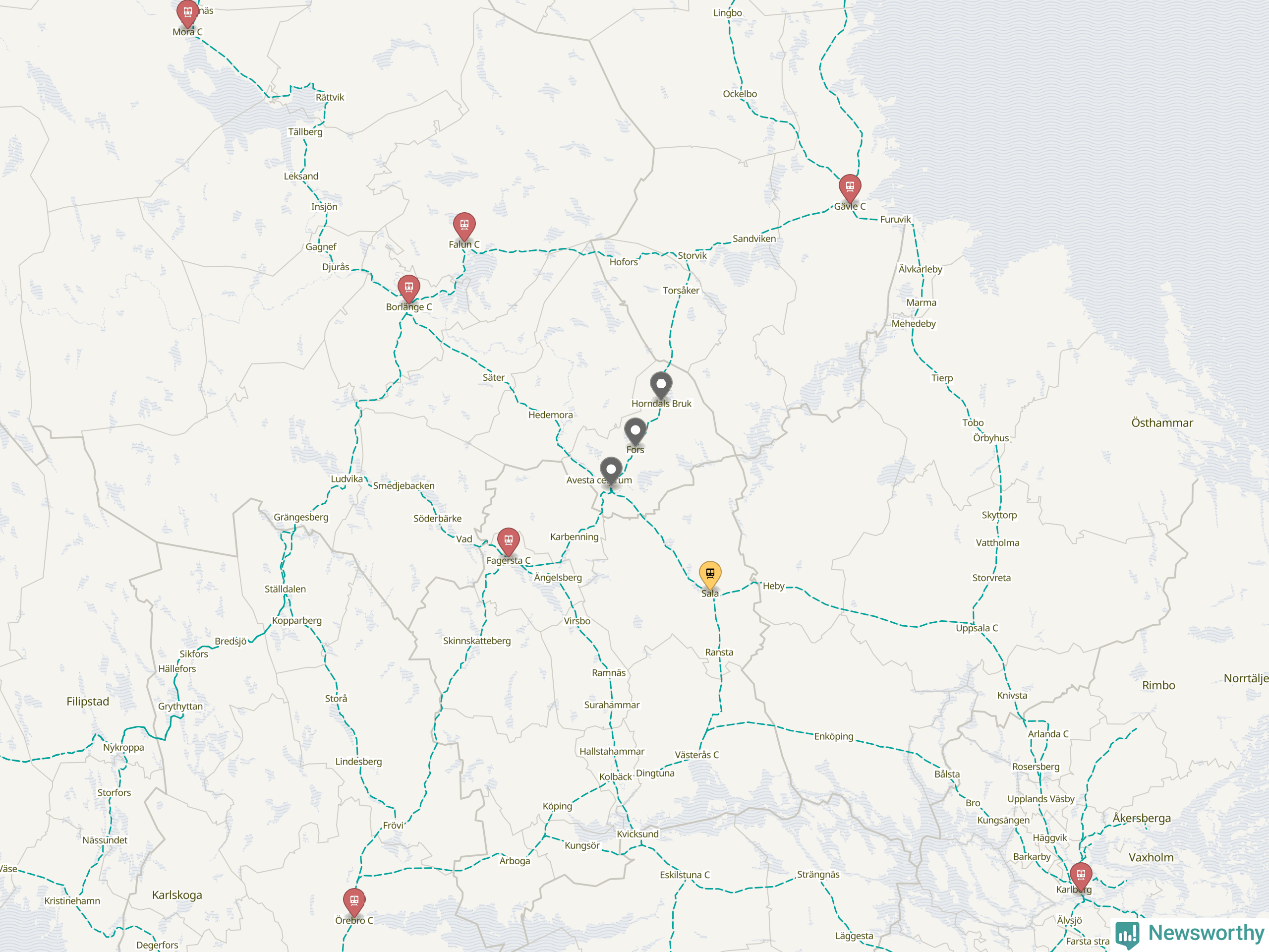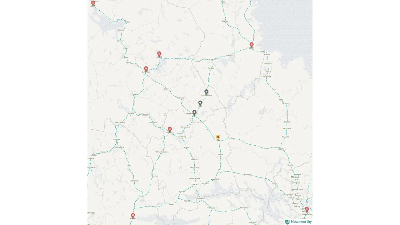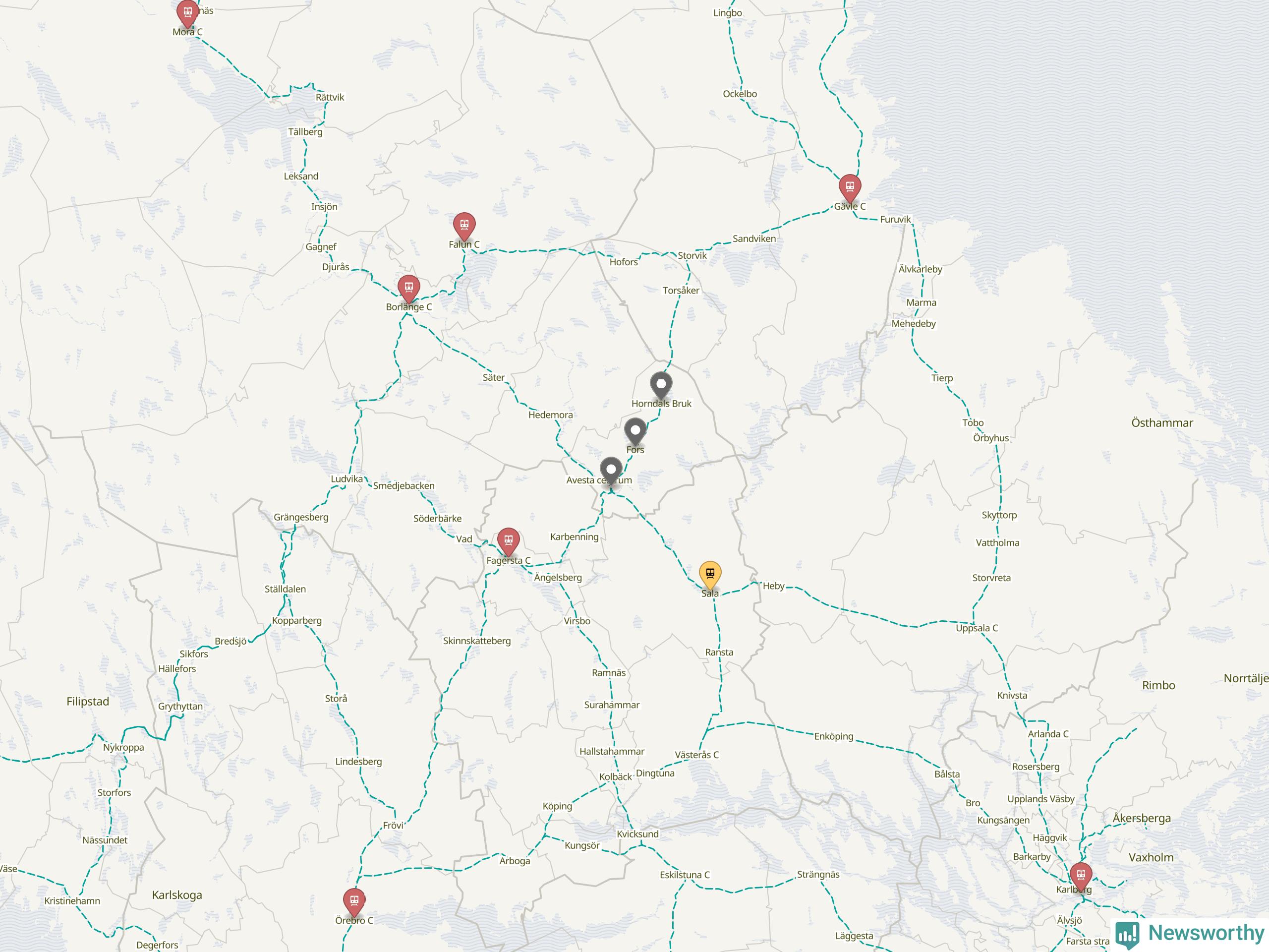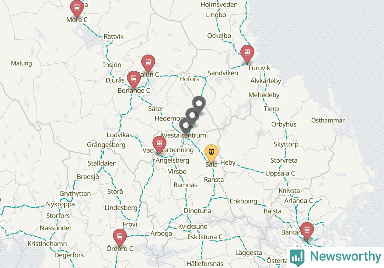 Kartdata från Mapbox, Newsworthy, OpenStreetMap och Trafikverket. Uppgifter om sträckor med passagerartrafik från jarnvag.net.