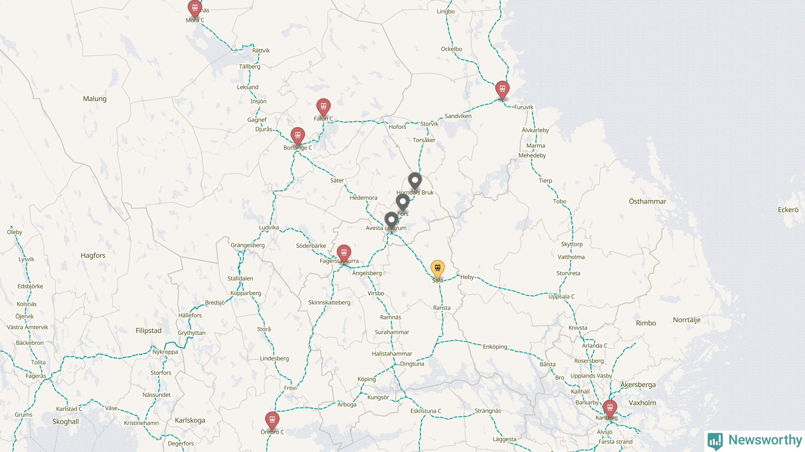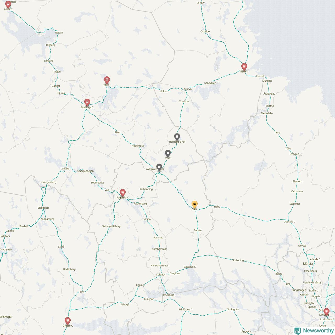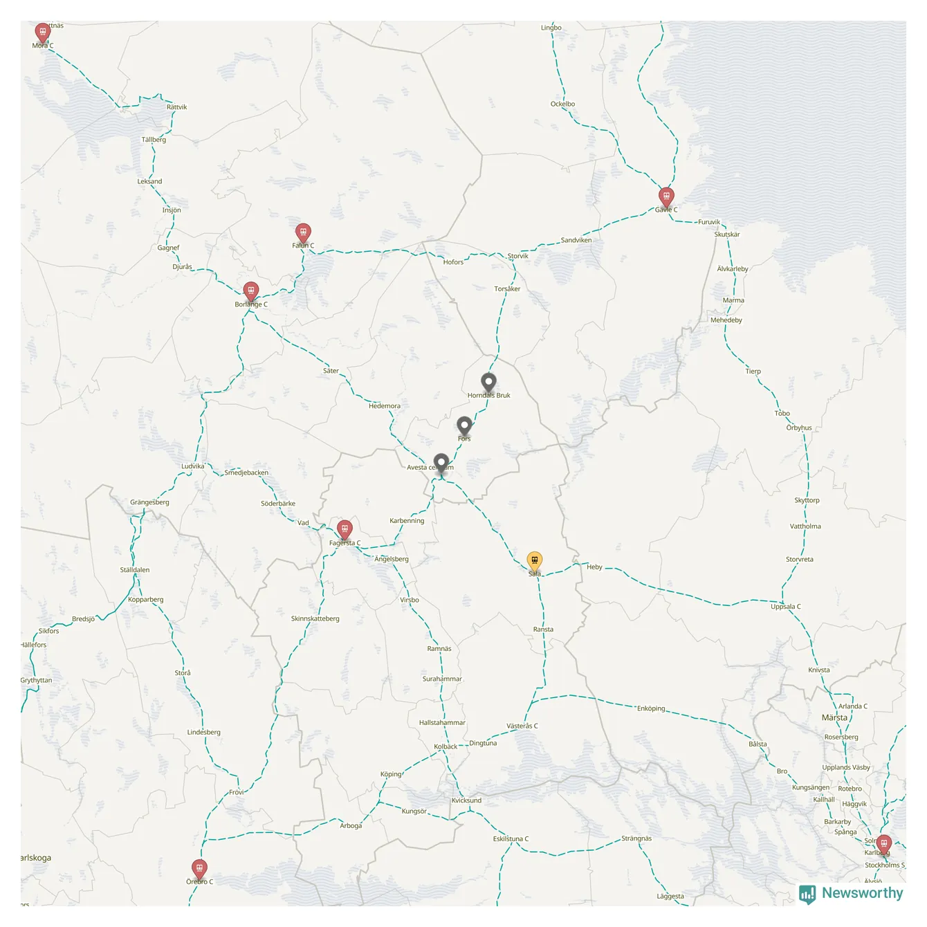 Kartdata från Mapbox, Newsworthy, OpenStreetMap och Trafikverket. Uppgifter om sträckor med passagerartrafik från jarnvag.net.