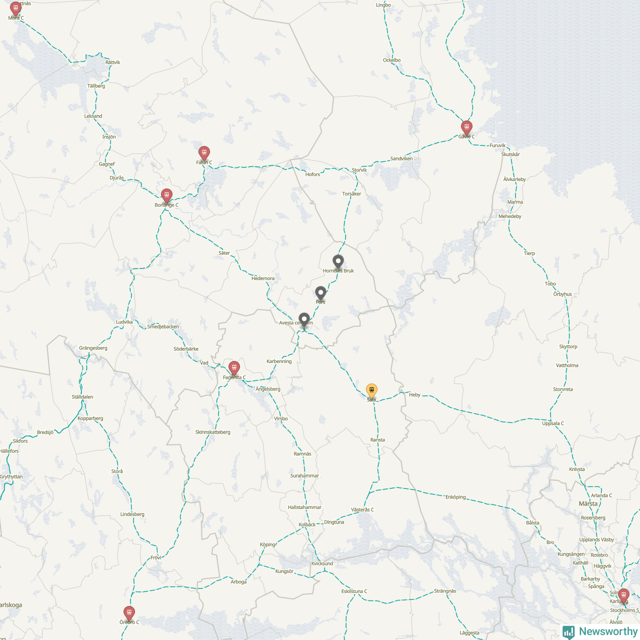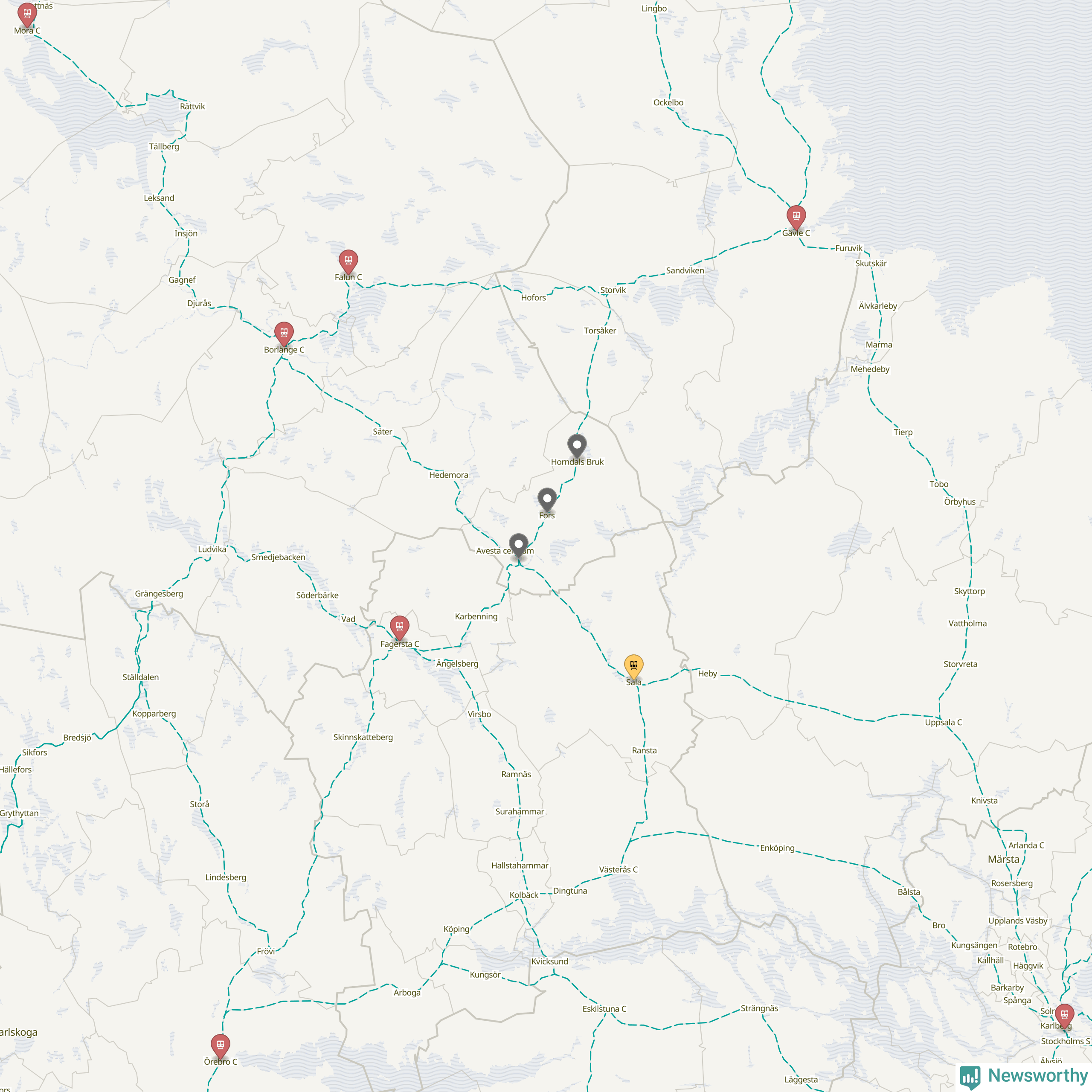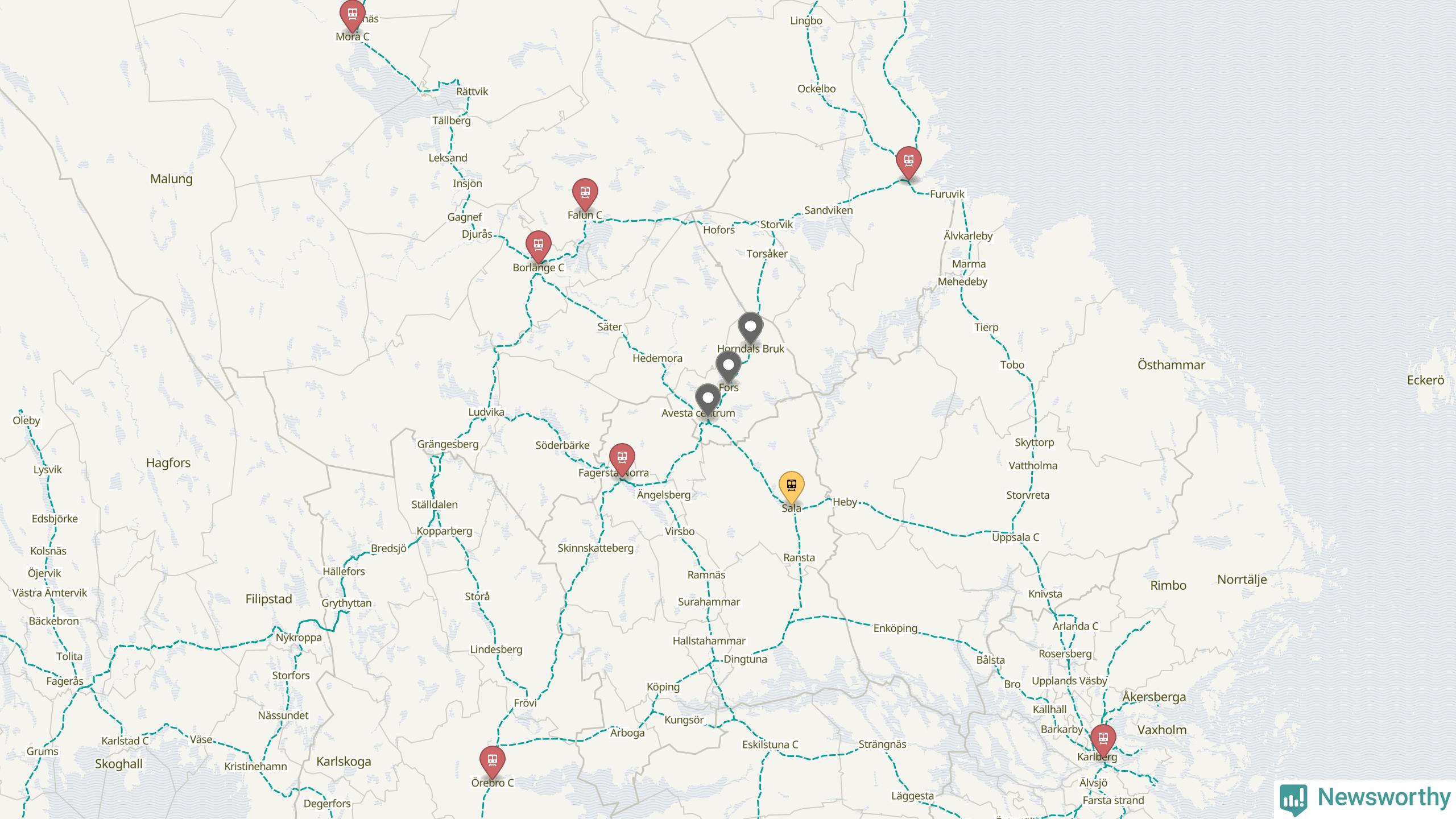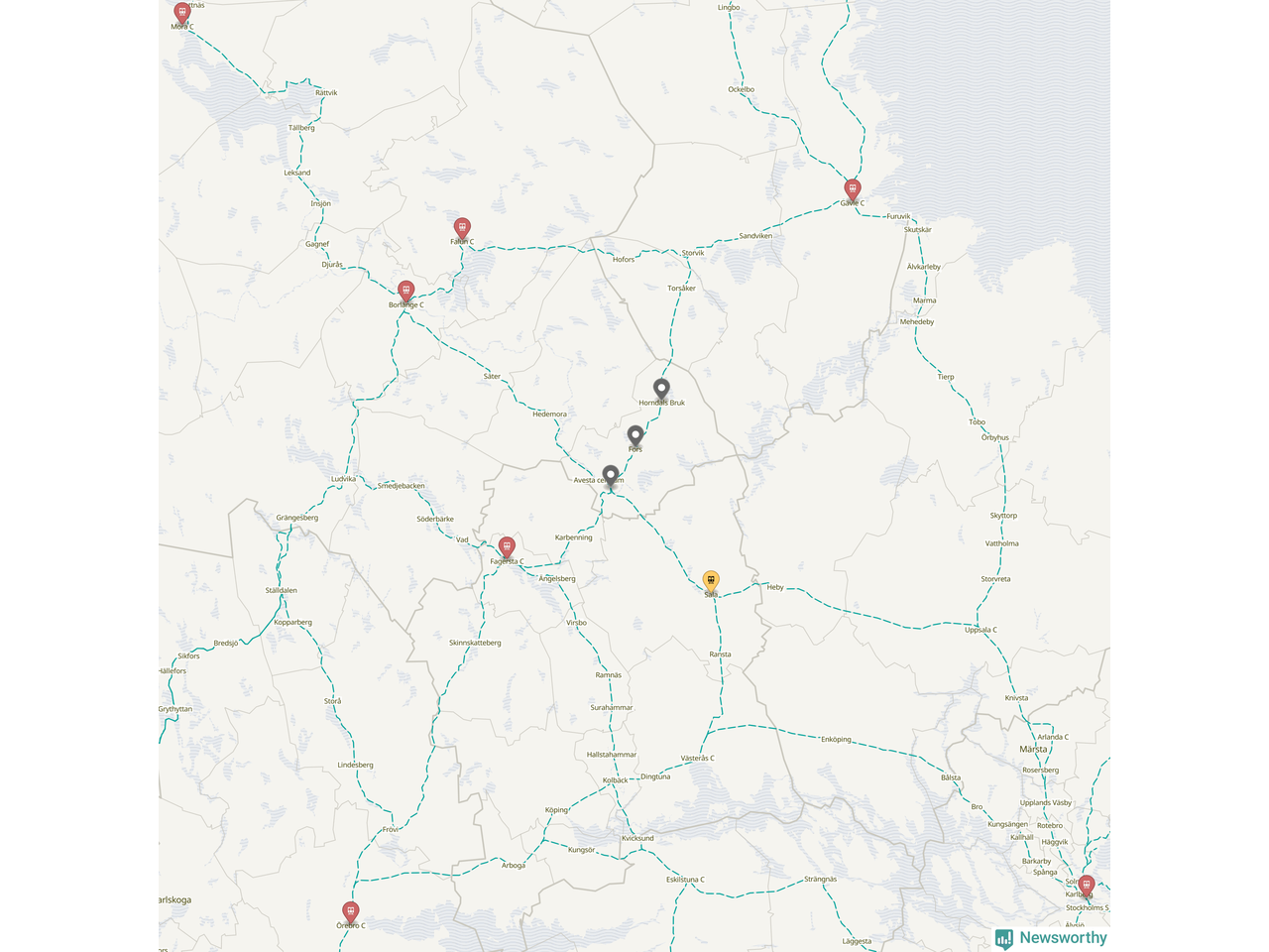 Kartdata från Mapbox, Newsworthy, OpenStreetMap och Trafikverket. Uppgifter om sträckor med passagerartrafik från jarnvag.net.