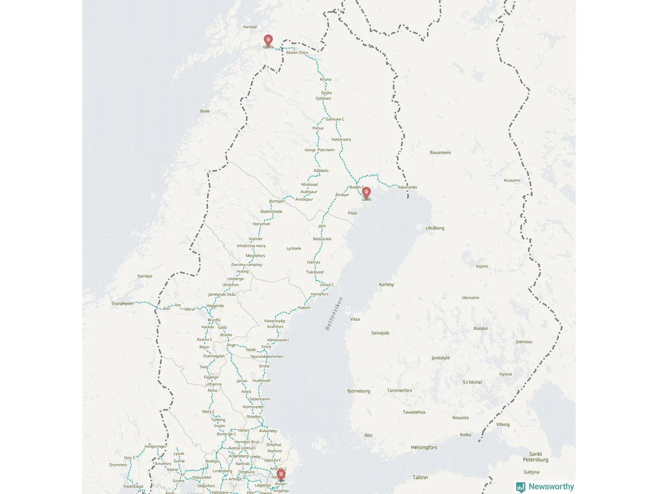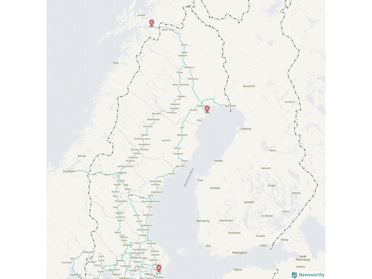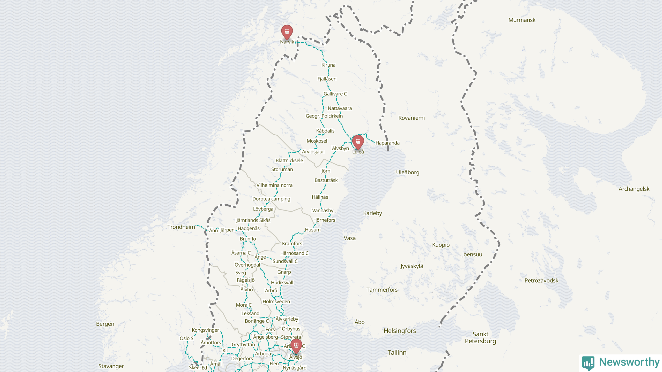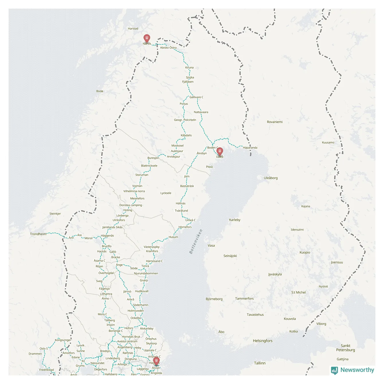 Kartdata från Mapbox, Newsworthy, OpenStreetMap och Trafikverket. Uppgifter om sträckor med passagerartrafik från jarnvag.net.