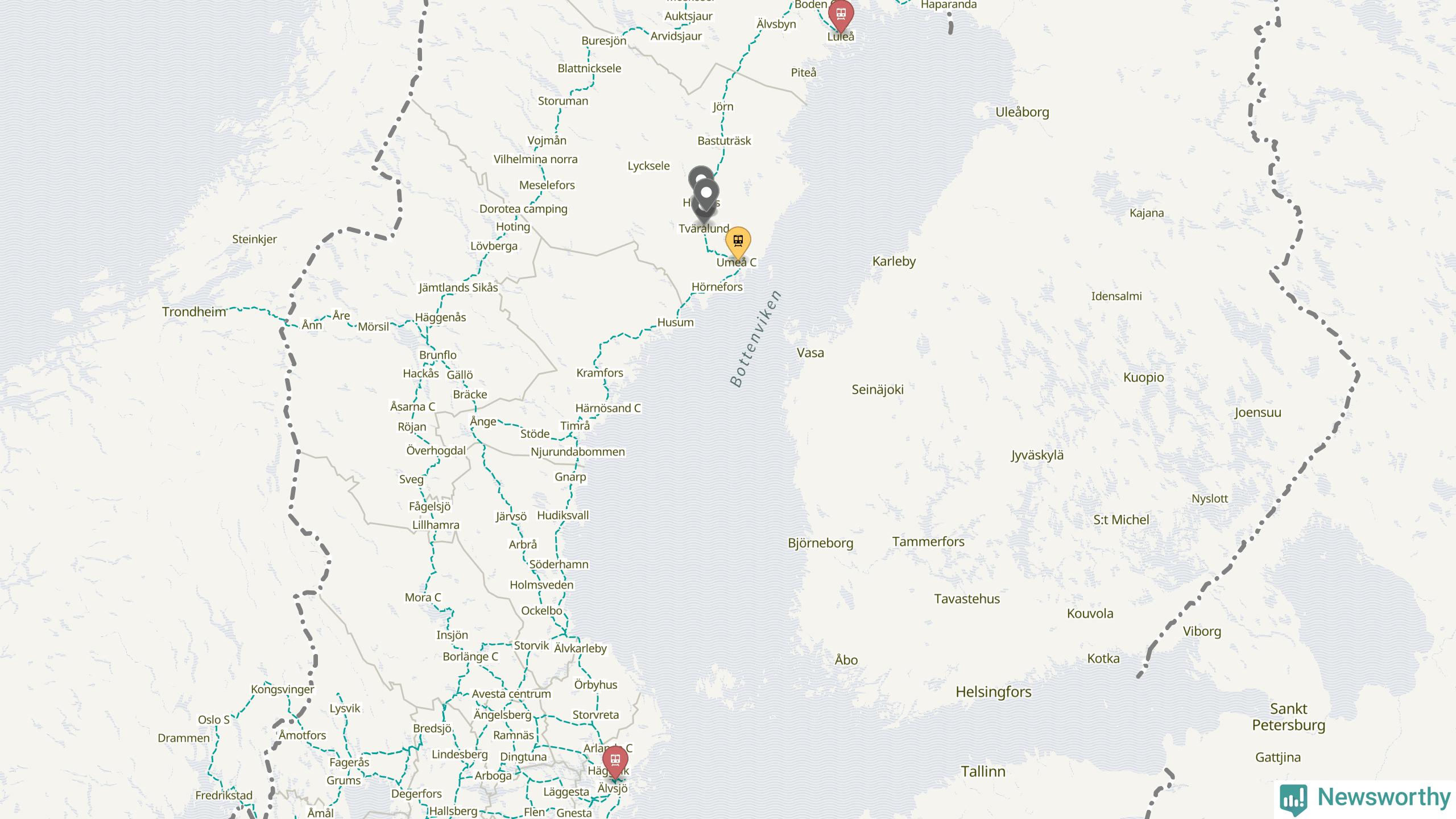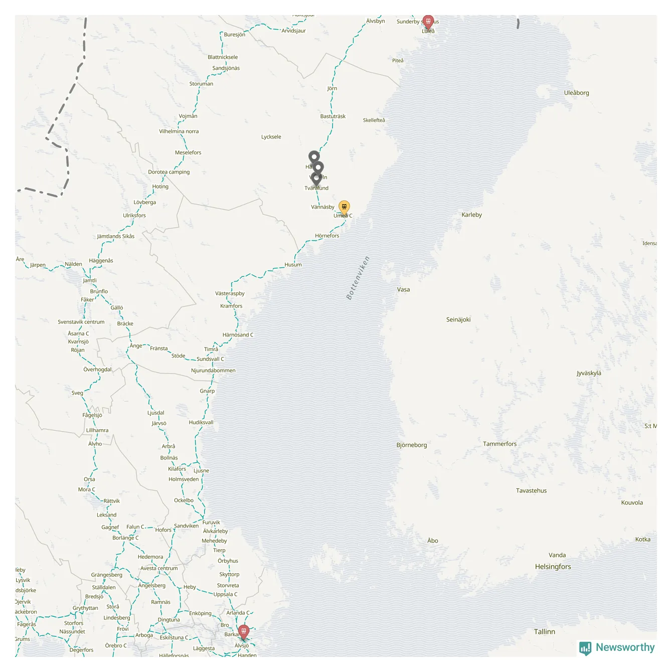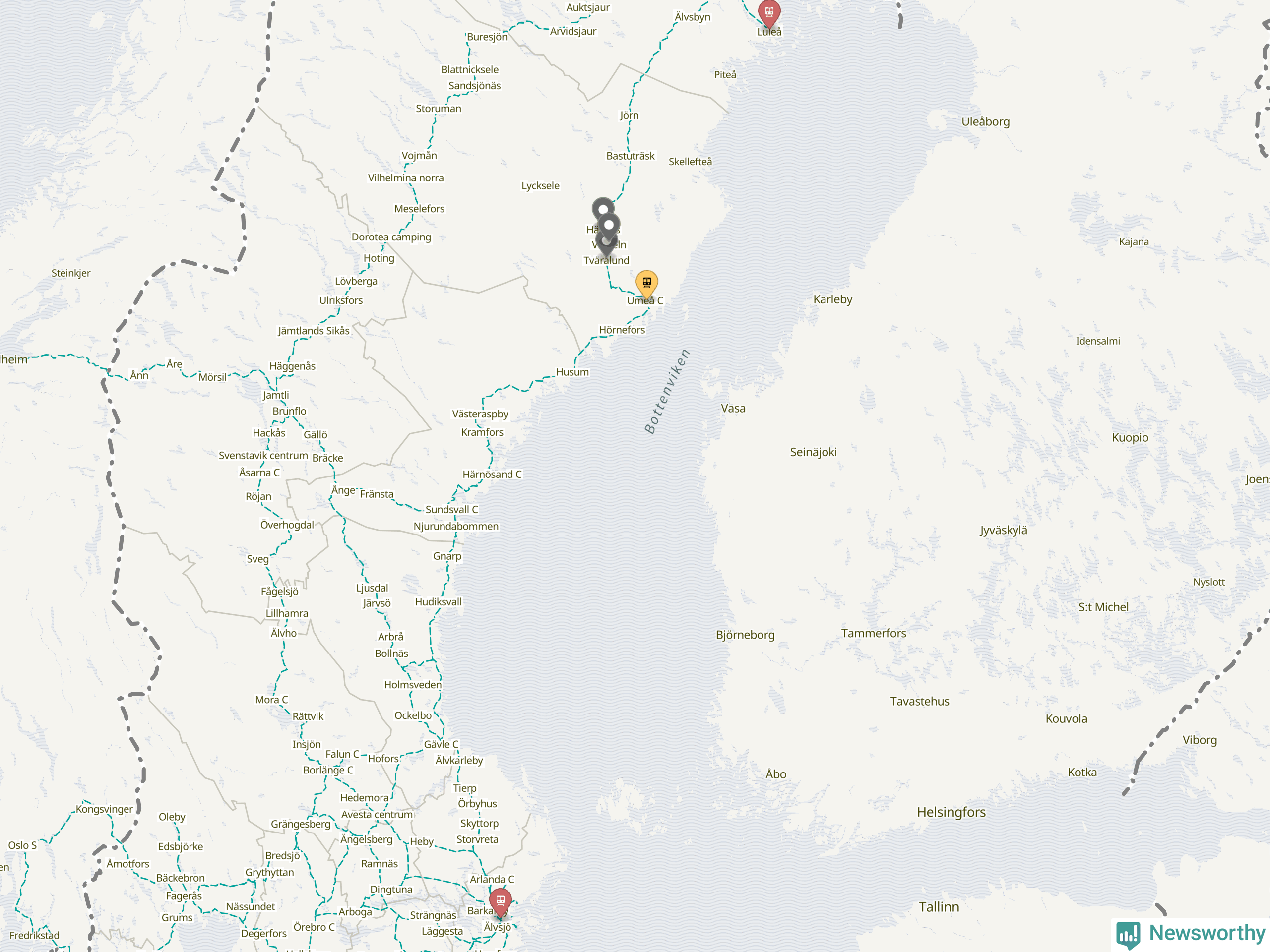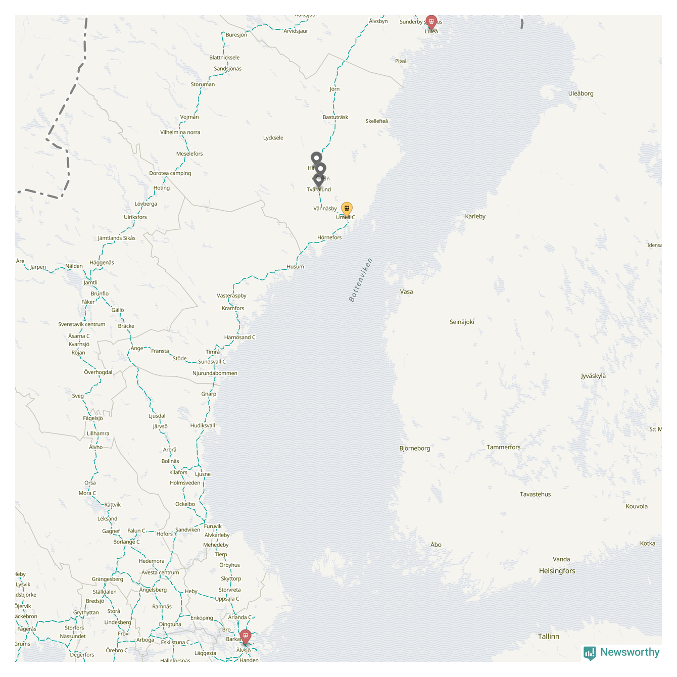 Kartdata från Mapbox, Newsworthy, OpenStreetMap och Trafikverket. Uppgifter om sträckor med passagerartrafik från jarnvag.net.