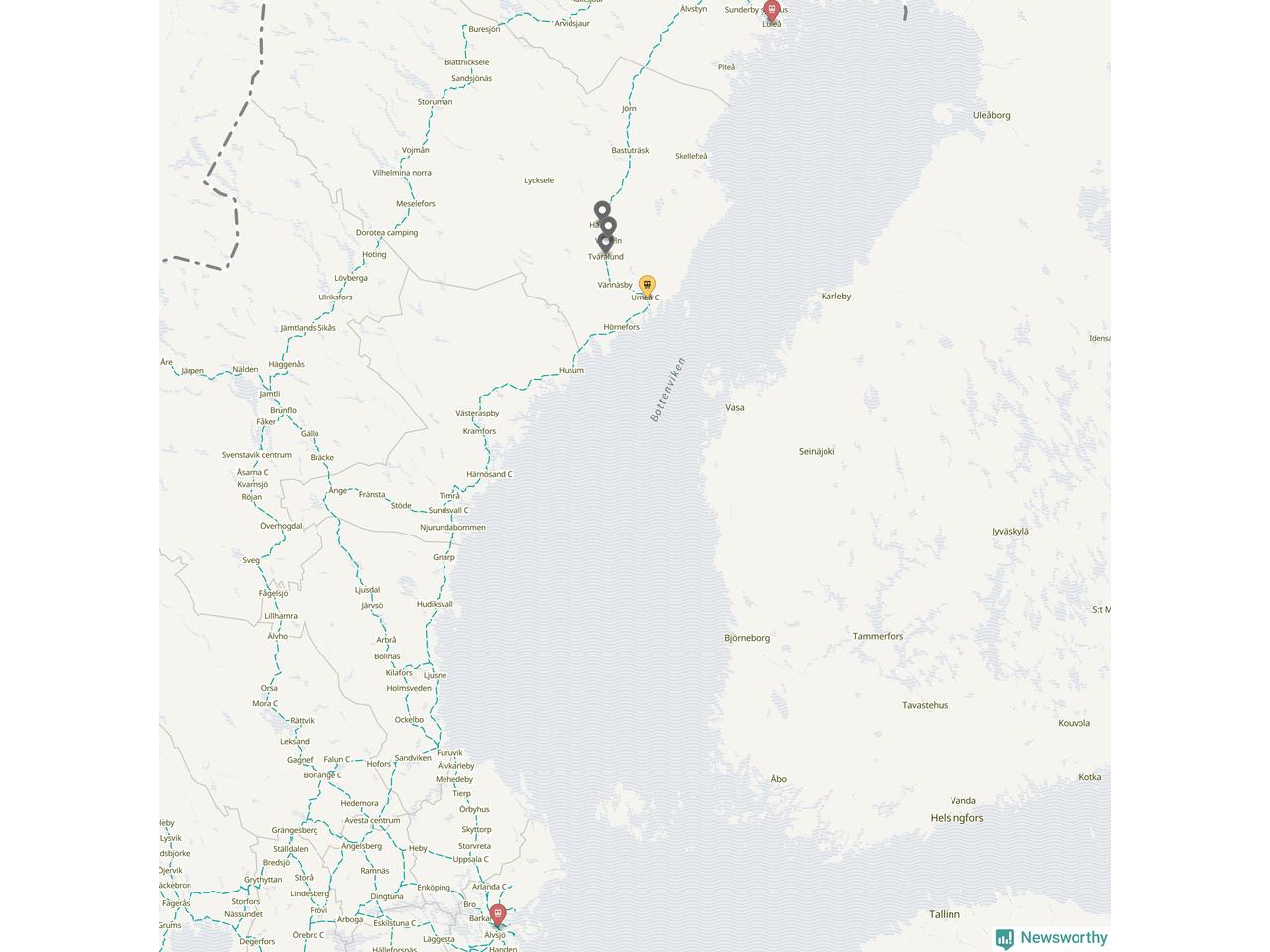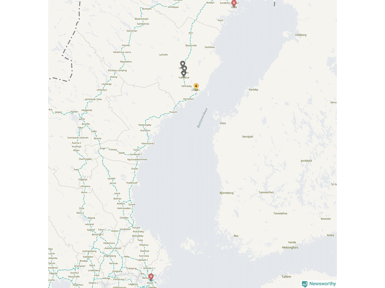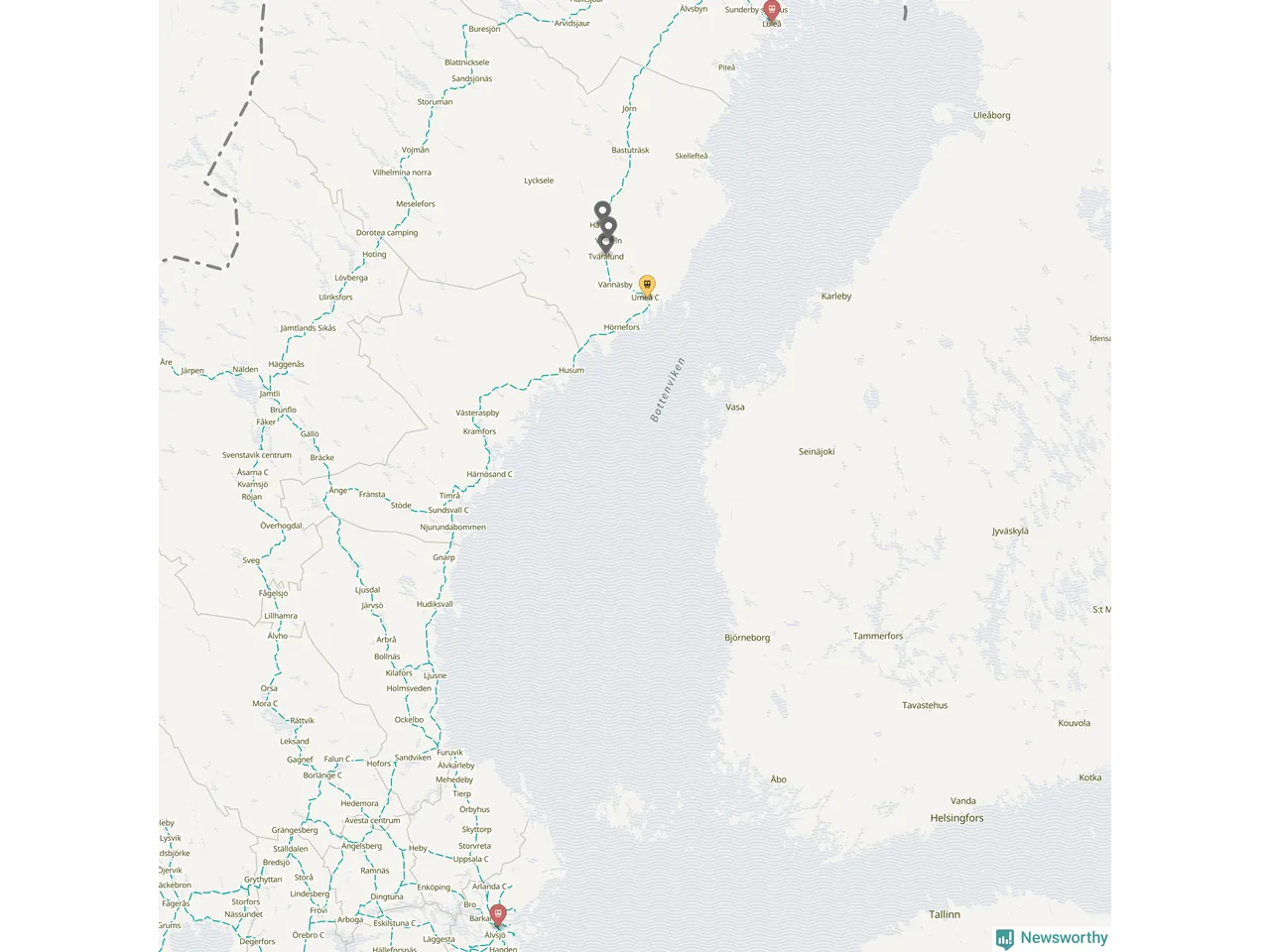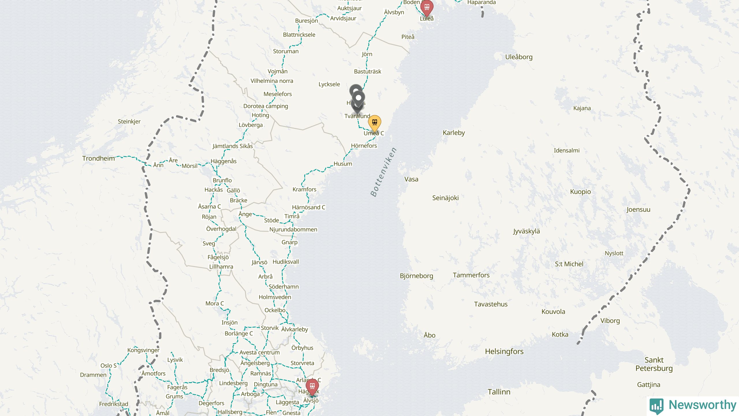 Kartdata från Mapbox, Newsworthy, OpenStreetMap och Trafikverket. Uppgifter om sträckor med passagerartrafik från jarnvag.net.