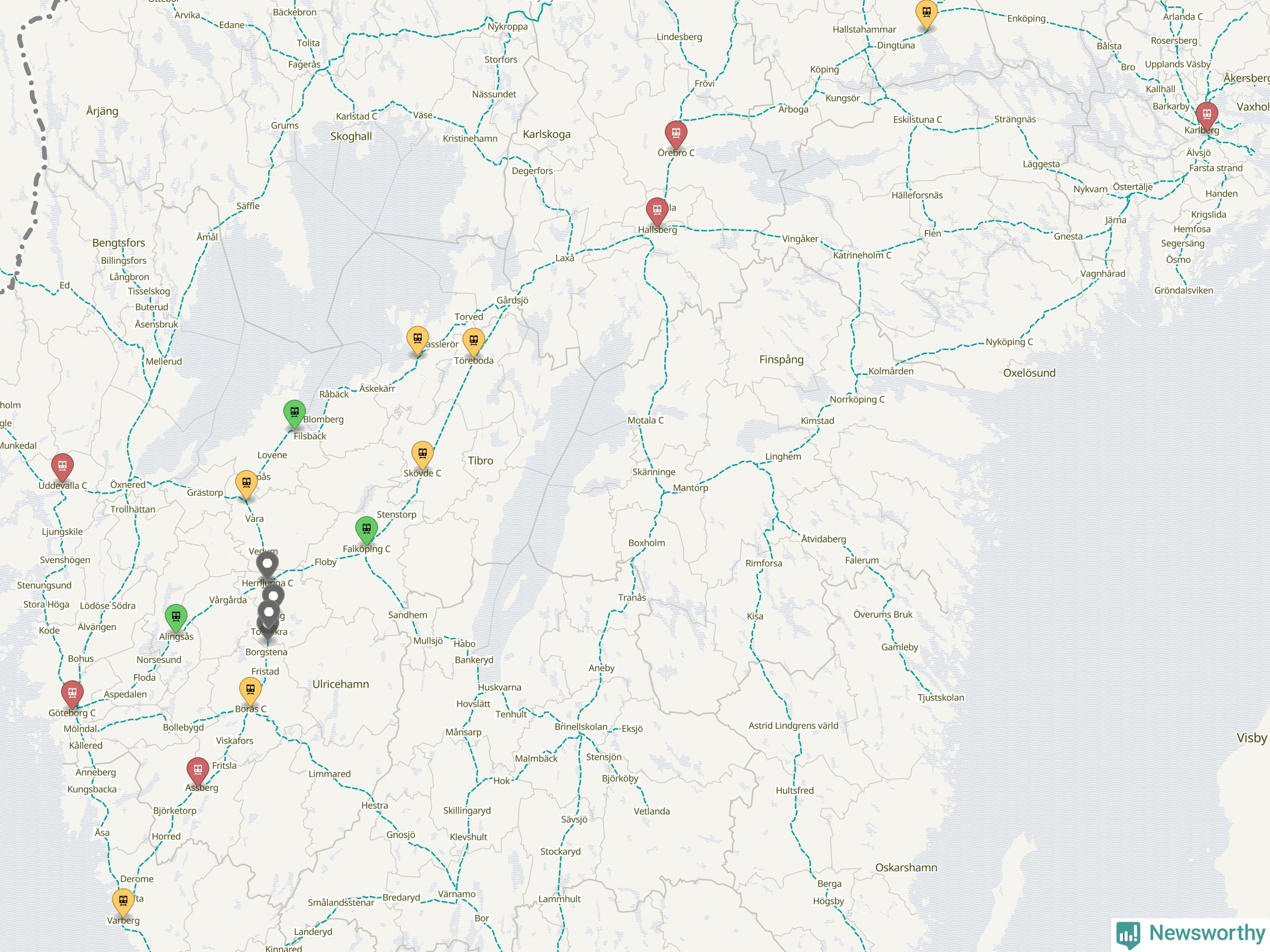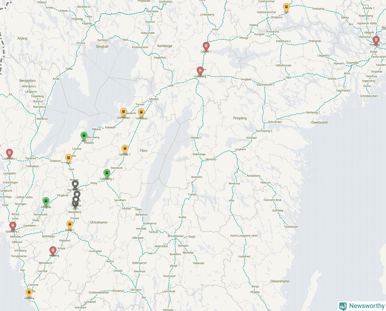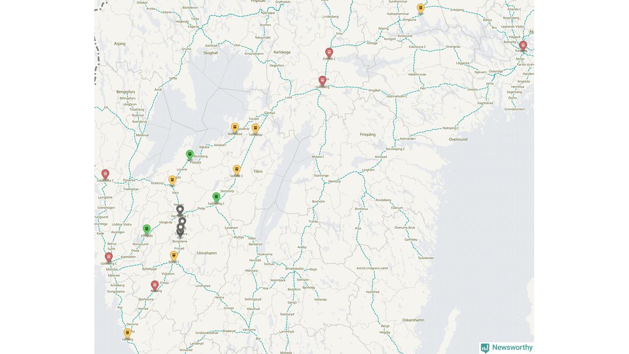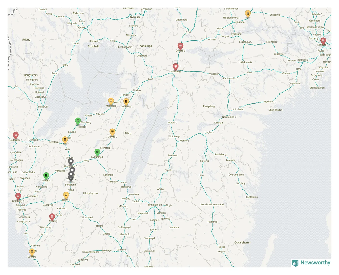 Kartdata från Mapbox, Newsworthy, OpenStreetMap och Trafikverket. Uppgifter om sträckor med passagerartrafik från jarnvag.net.