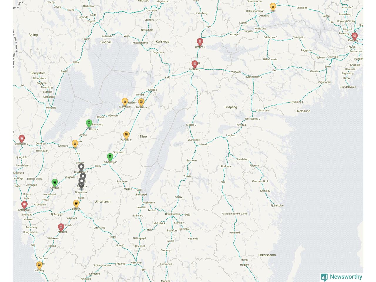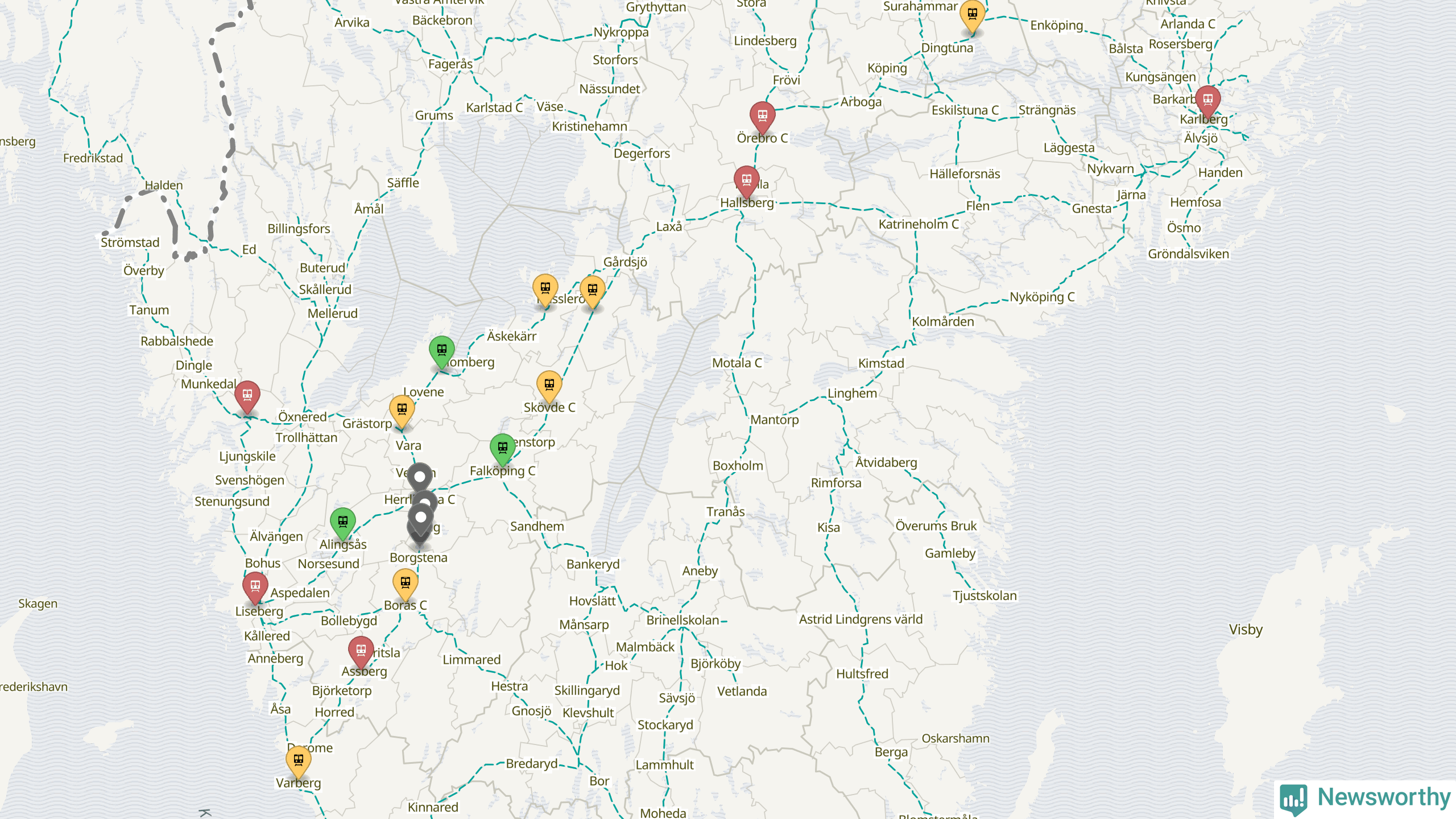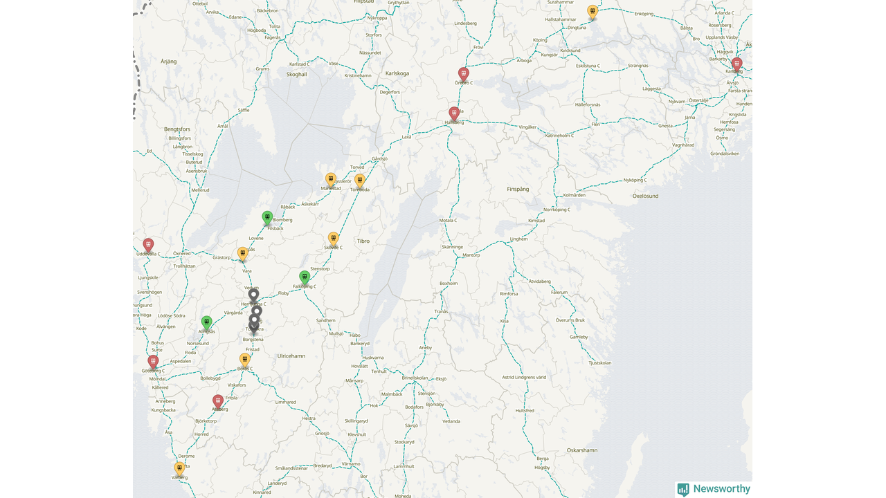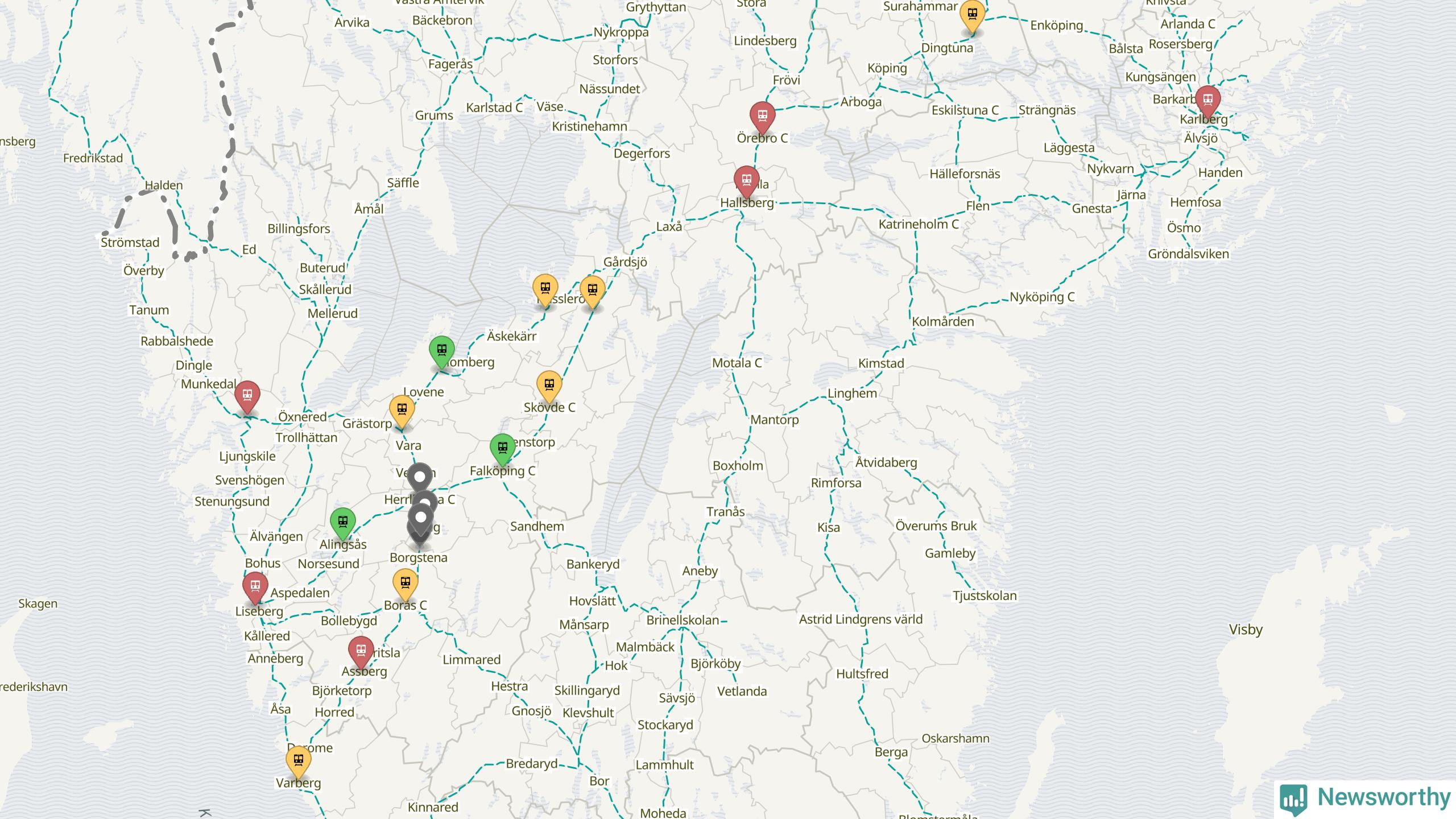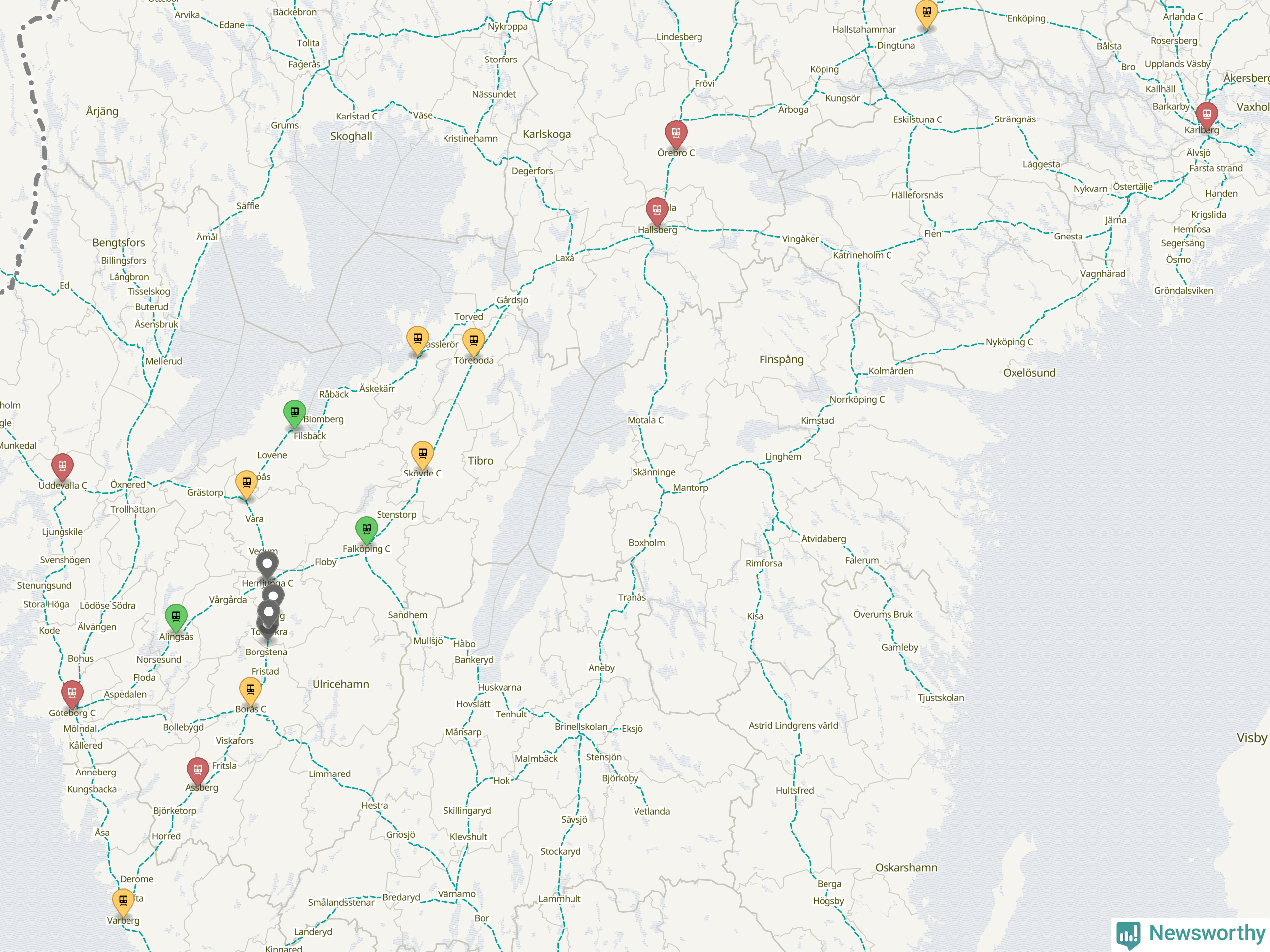 Kartdata från Mapbox, Newsworthy, OpenStreetMap och Trafikverket. Uppgifter om sträckor med passagerartrafik från jarnvag.net.