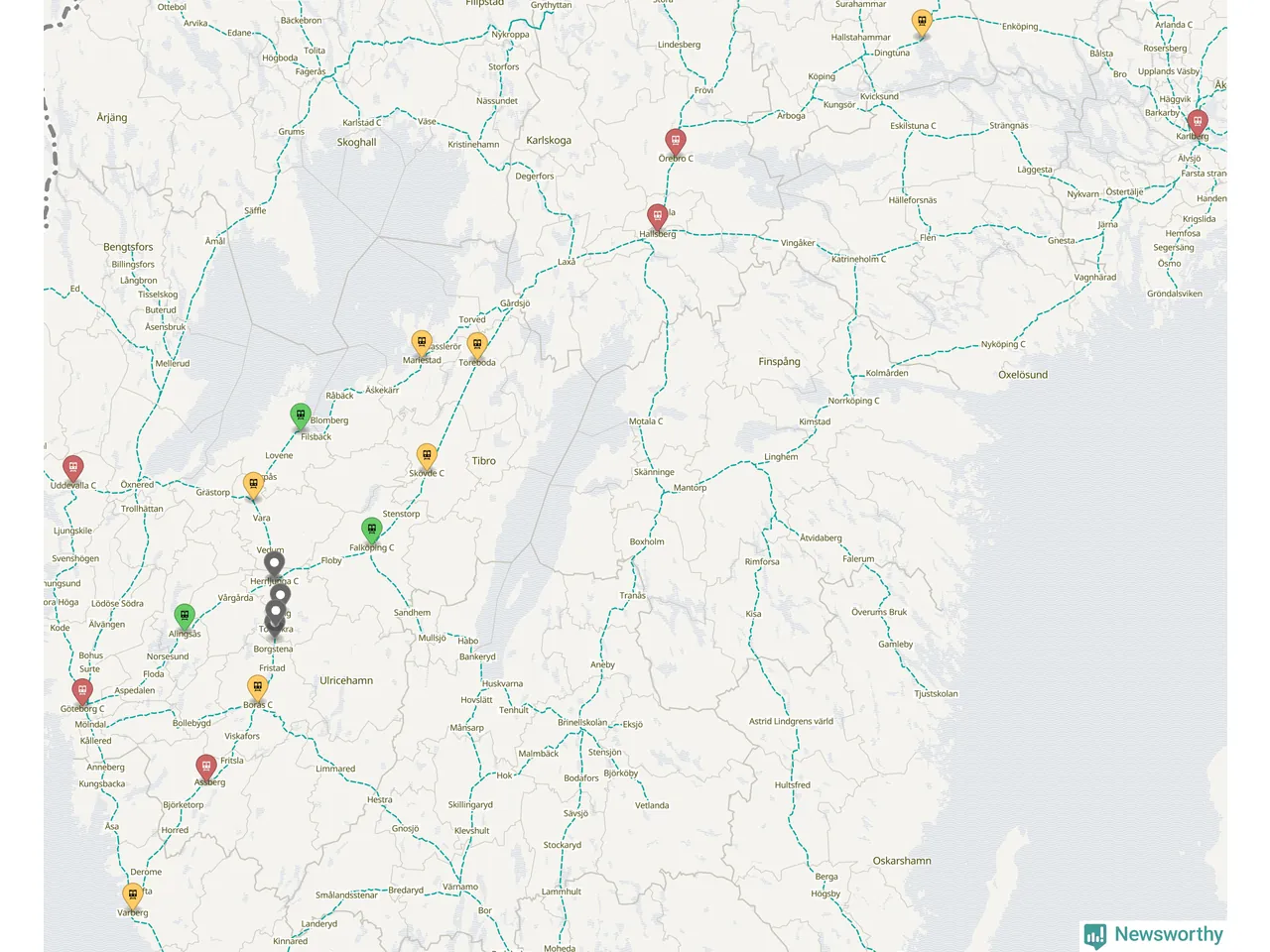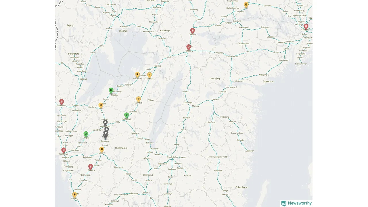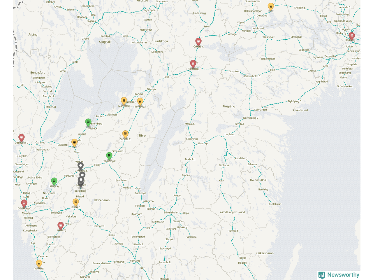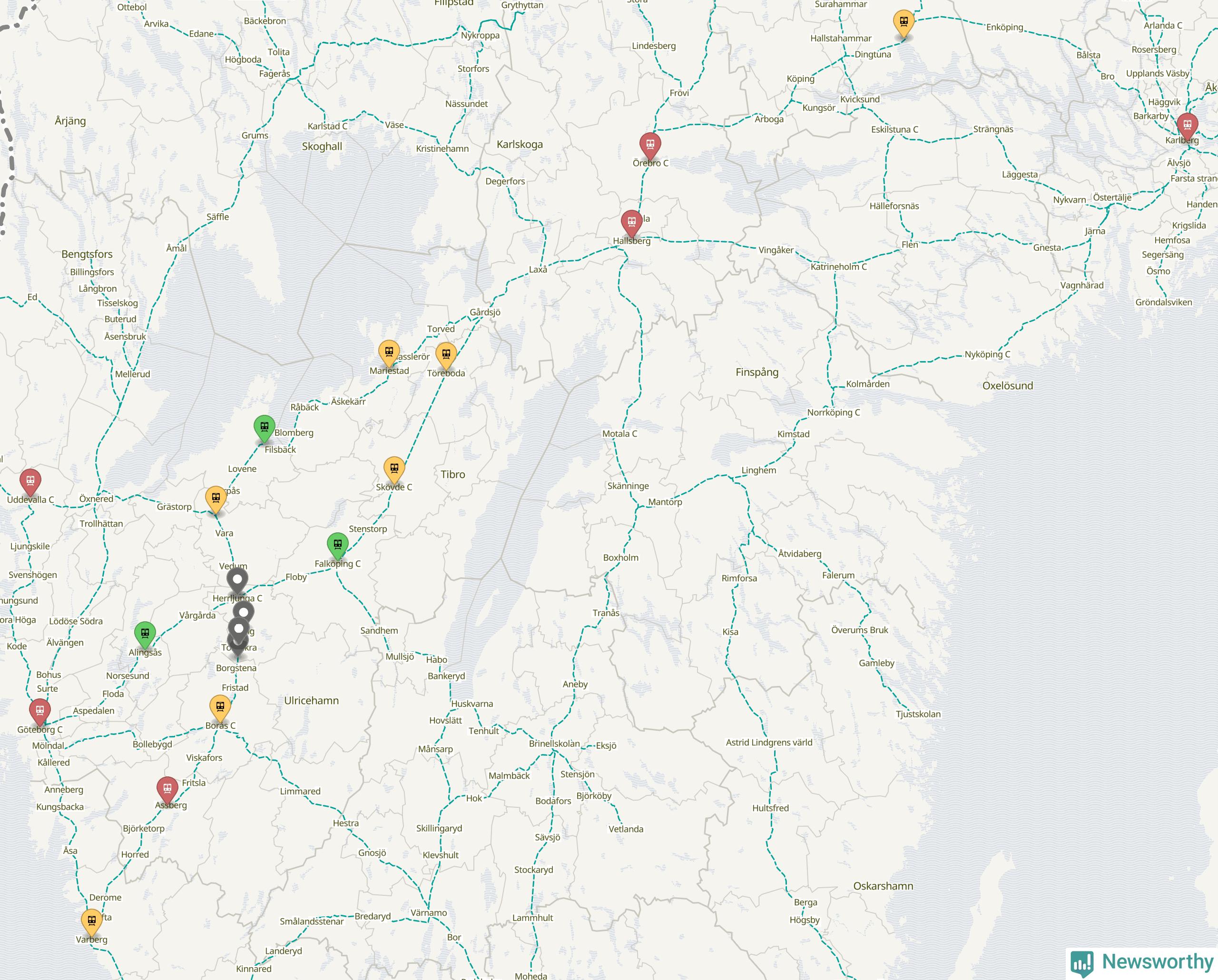 Kartdata från Mapbox, Newsworthy, OpenStreetMap och Trafikverket. Uppgifter om sträckor med passagerartrafik från jarnvag.net.