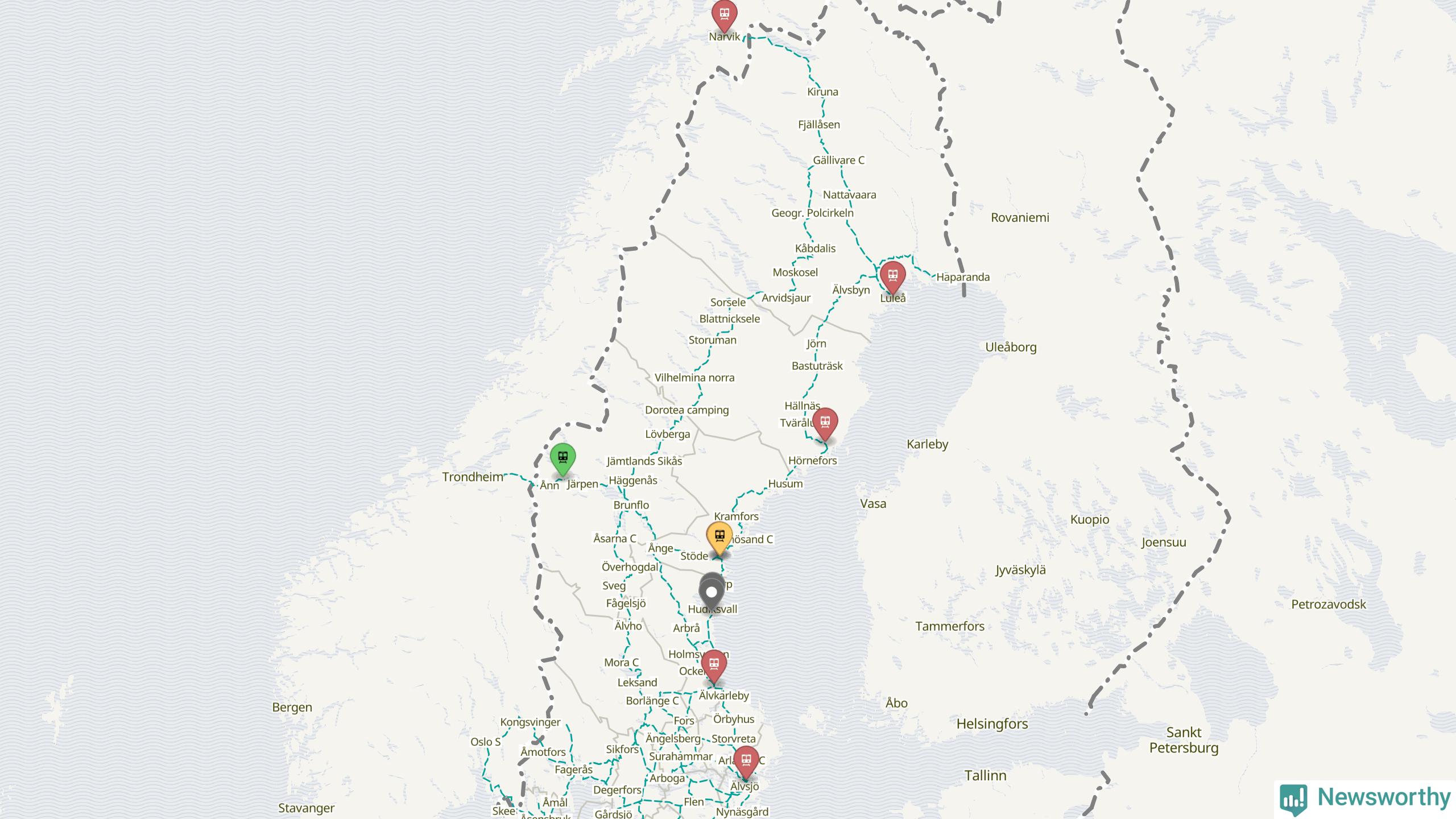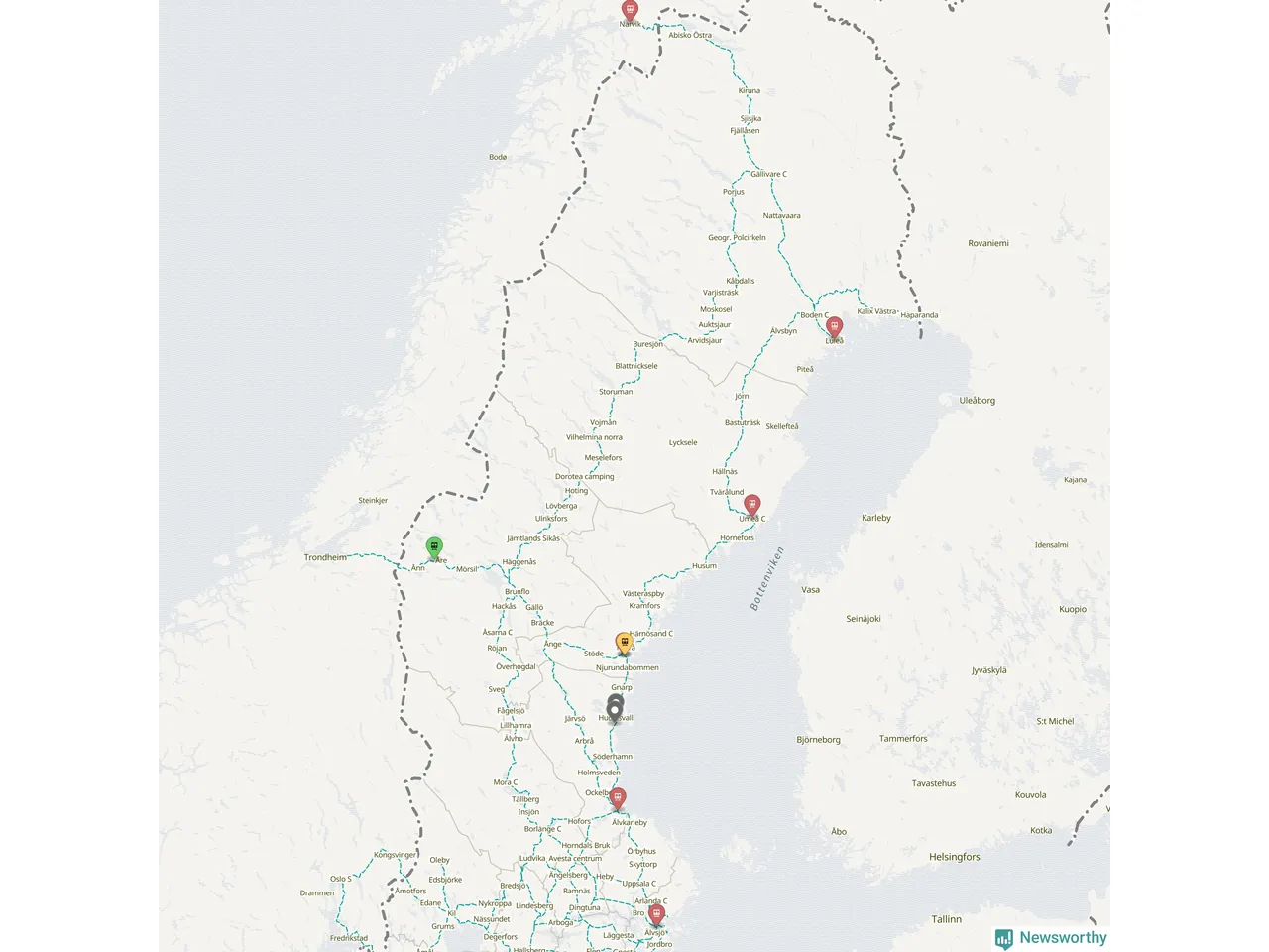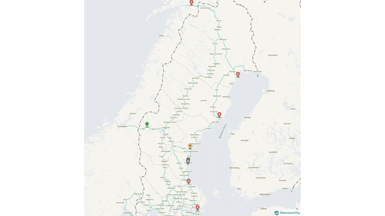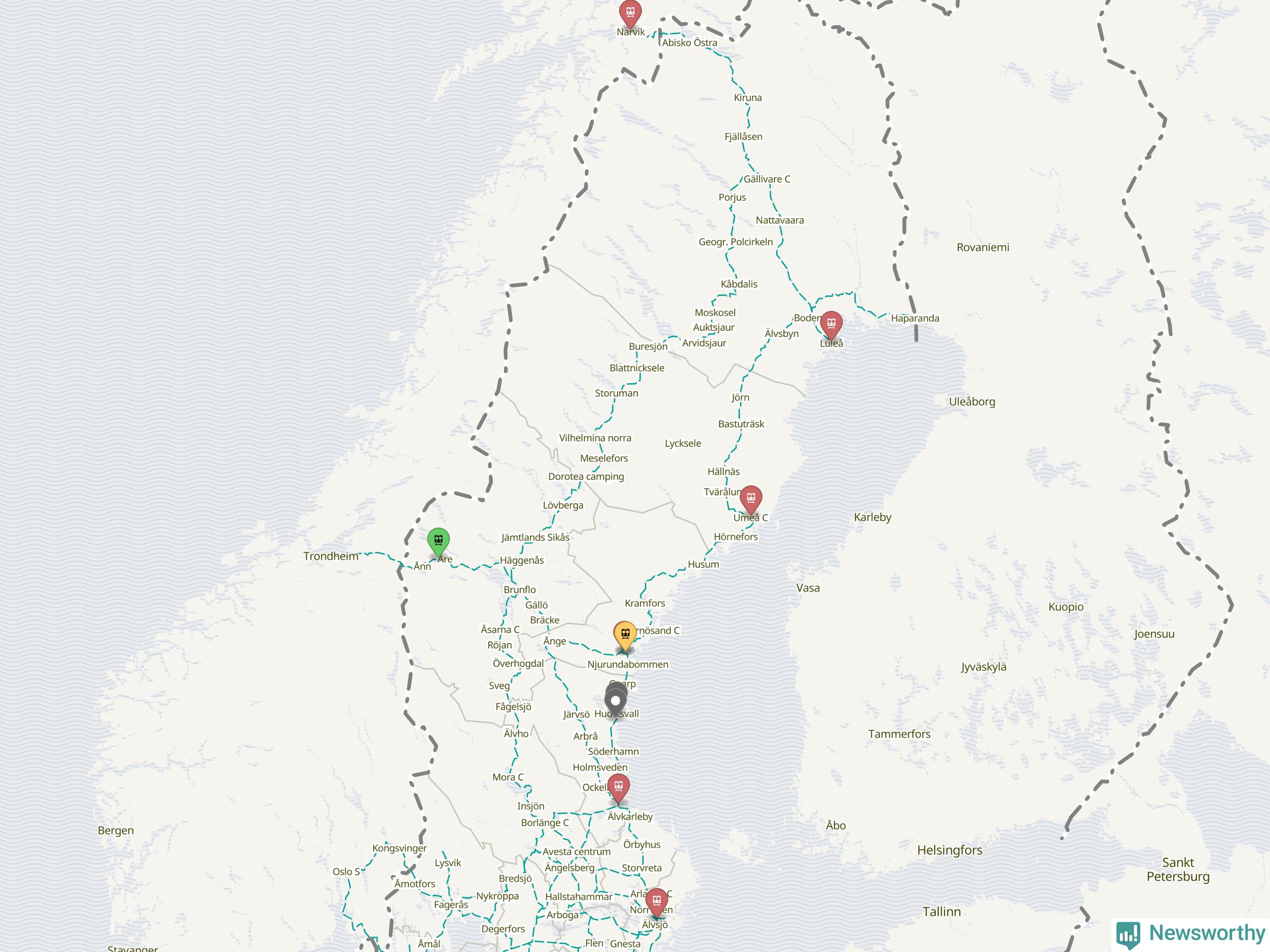Kartdata från Mapbox, Newsworthy, OpenStreetMap och Trafikverket. Uppgifter om sträckor med passagerartrafik från jarnvag.net.