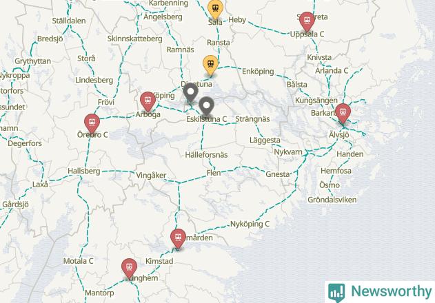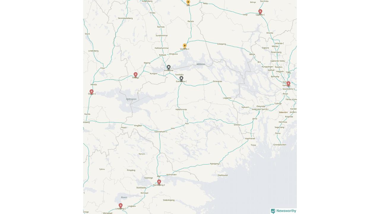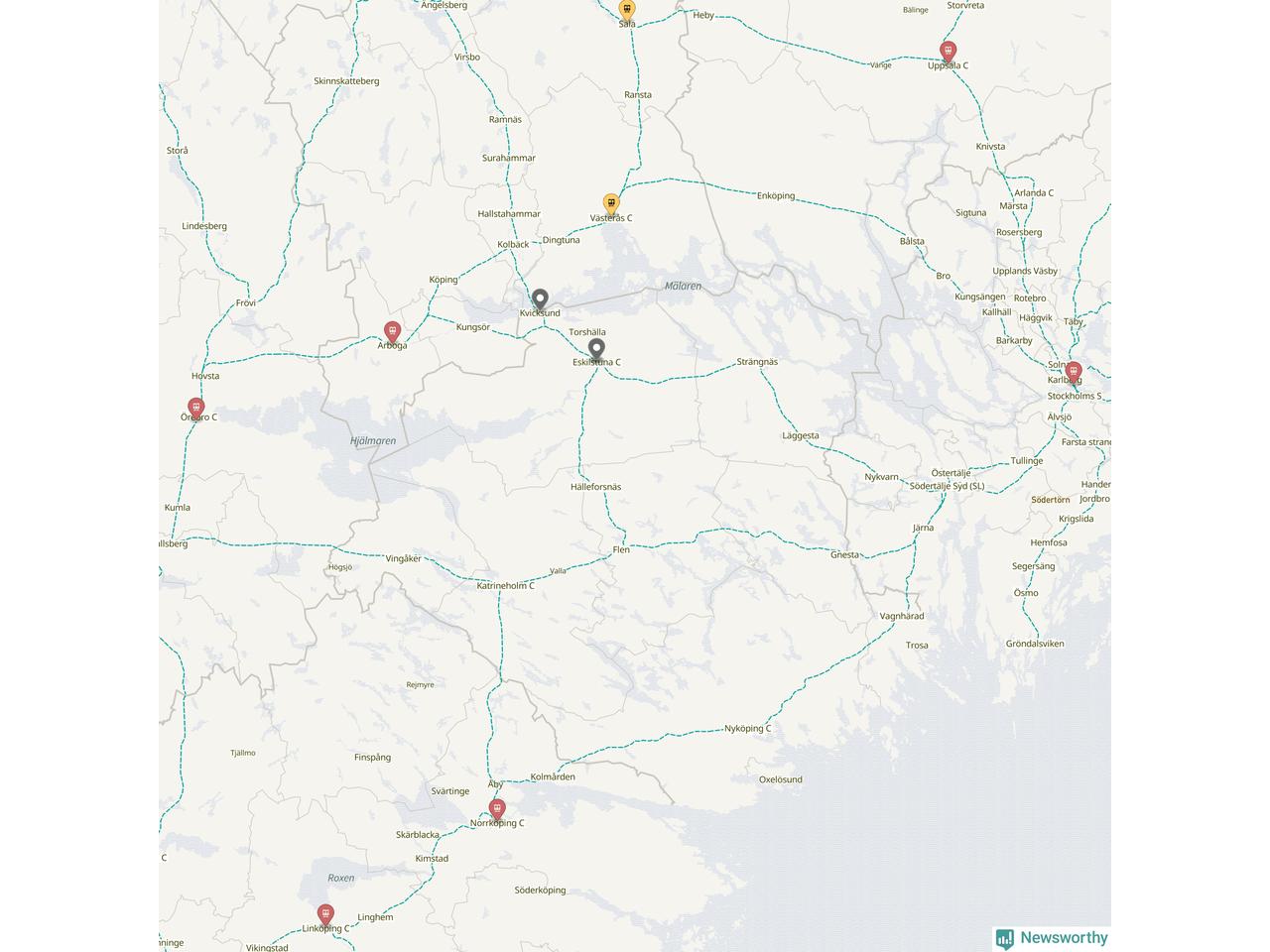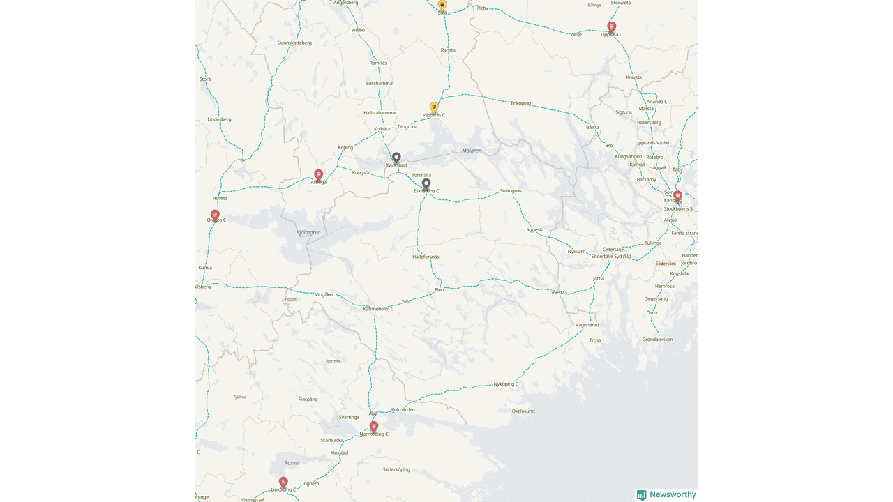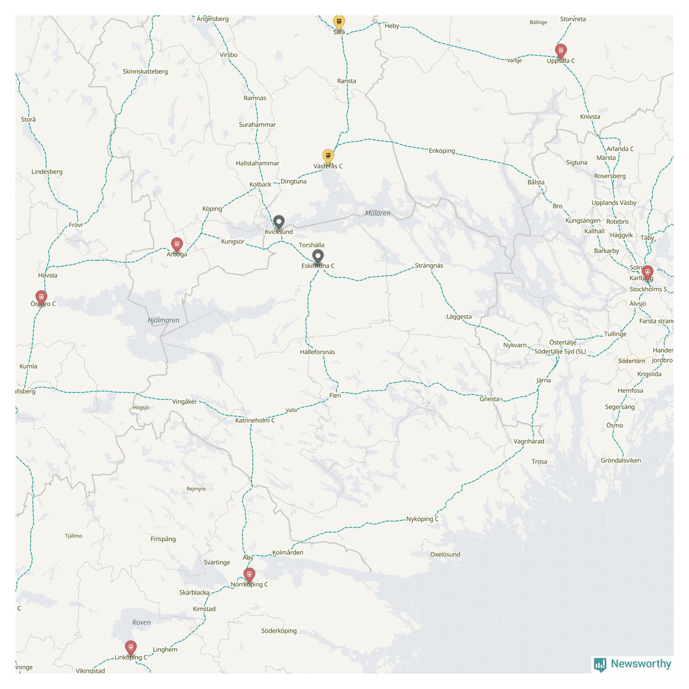 Kartdata från Mapbox, Newsworthy, OpenStreetMap och Trafikverket. Uppgifter om sträckor med passagerartrafik från jarnvag.net.