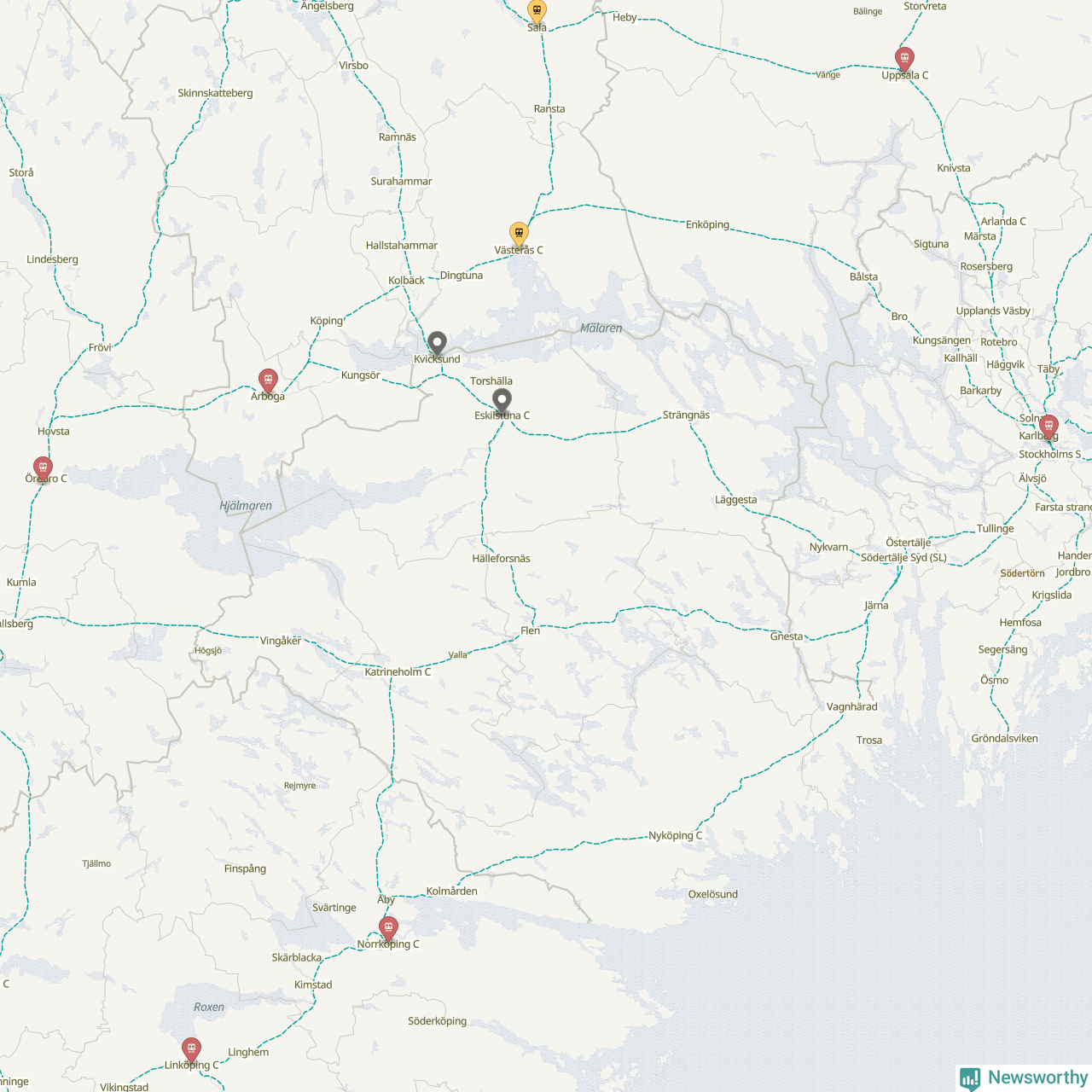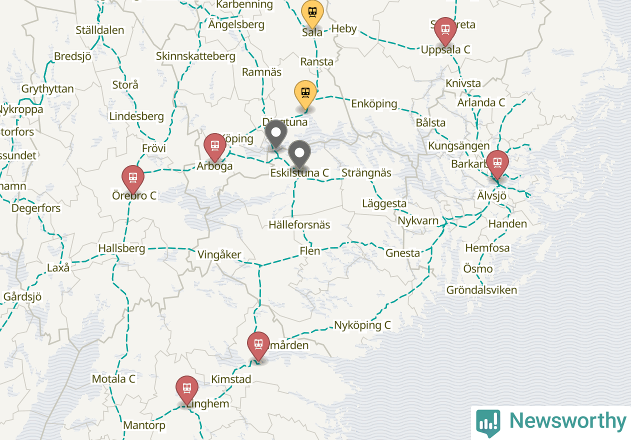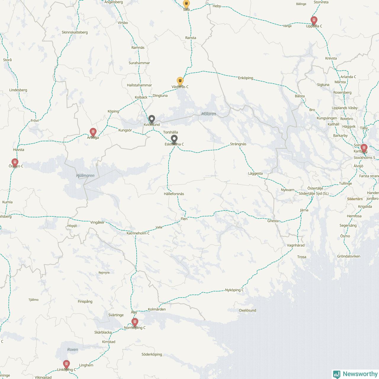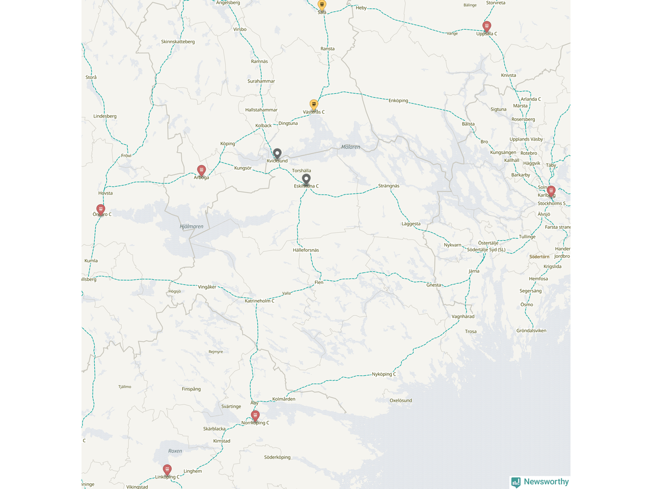 Kartdata från Mapbox, Newsworthy, OpenStreetMap och Trafikverket. Uppgifter om sträckor med passagerartrafik från jarnvag.net.