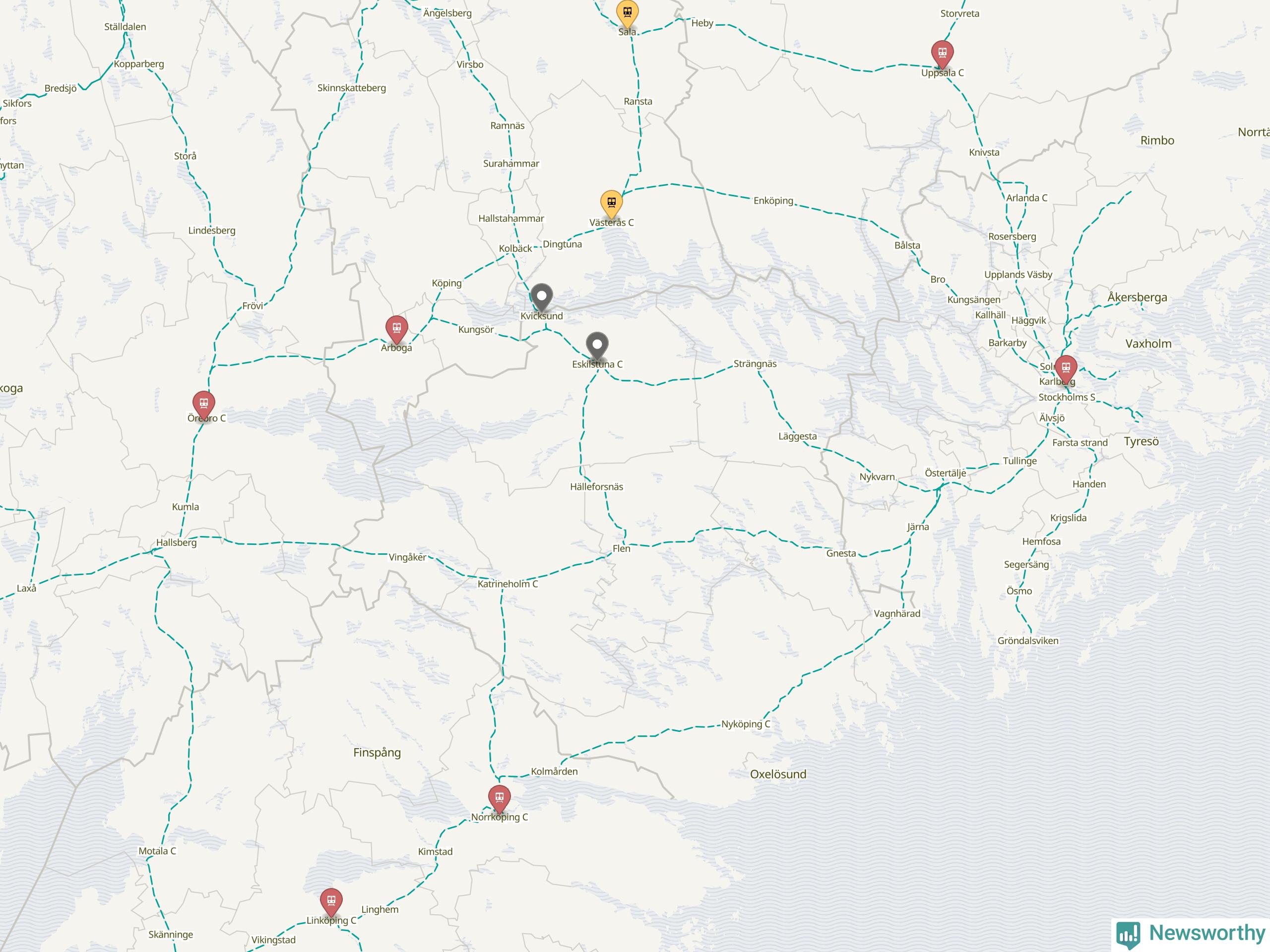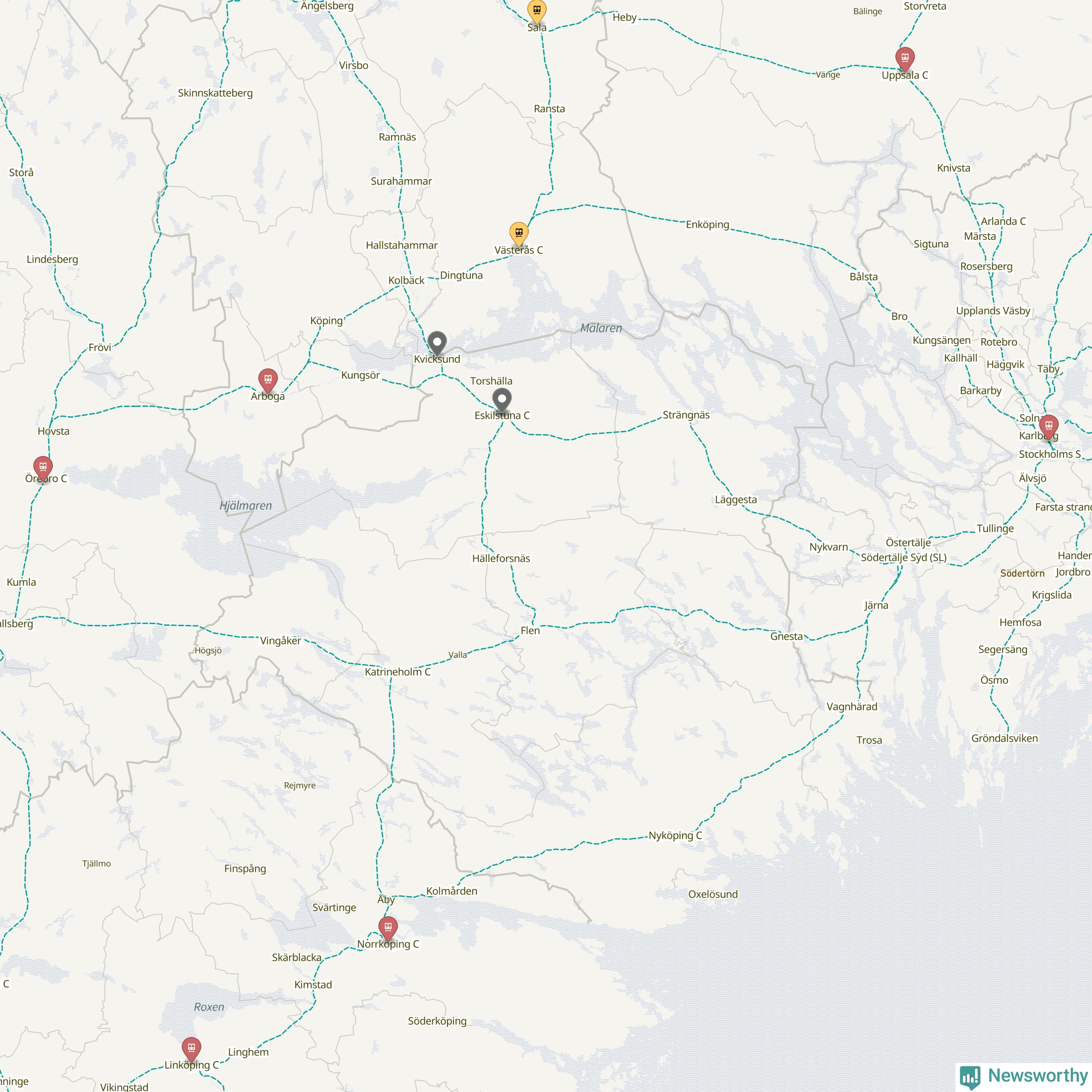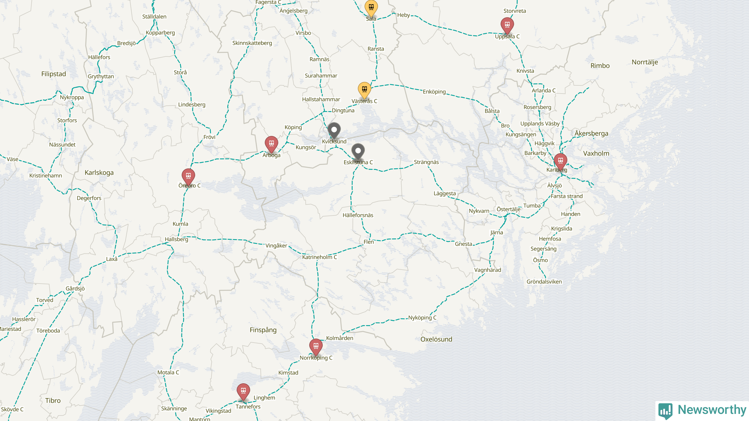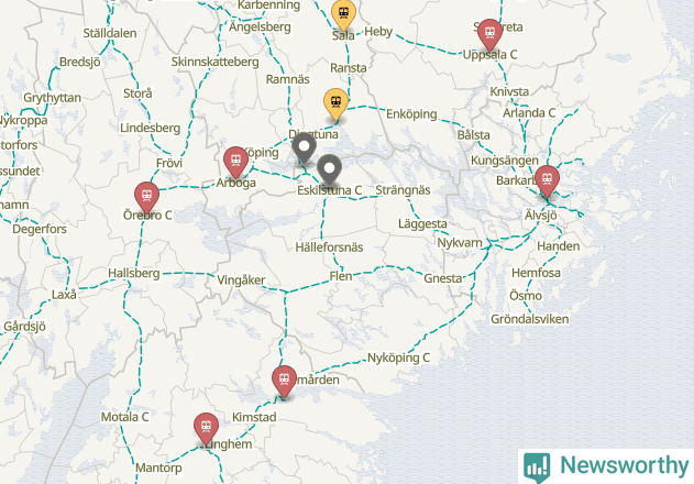 Kartdata från Mapbox, Newsworthy, OpenStreetMap och Trafikverket. Uppgifter om sträckor med passagerartrafik från jarnvag.net.
