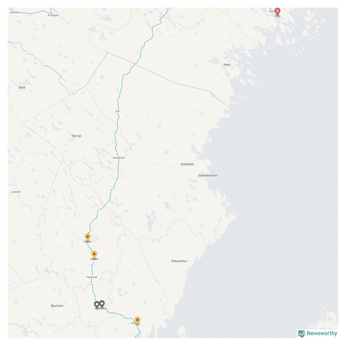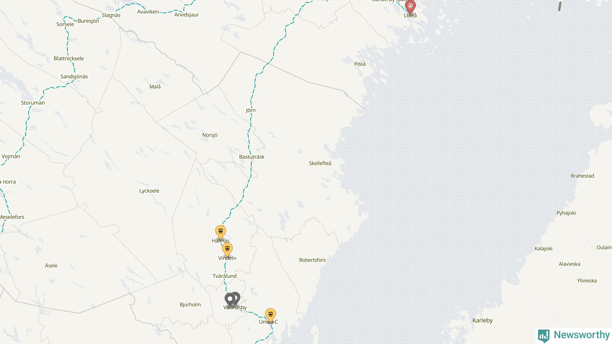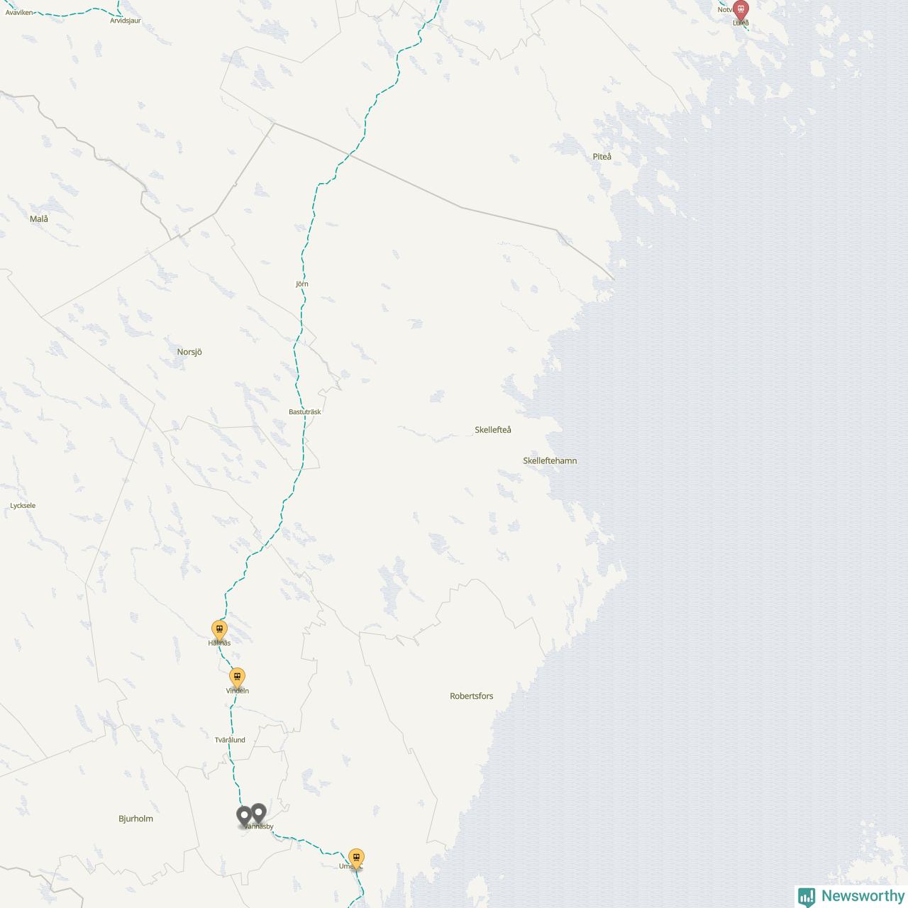 Kartdata från Mapbox, Newsworthy, OpenStreetMap och Trafikverket. Uppgifter om sträckor med passagerartrafik från jarnvag.net.