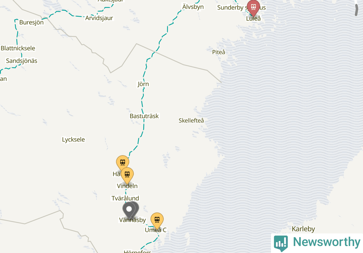 Som försenat räknas ett tåg när det varit minst fem minuter sent vid ankomst till stationerna i Vännäs kommun.