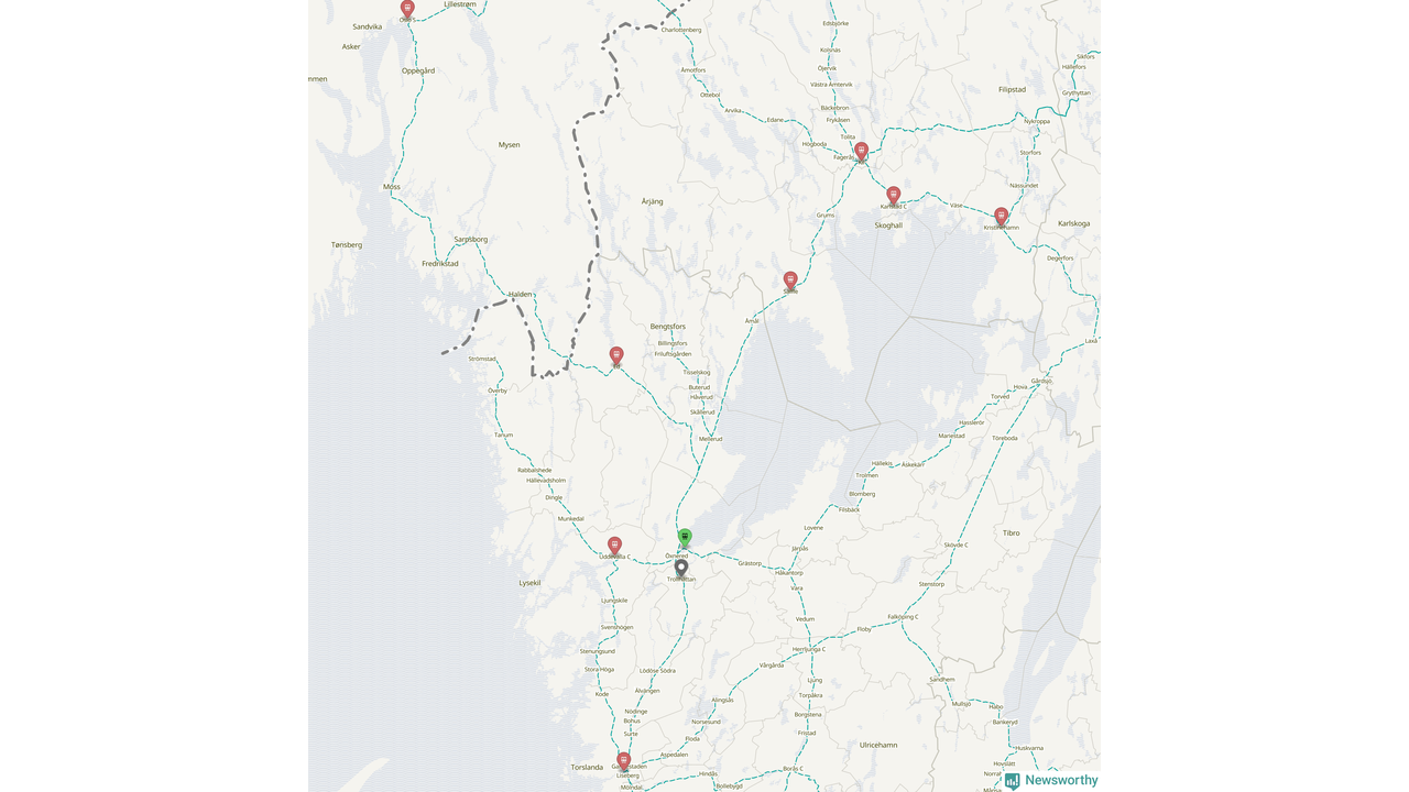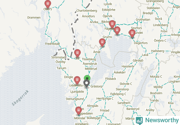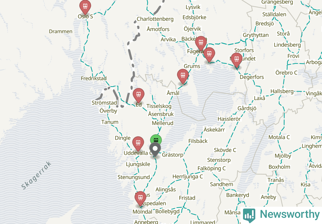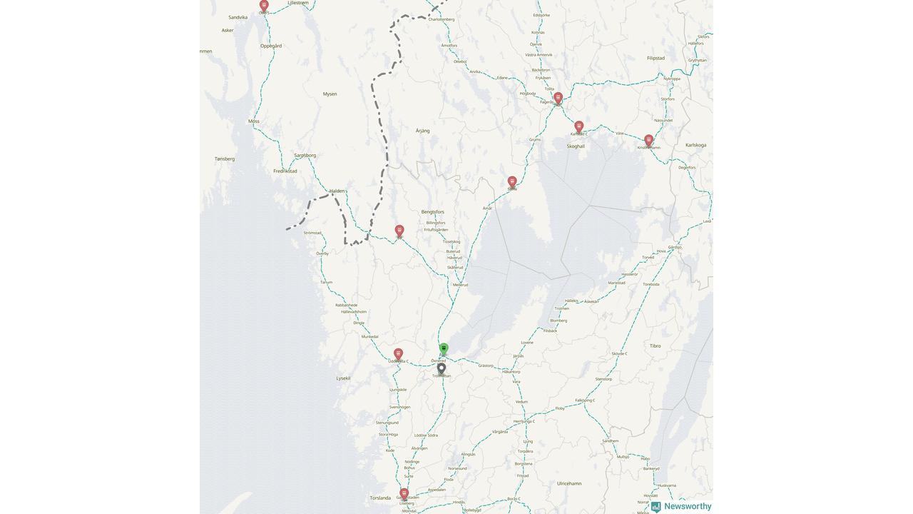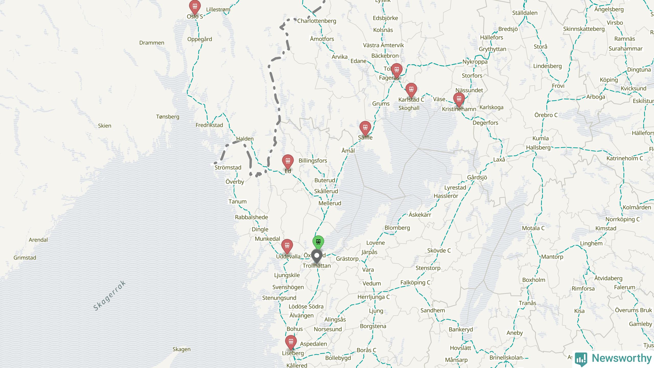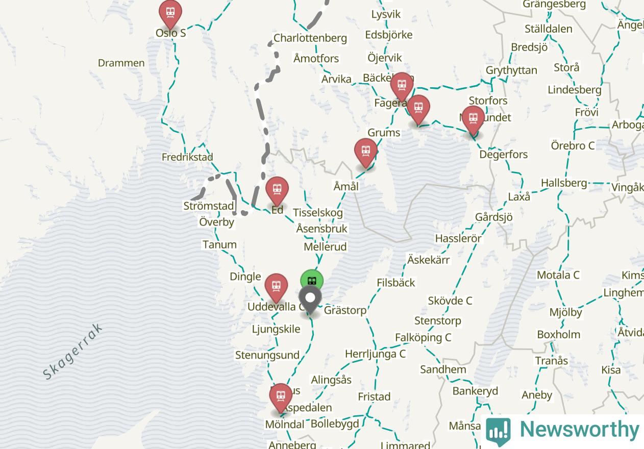 Kartdata från Mapbox, Newsworthy, OpenStreetMap och Trafikverket. Uppgifter om sträckor med passagerartrafik från jarnvag.net.