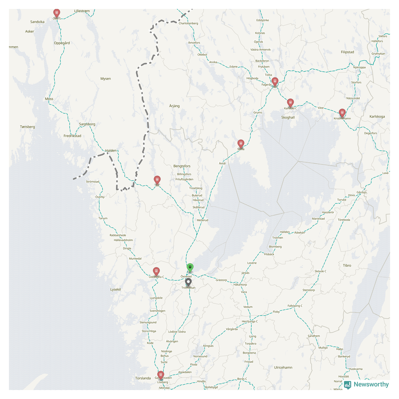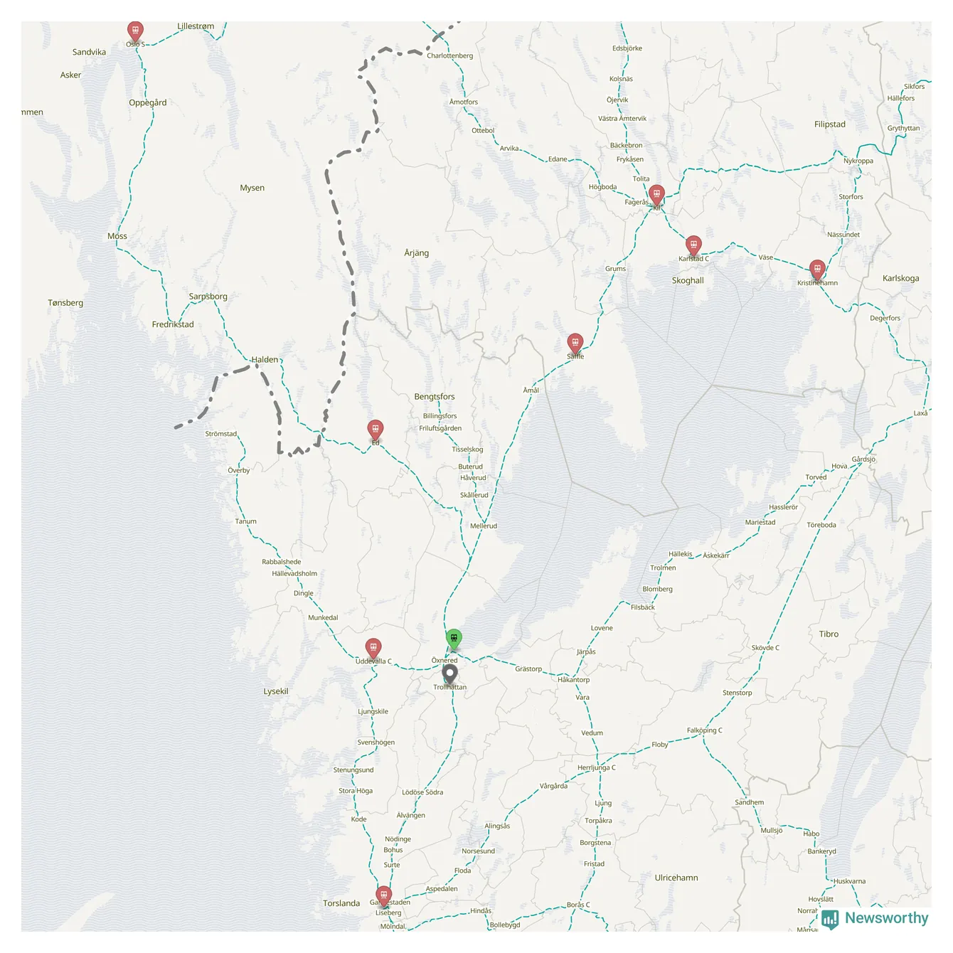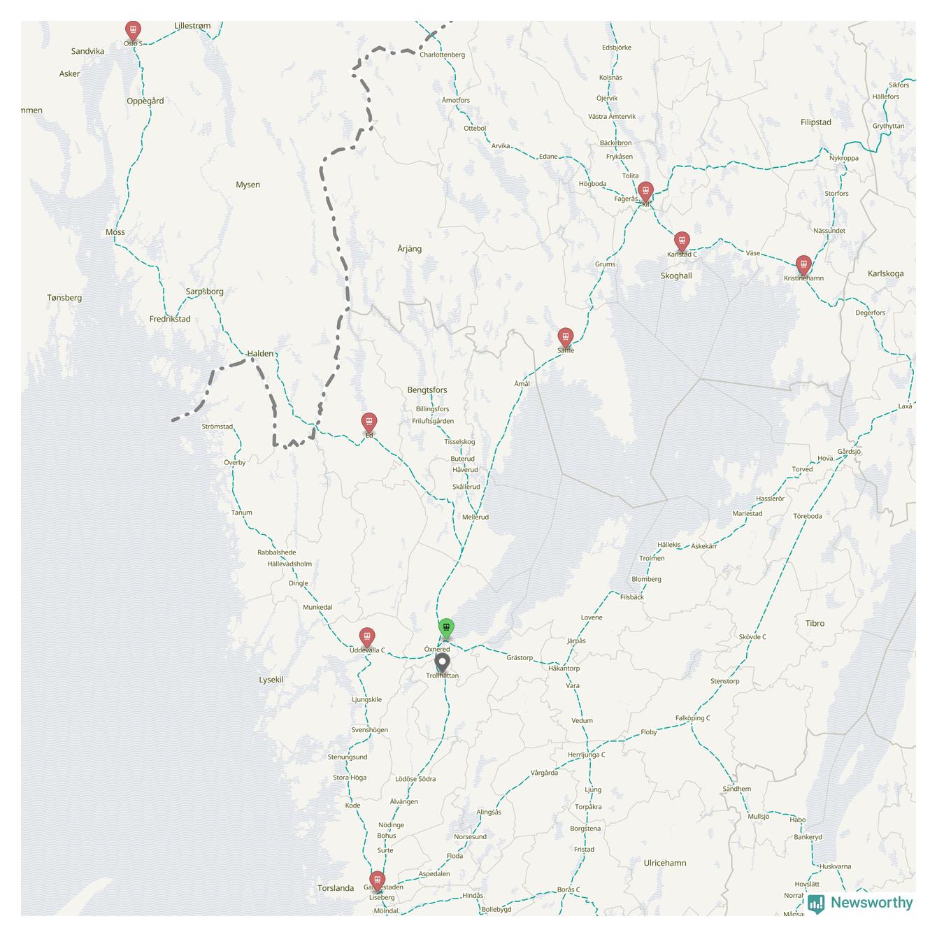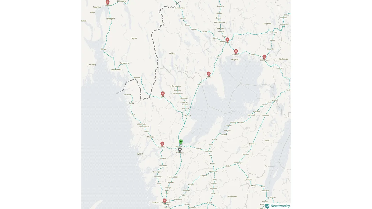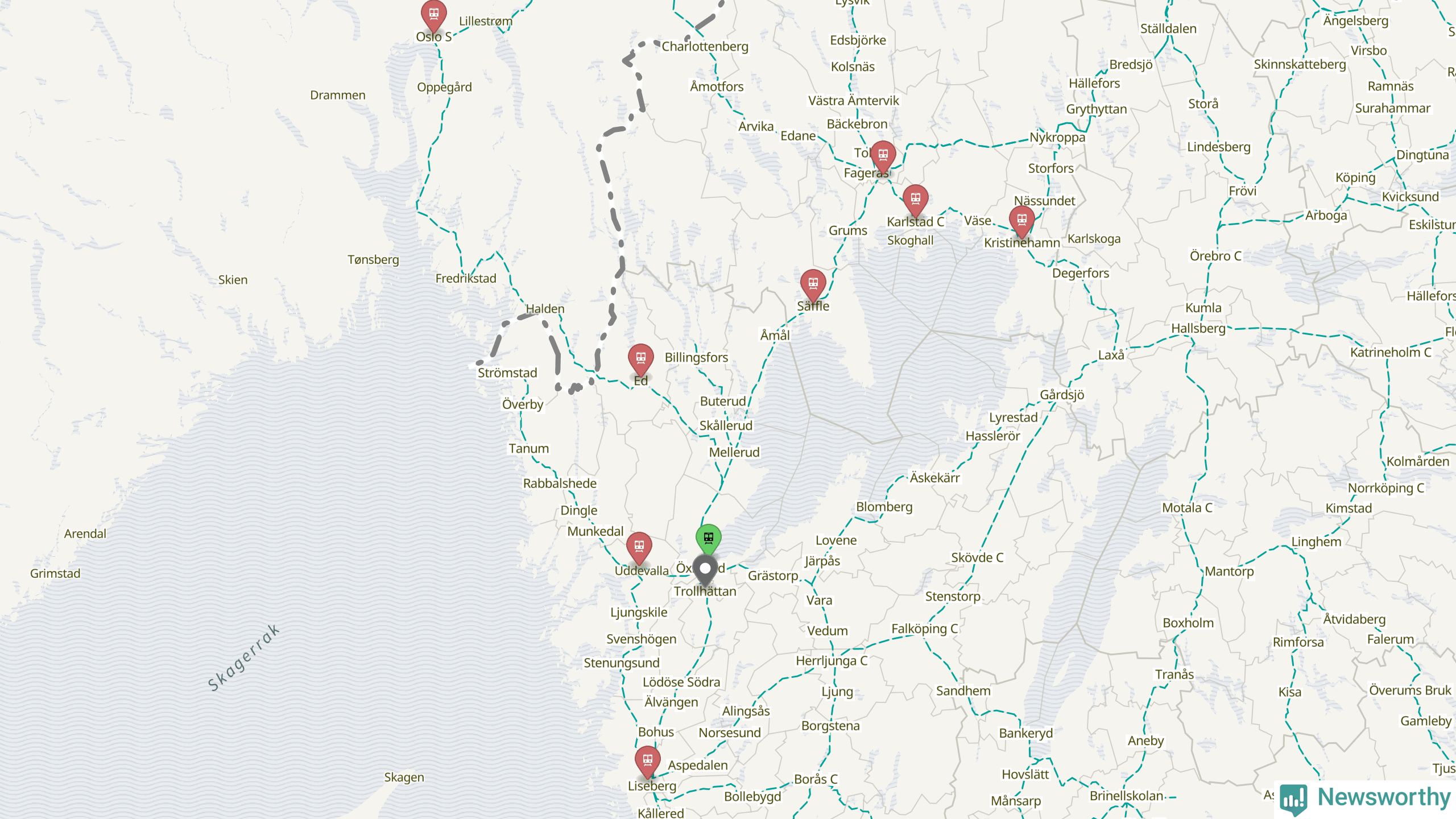 Kartdata från Mapbox, Newsworthy, OpenStreetMap och Trafikverket. Uppgifter om sträckor med passagerartrafik från jarnvag.net.