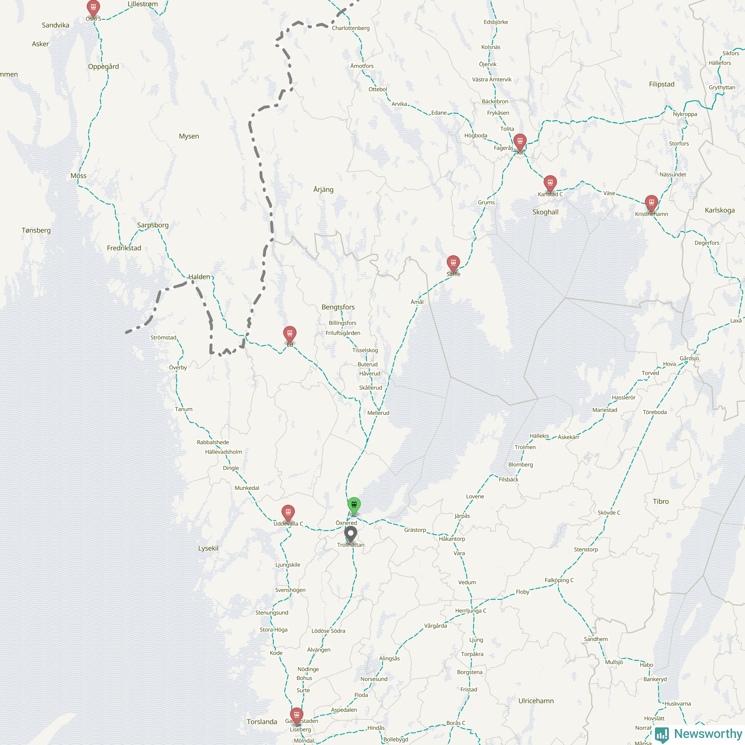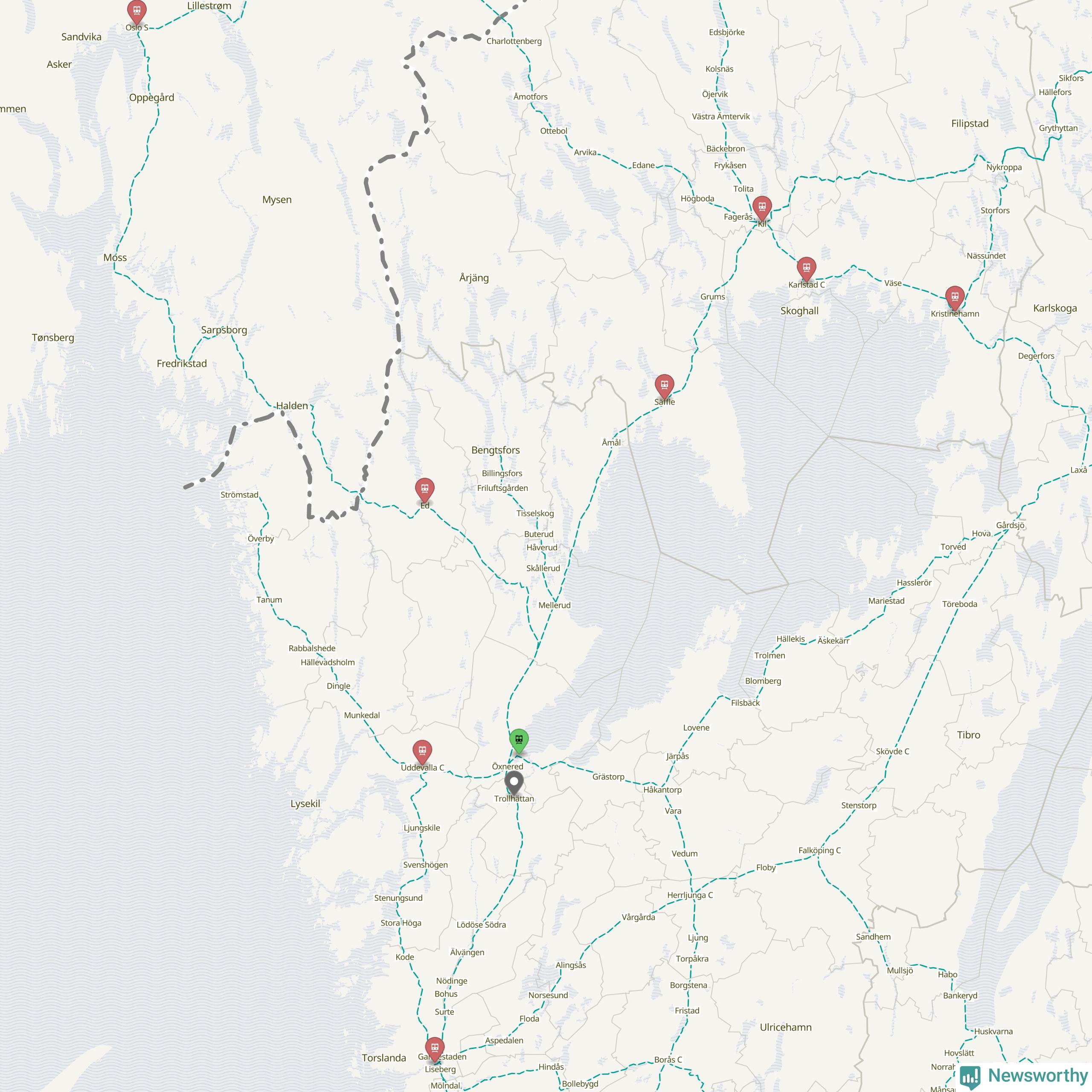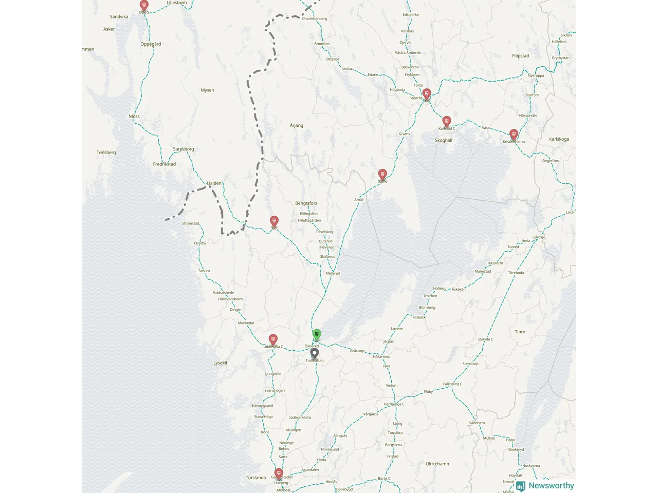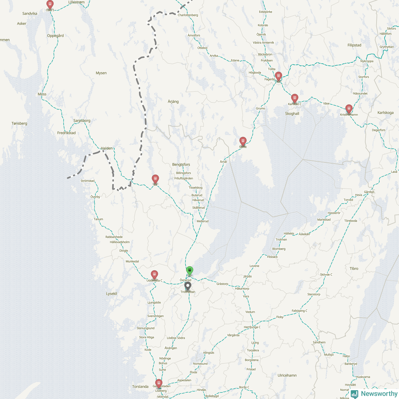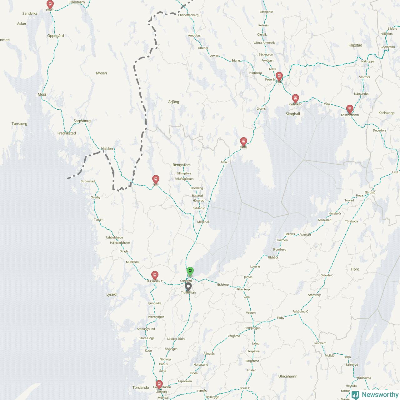 Kartdata från Mapbox, Newsworthy, OpenStreetMap och Trafikverket. Uppgifter om sträckor med passagerartrafik från jarnvag.net.