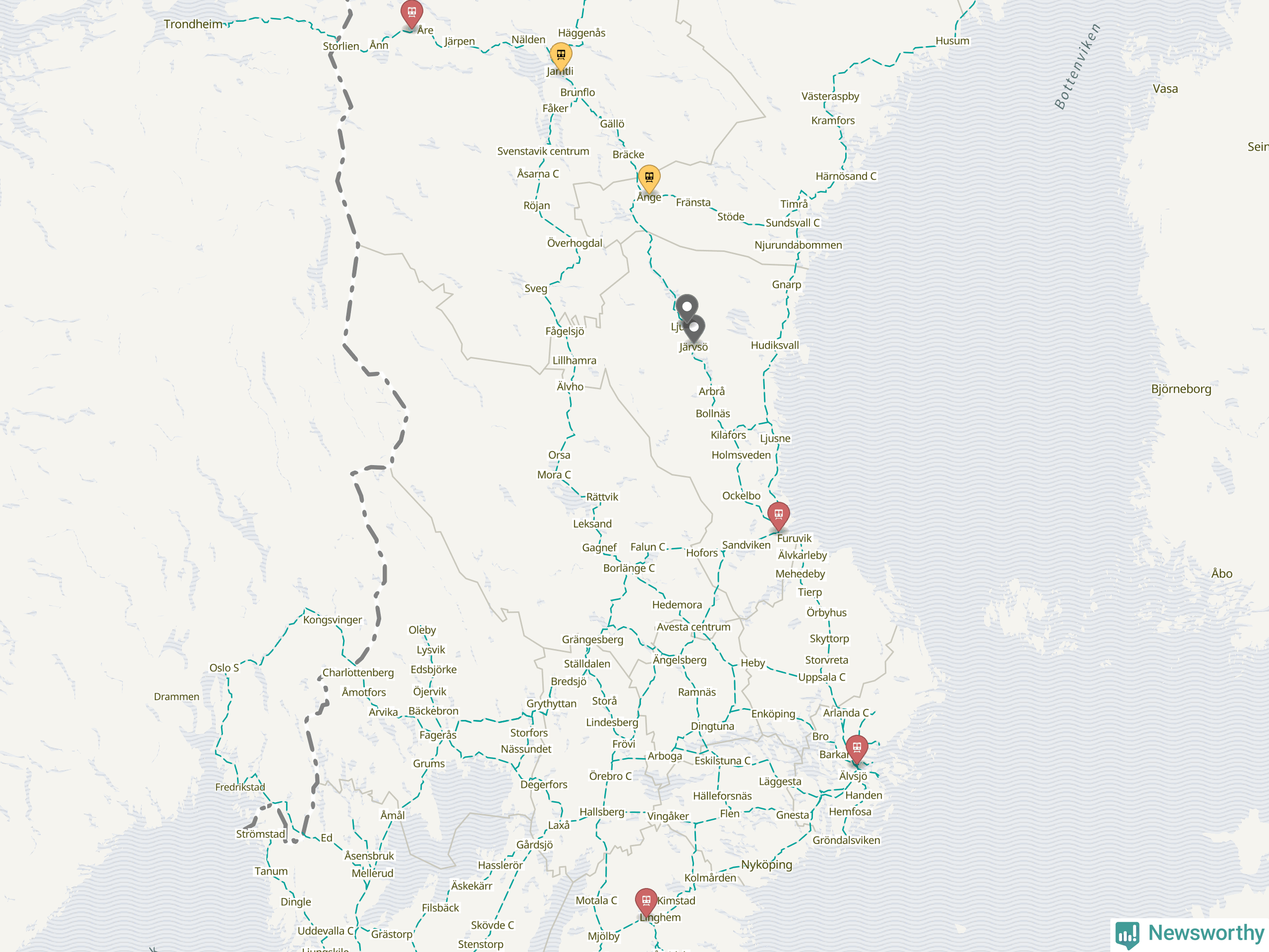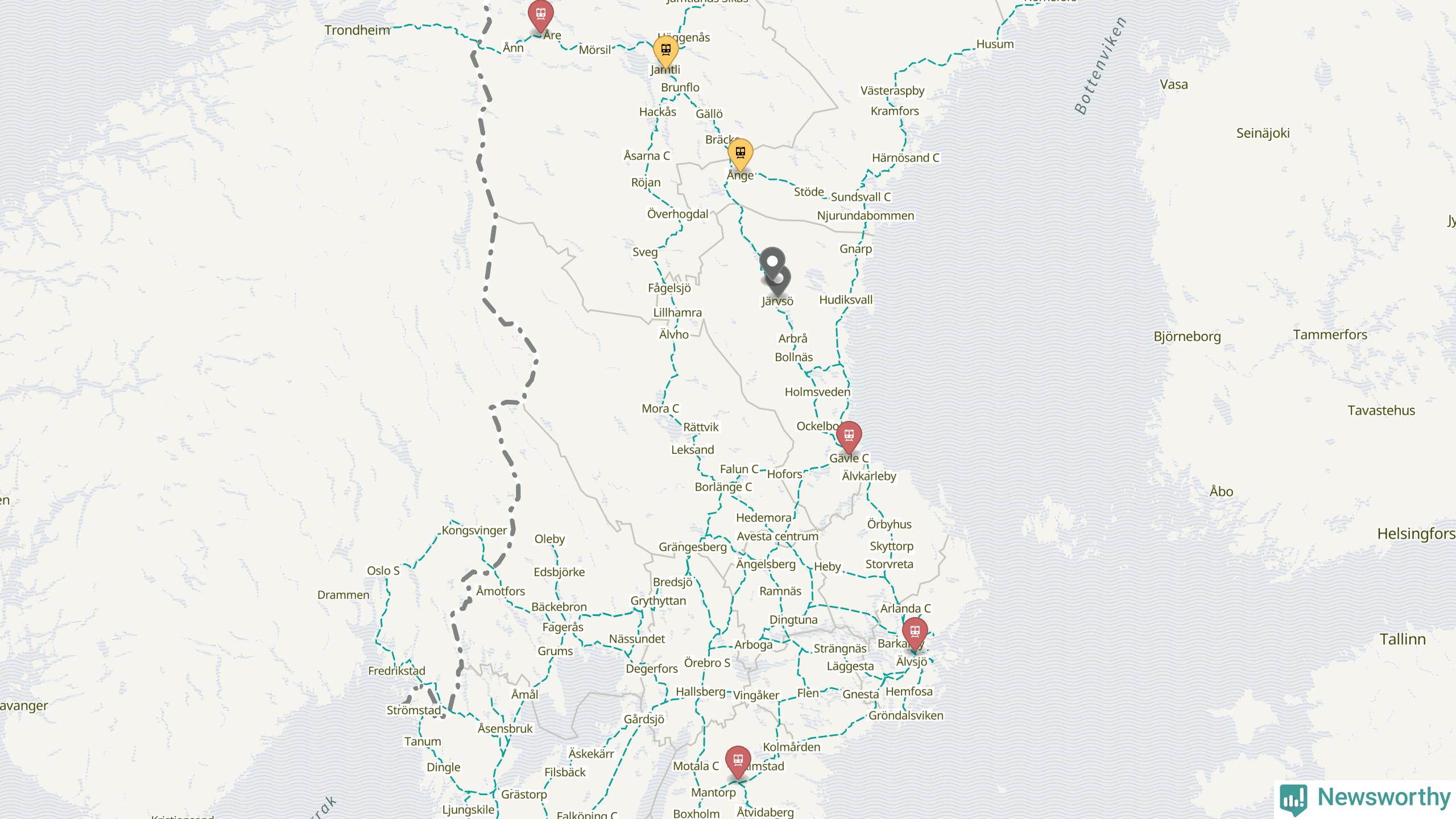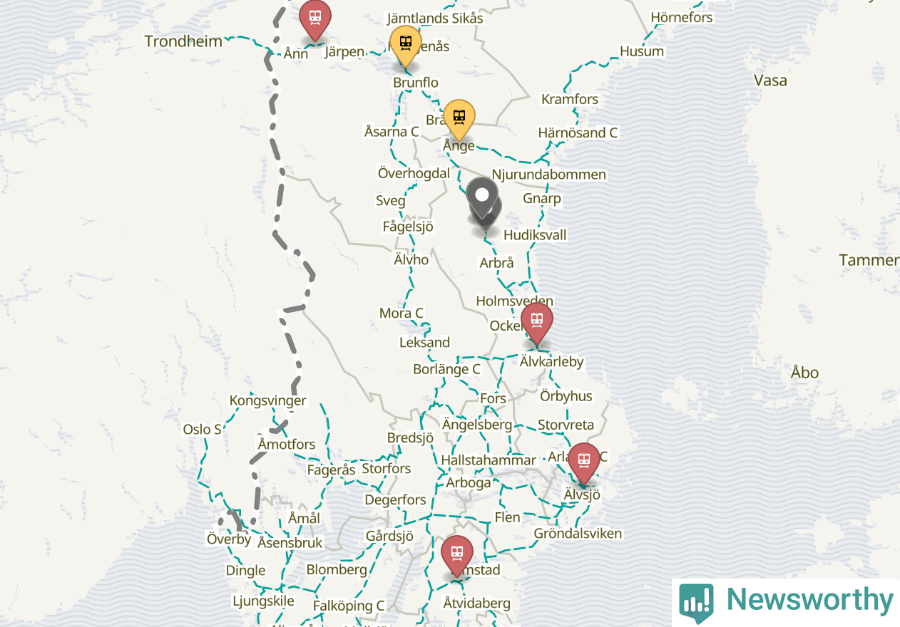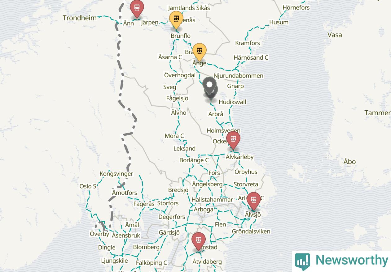 Kartdata från Mapbox, Newsworthy, OpenStreetMap och Trafikverket. Uppgifter om sträckor med passagerartrafik från jarnvag.net.