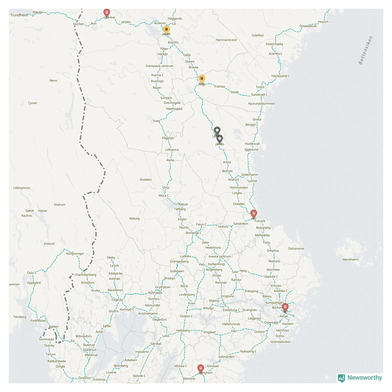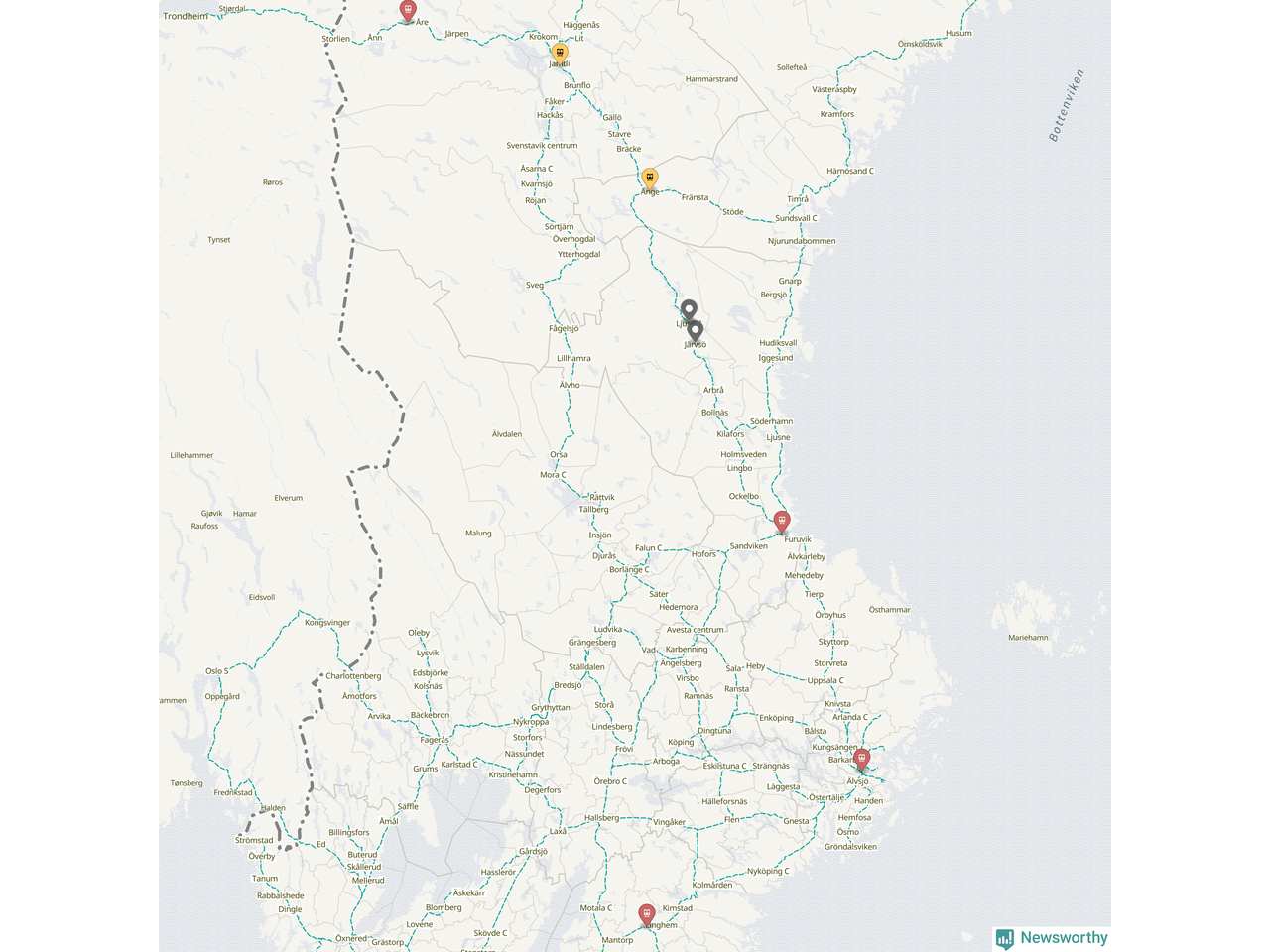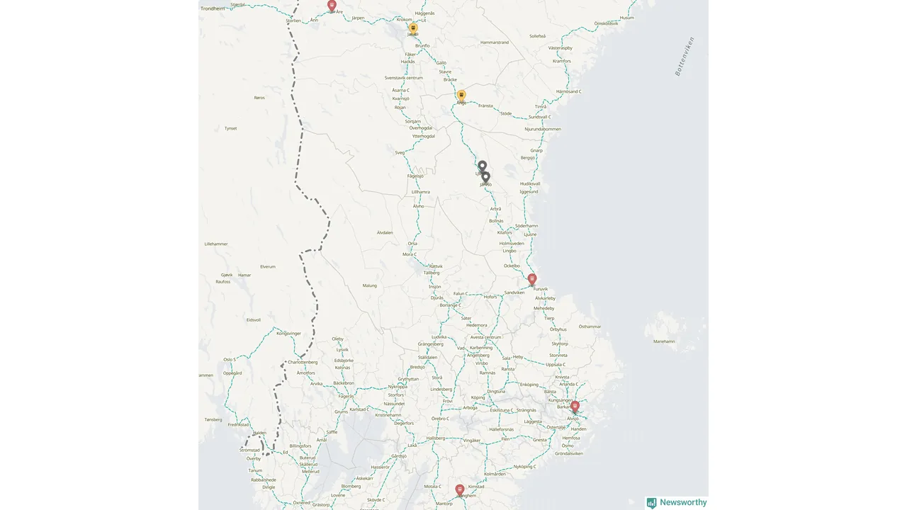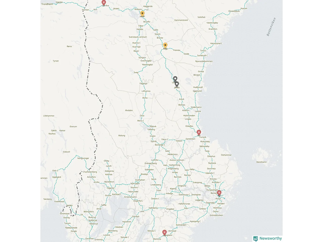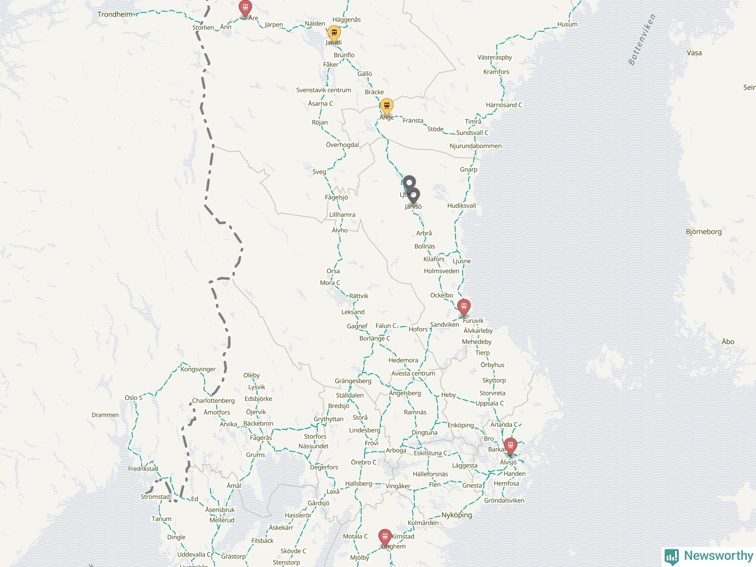 Kartdata från Mapbox, Newsworthy, OpenStreetMap och Trafikverket. Uppgifter om sträckor med passagerartrafik från jarnvag.net.