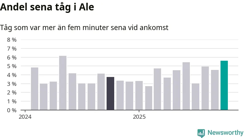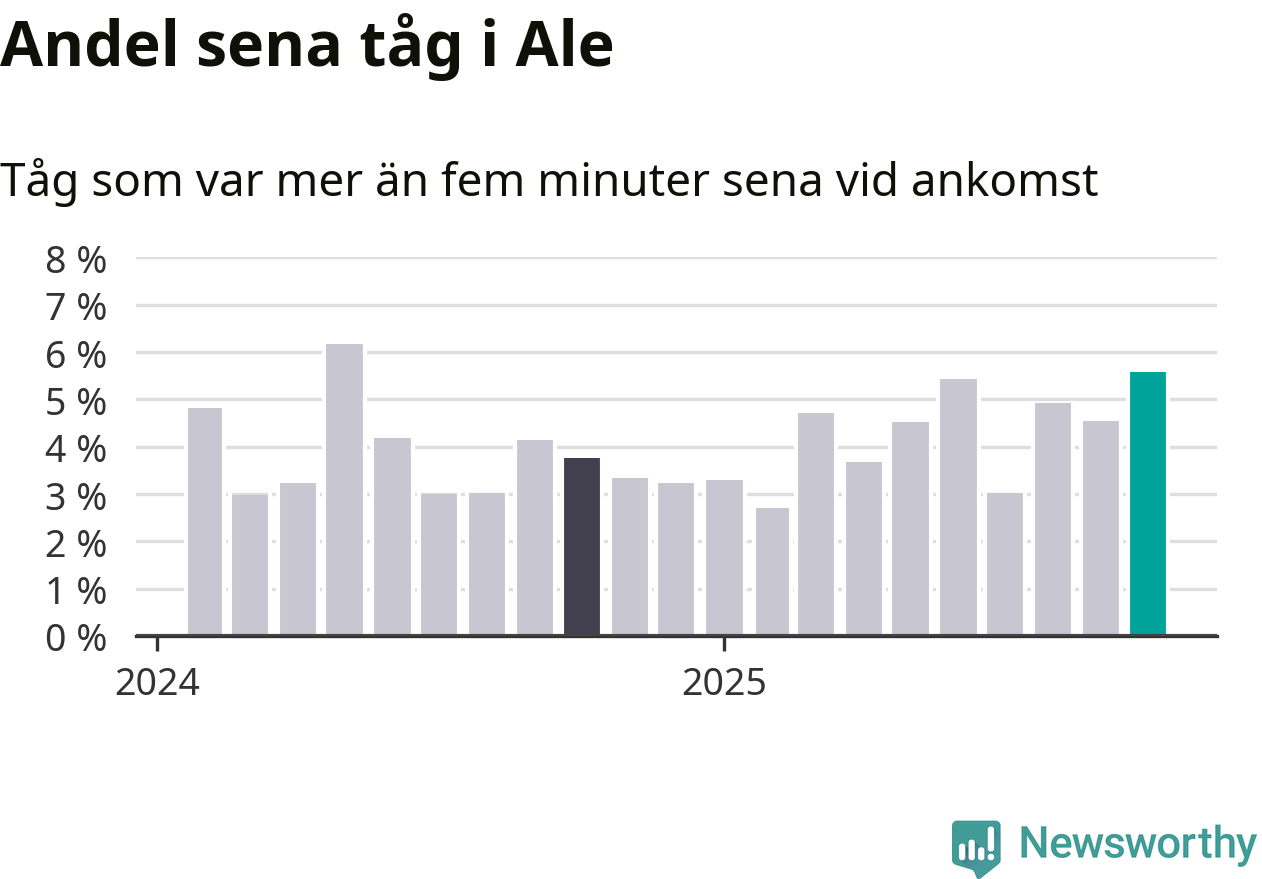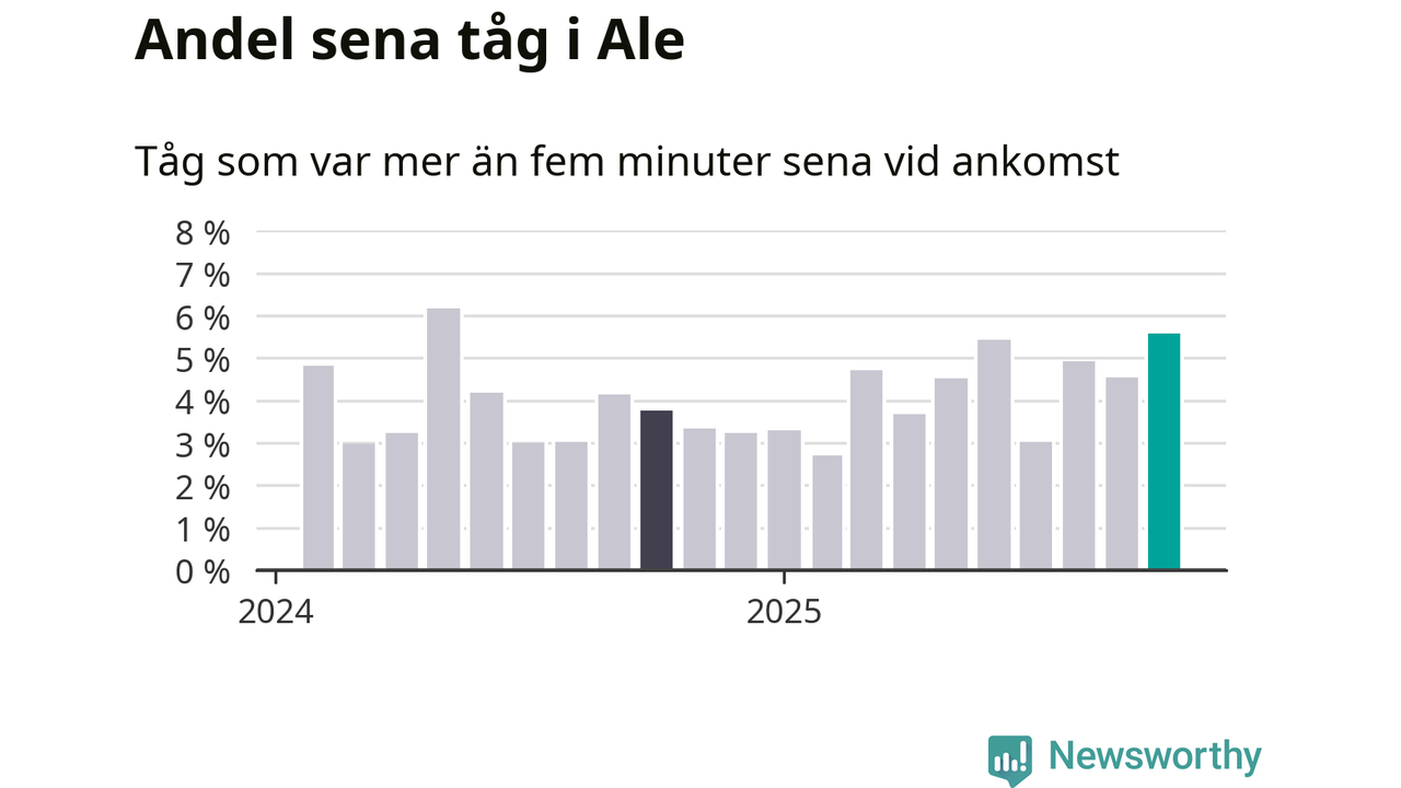 Mest förseningsdrabbade månaden sedan maj i fjol i Ale
