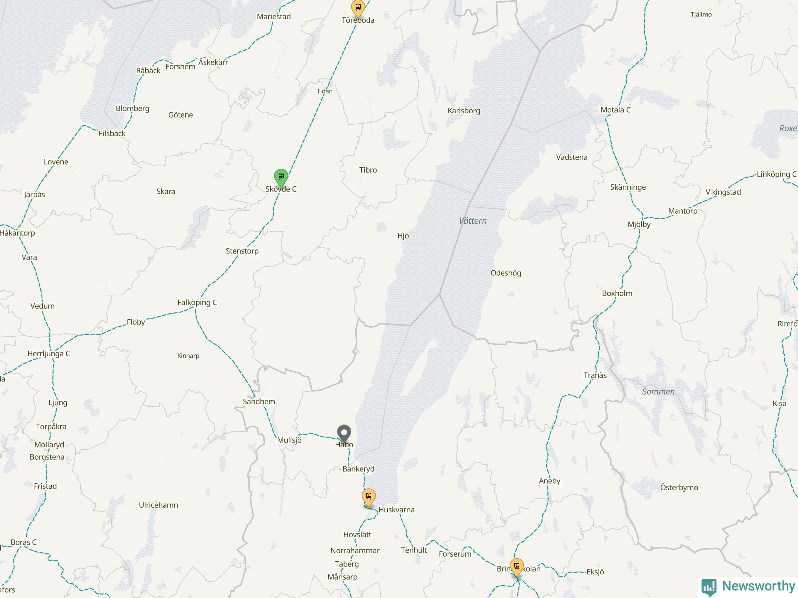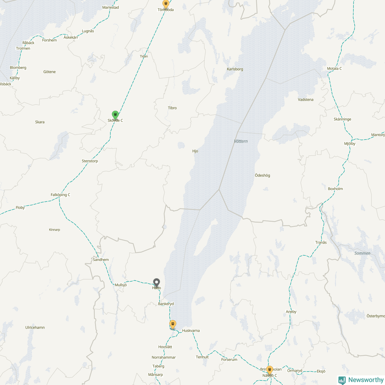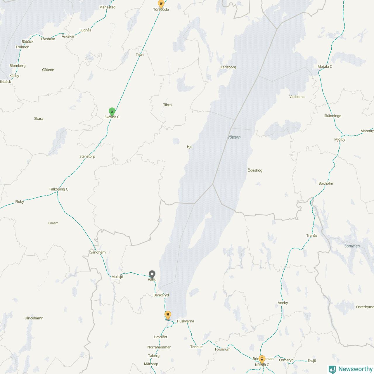 Kartdata från Mapbox, Newsworthy, OpenStreetMap och Trafikverket. Uppgifter om sträckor med passagerartrafik från jarnvag.net.