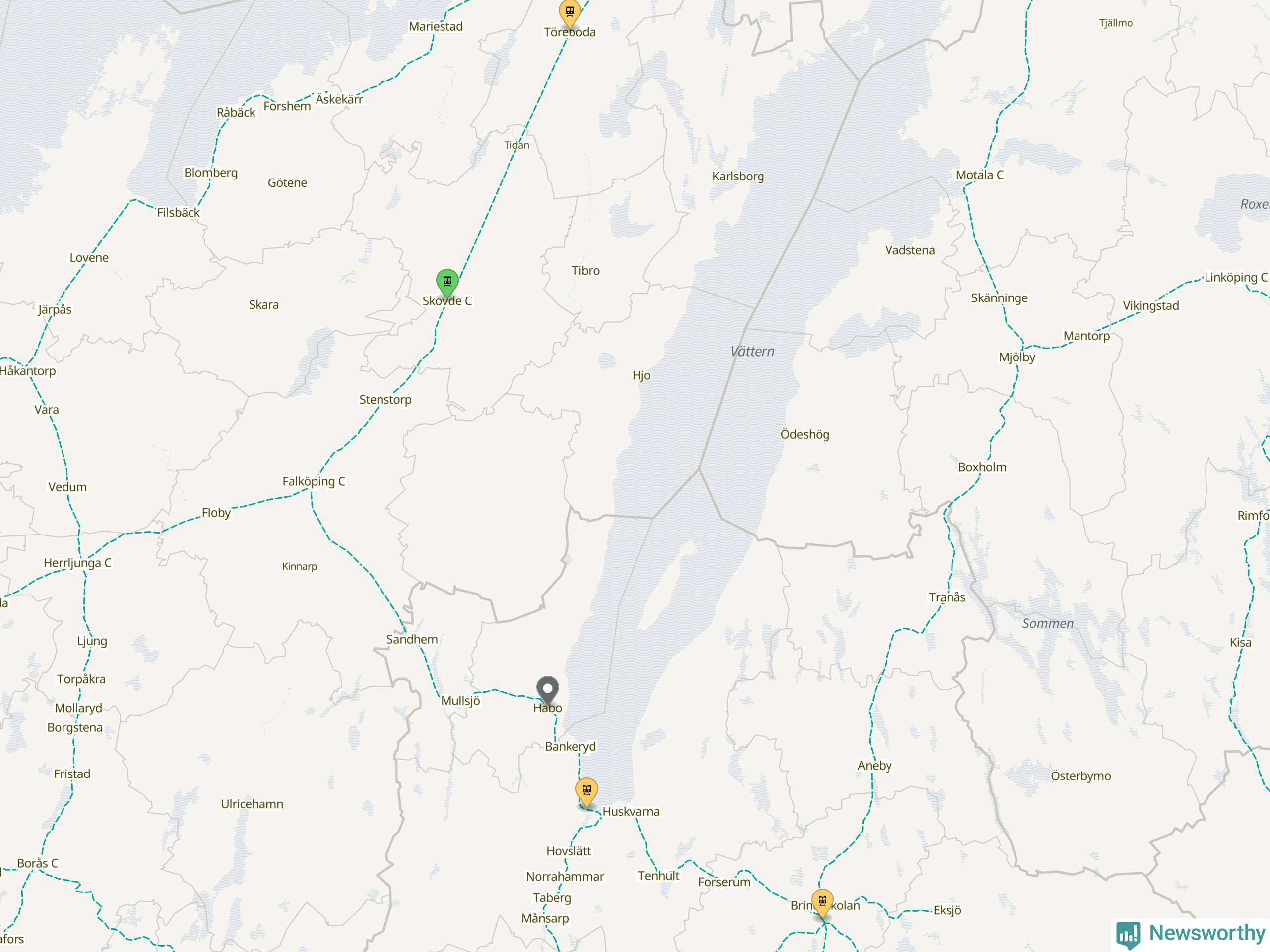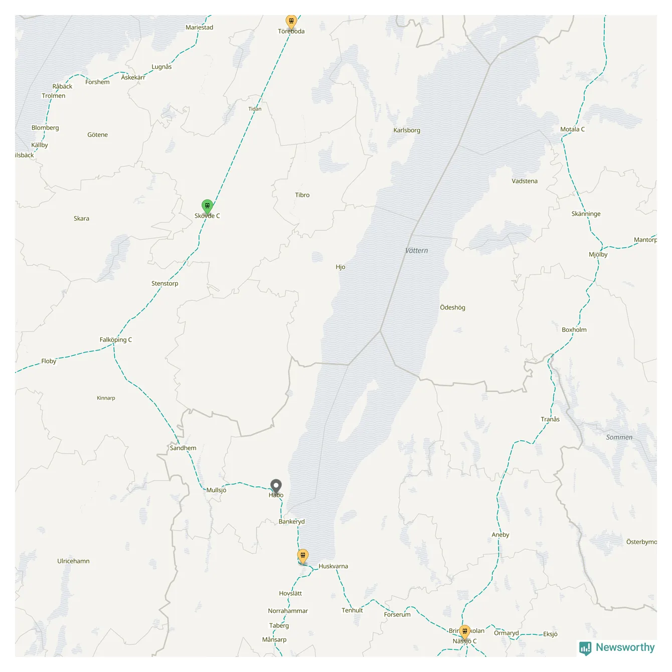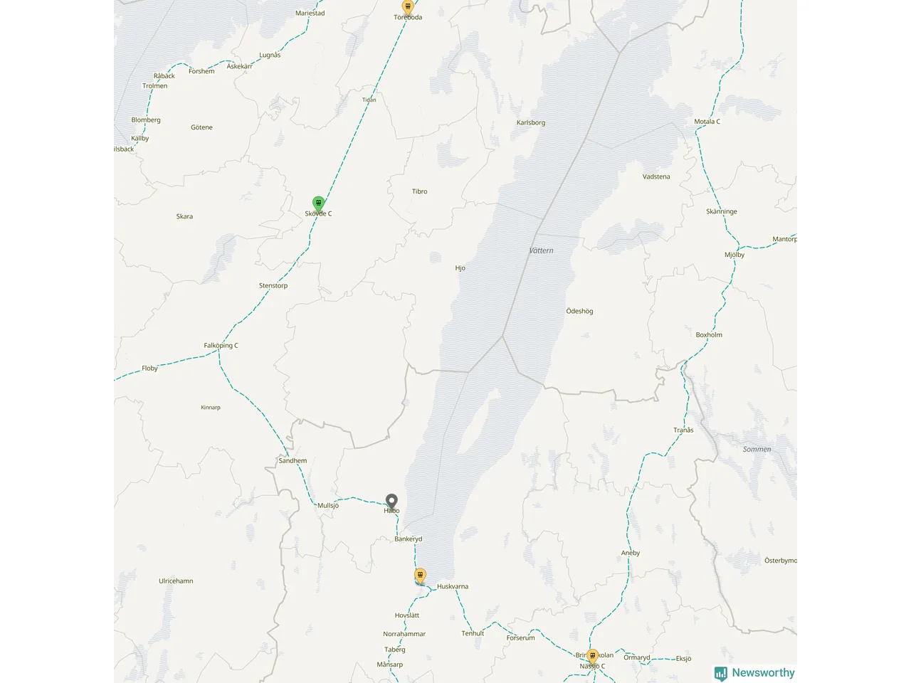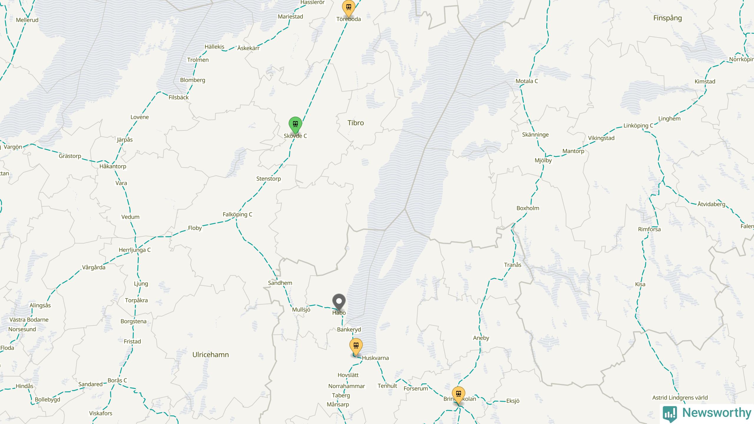 Kartdata från Mapbox, Newsworthy, OpenStreetMap och Trafikverket. Uppgifter om sträckor med passagerartrafik från jarnvag.net.