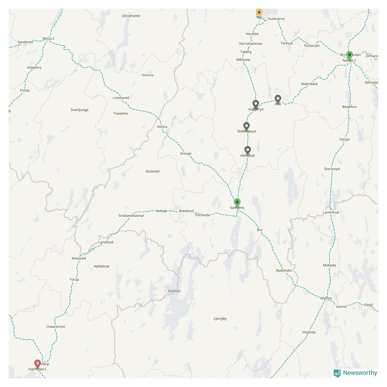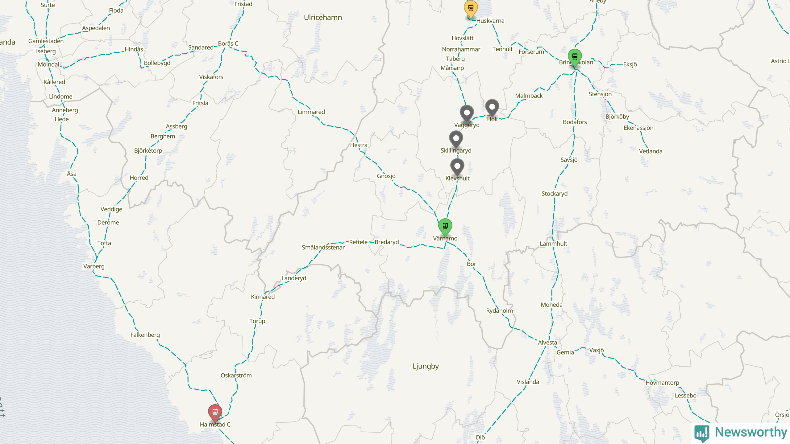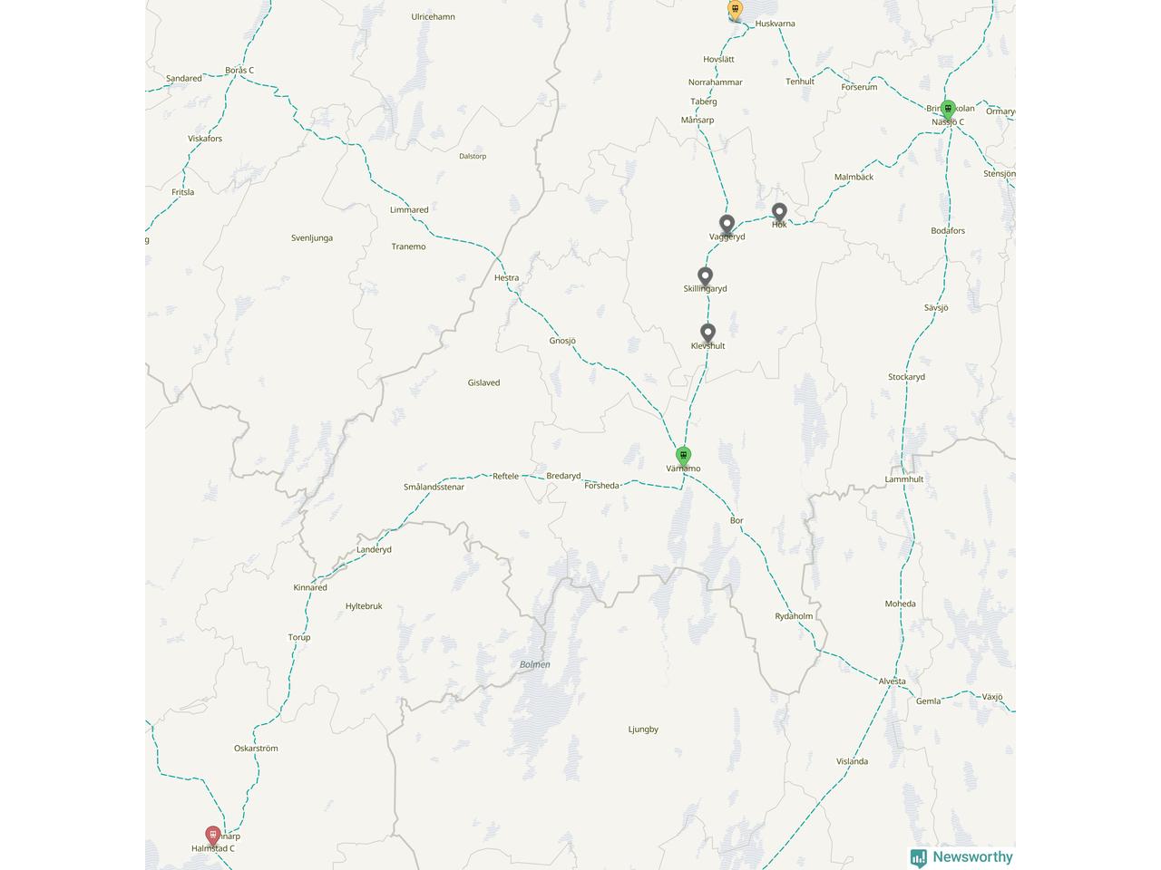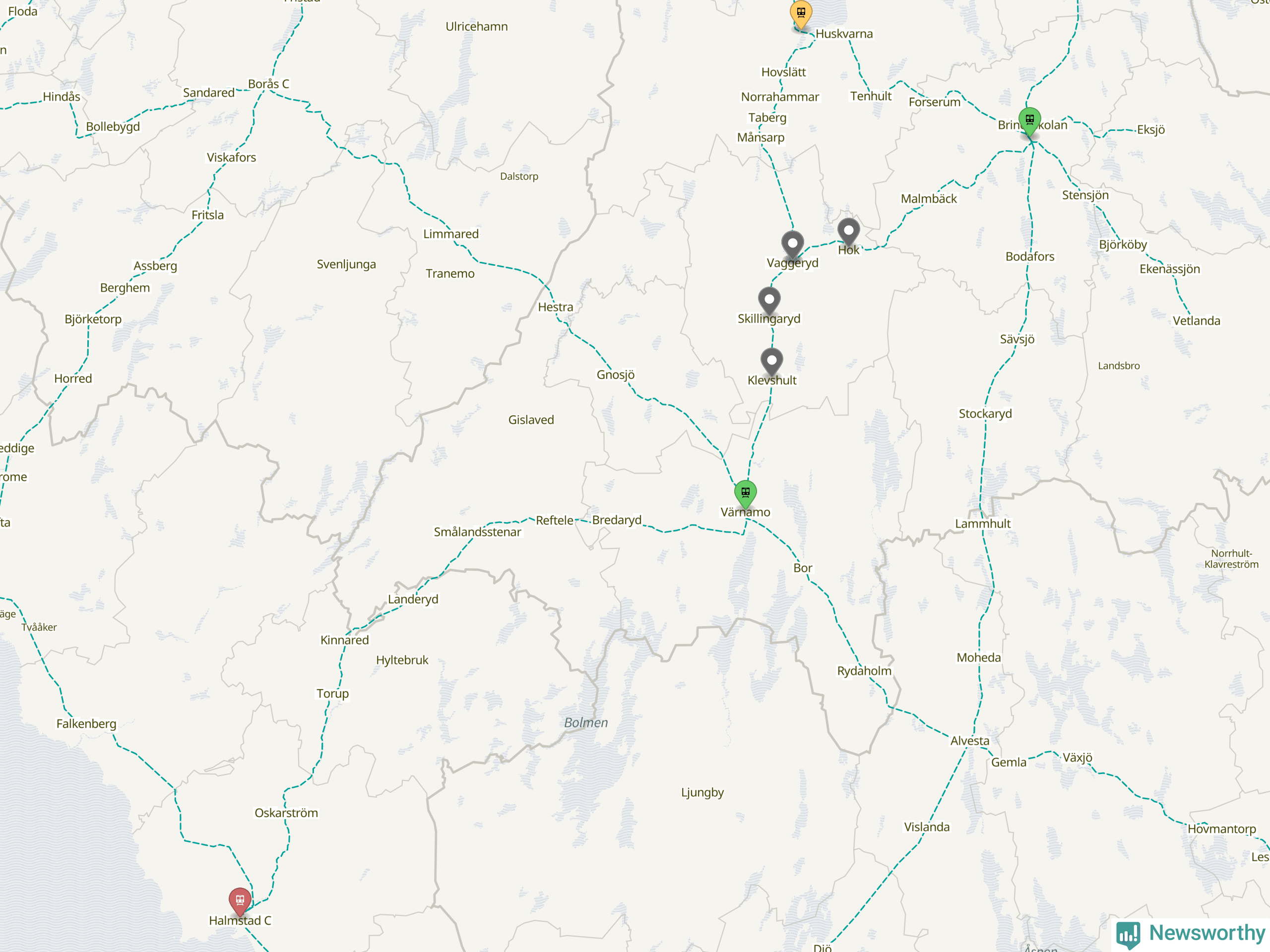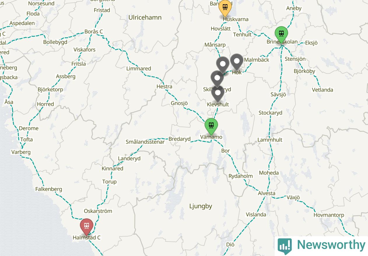 Kartdata från Mapbox, Newsworthy, OpenStreetMap och Trafikverket. Uppgifter om sträckor med passagerartrafik från jarnvag.net.