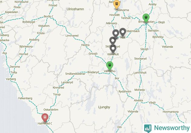 | Halmstad C–Jönköping C | Krösatågen | 8 % (9 av 109 tåg) | 1 minut och 44 sekunder | 15 mil |