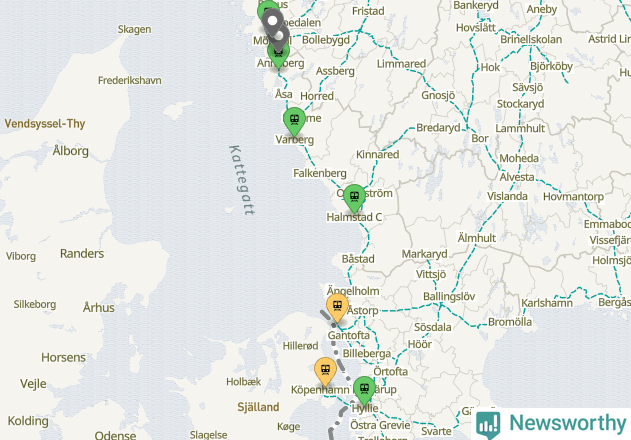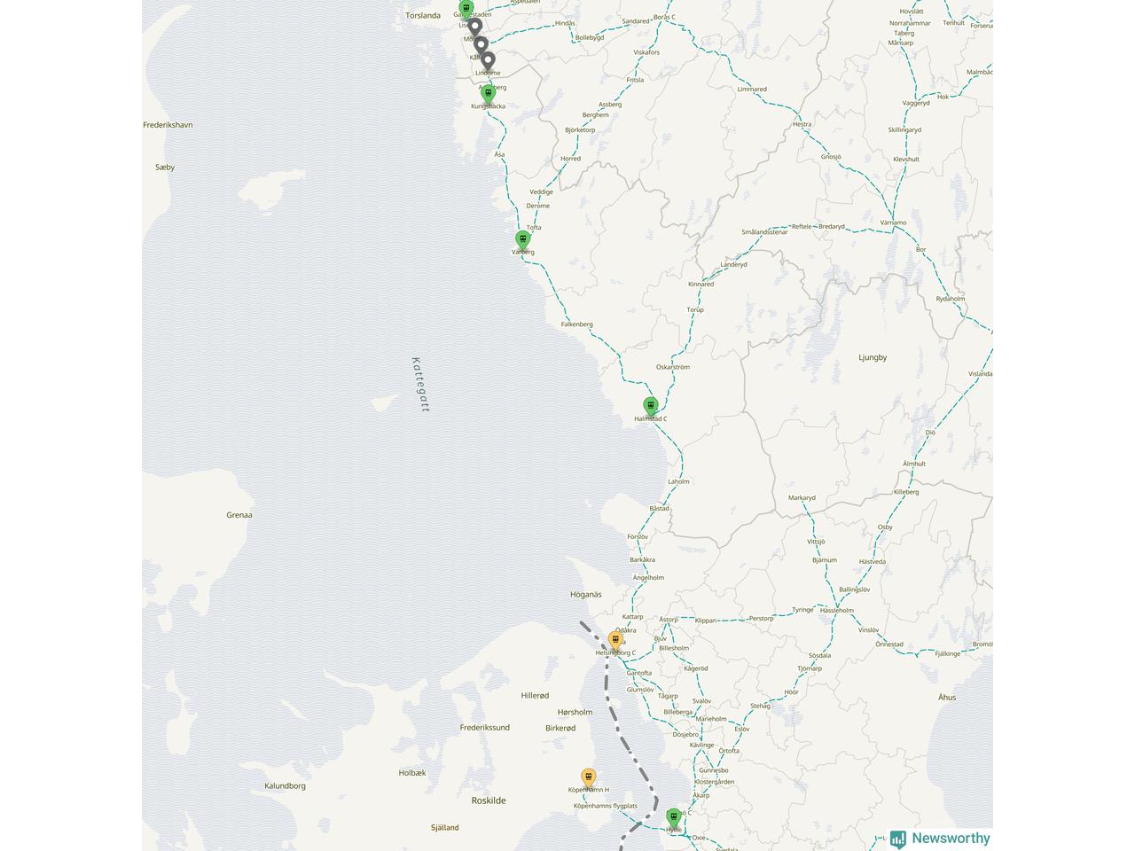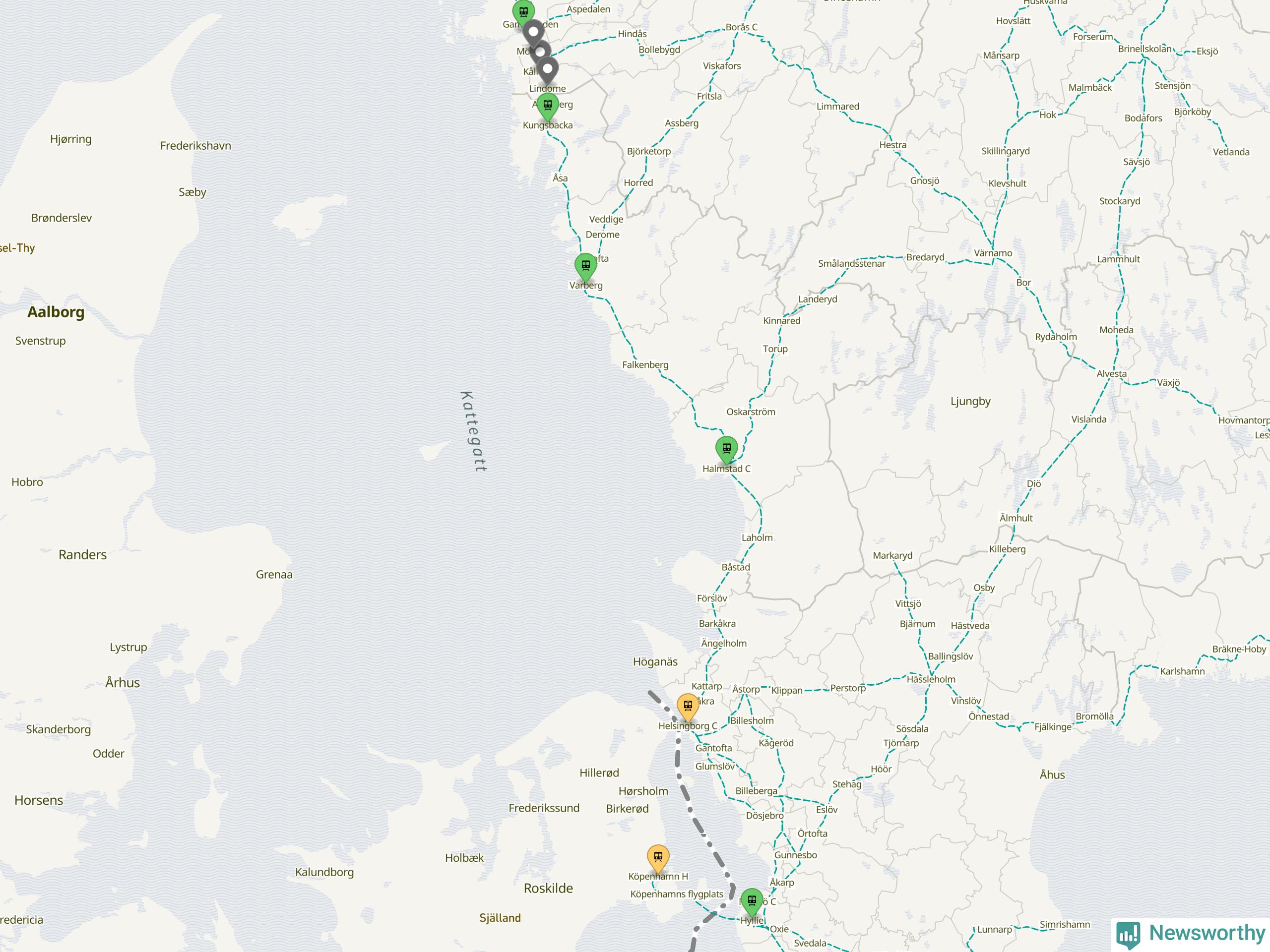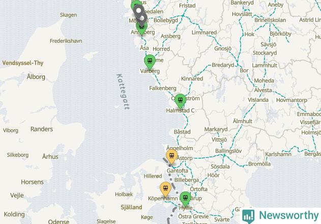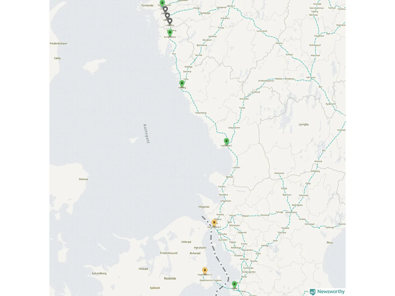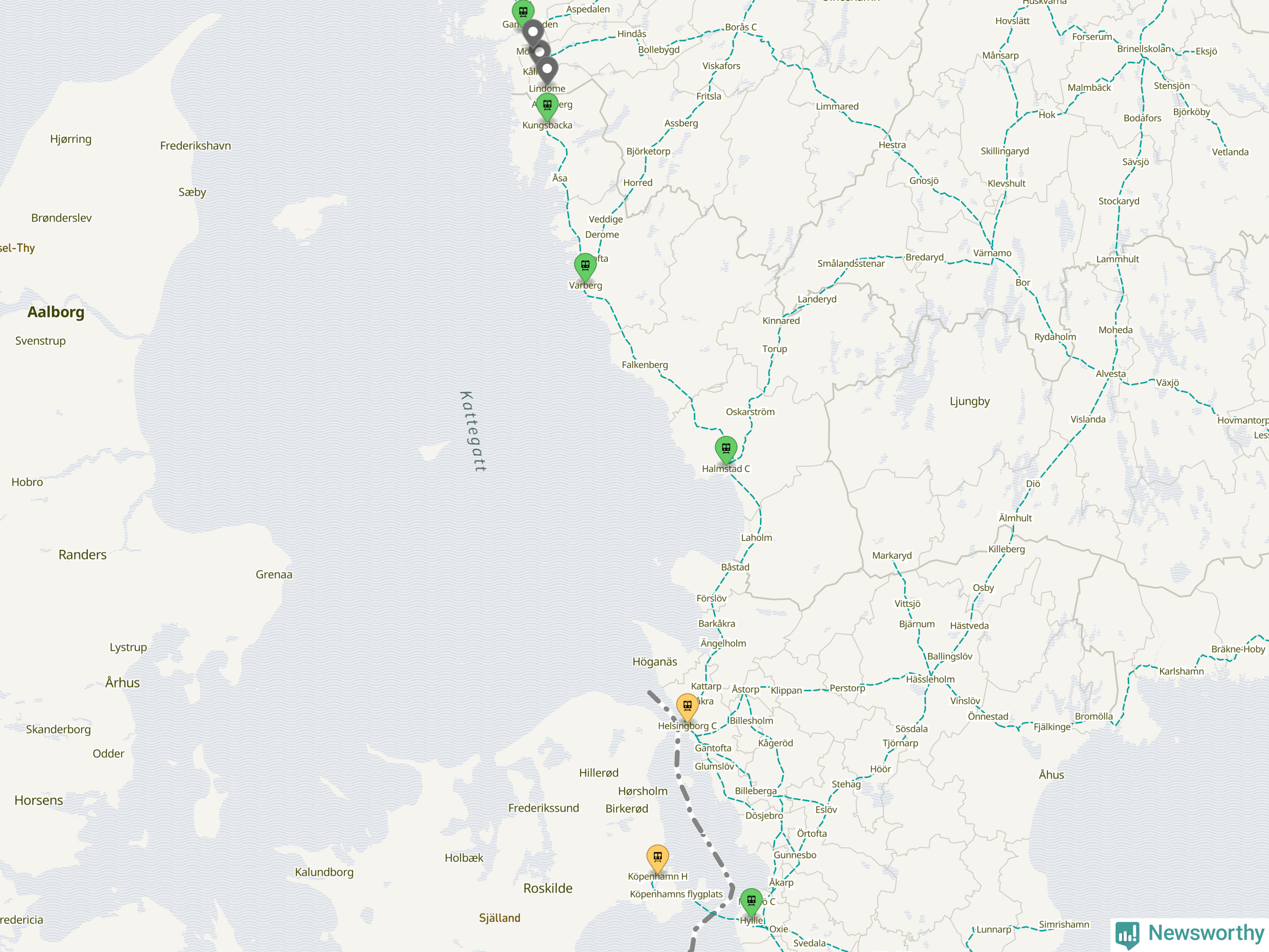 Kartdata från Mapbox, Newsworthy, OpenStreetMap och Trafikverket. Uppgifter om sträckor med passagerartrafik från jarnvag.net.