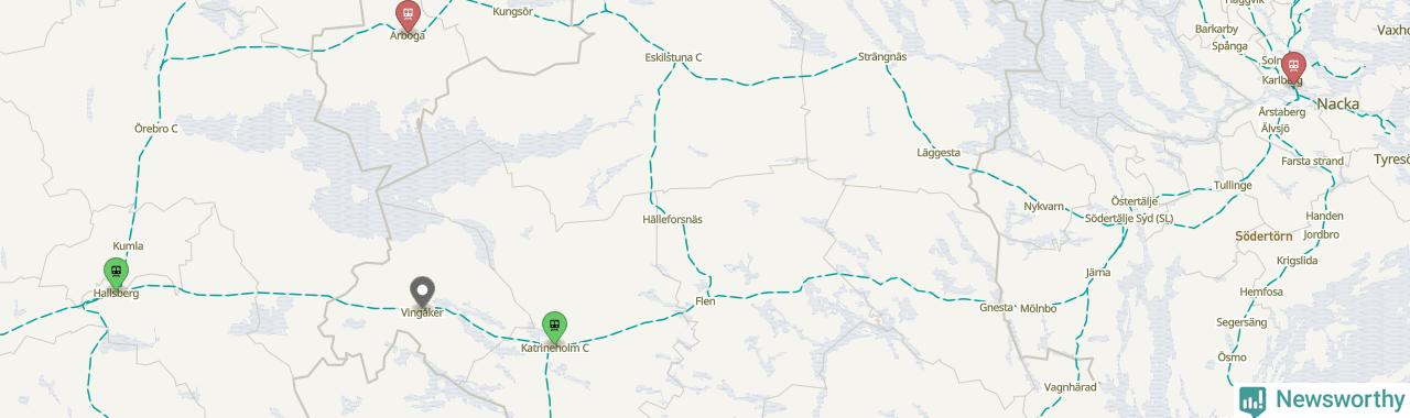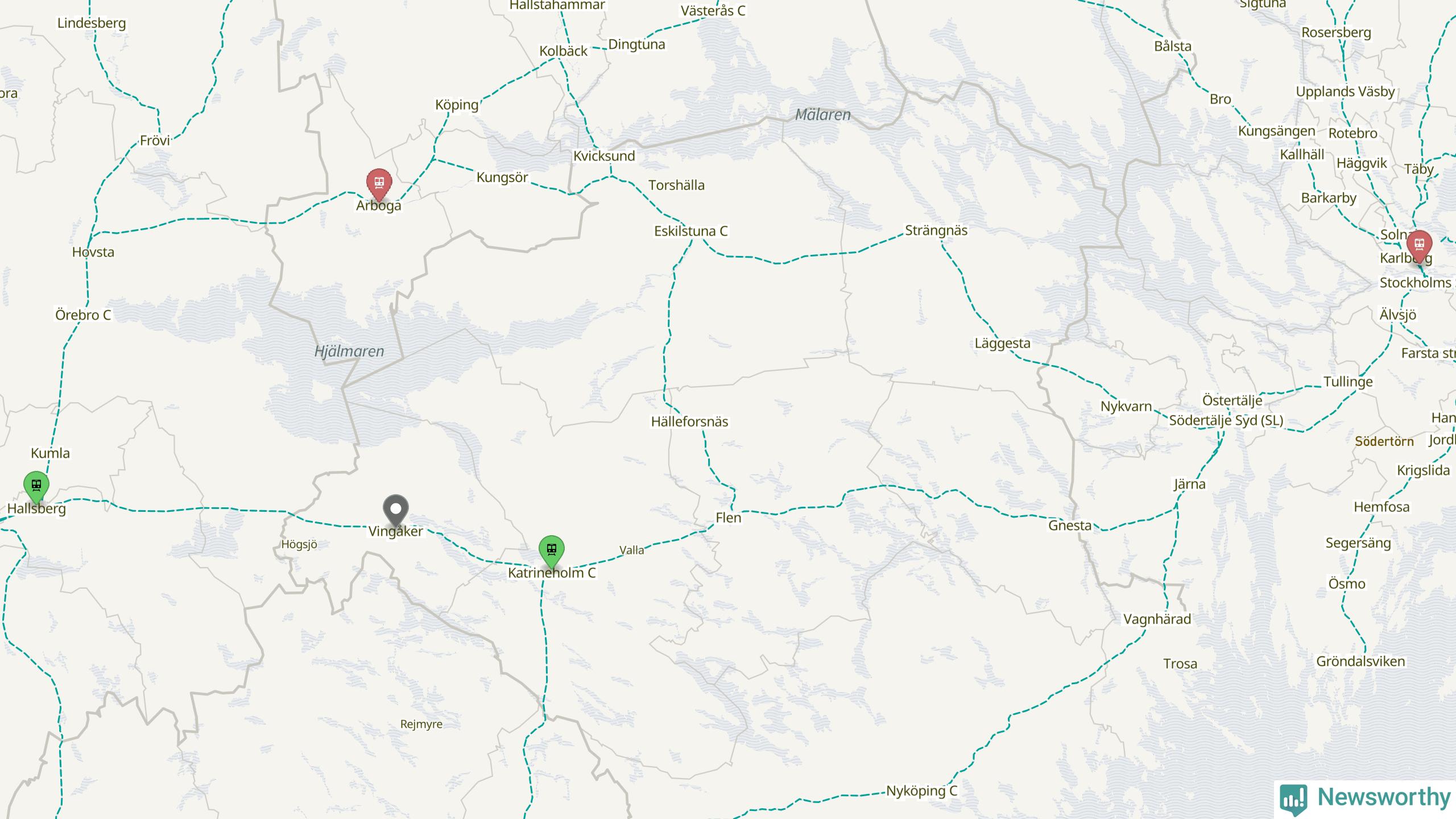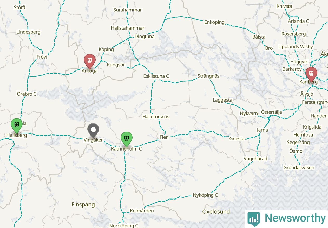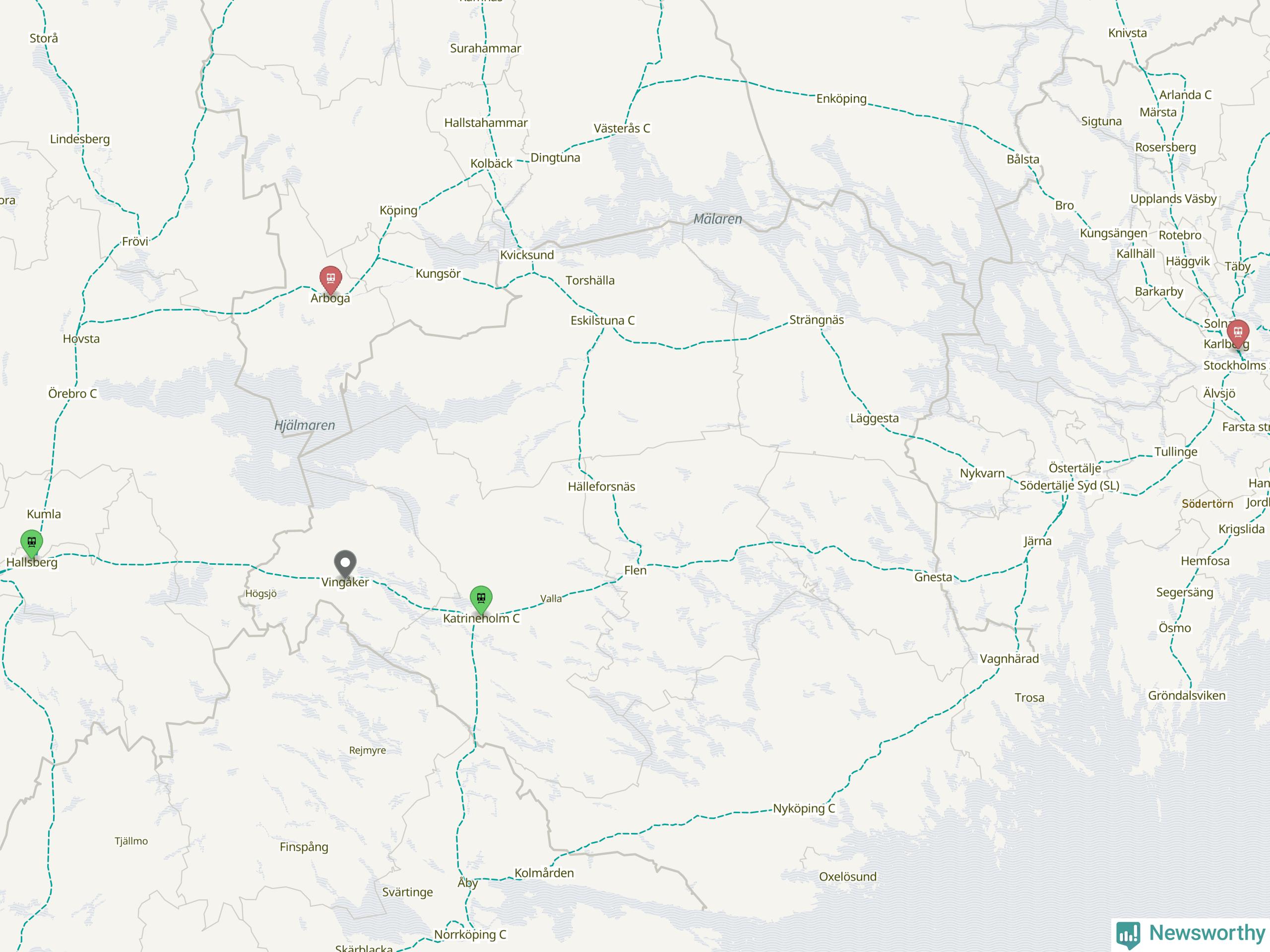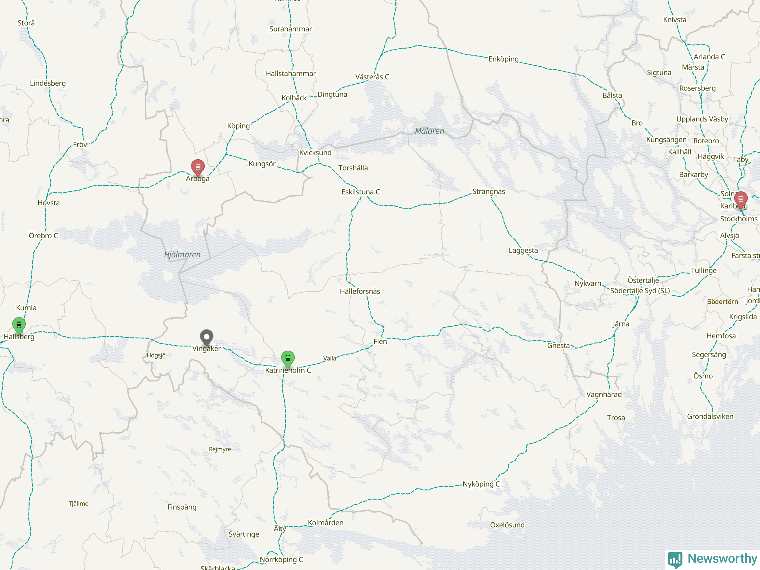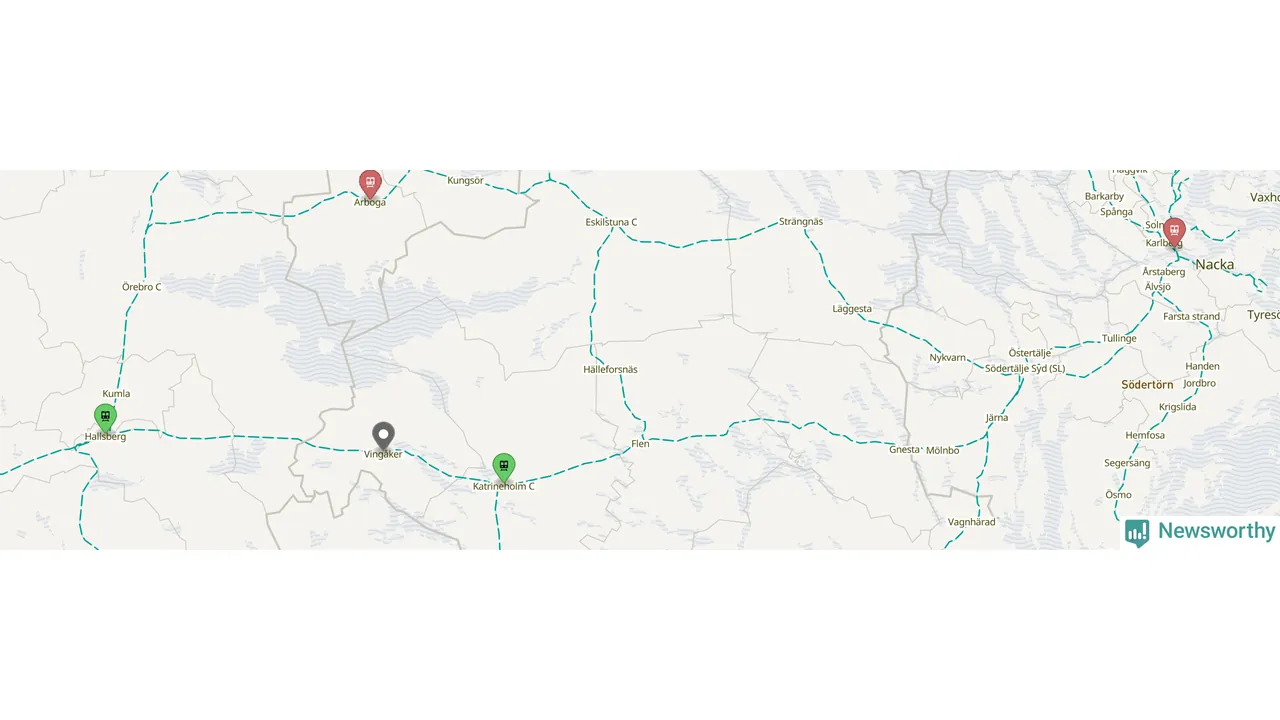 Kartdata från Mapbox, Newsworthy, OpenStreetMap och Trafikverket. Uppgifter om sträckor med passagerartrafik från jarnvag.net.