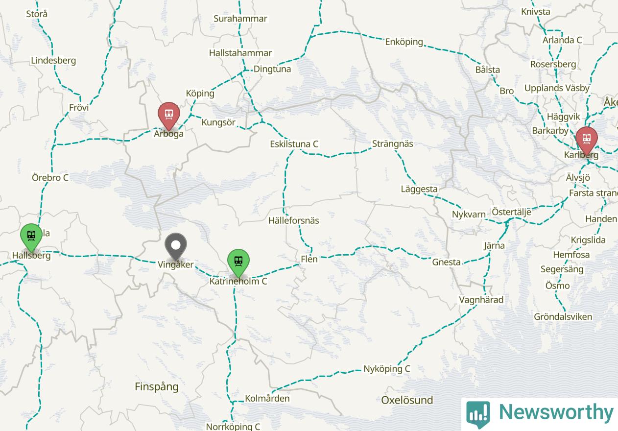 Som försenat räknas ett tåg när det varit minst fem minuter sent vid ankomst till stationerna i Vingåkers kommun.
