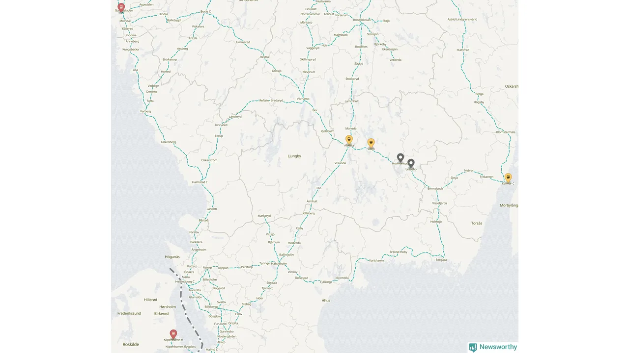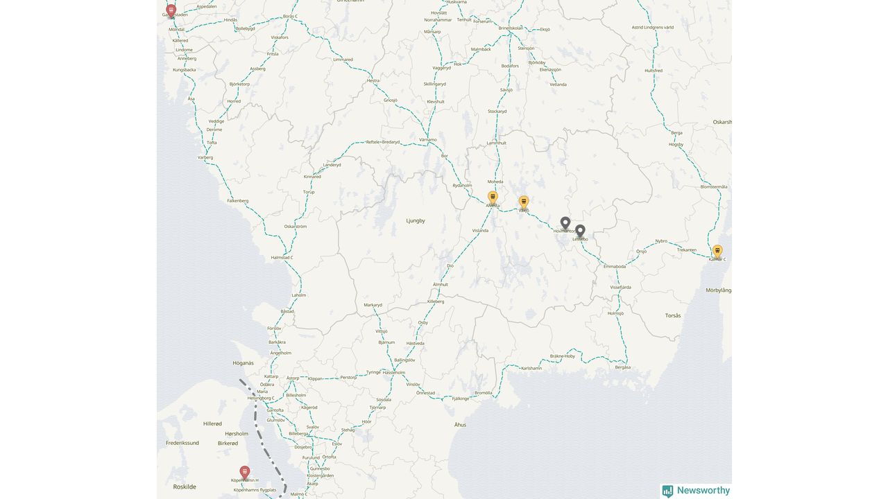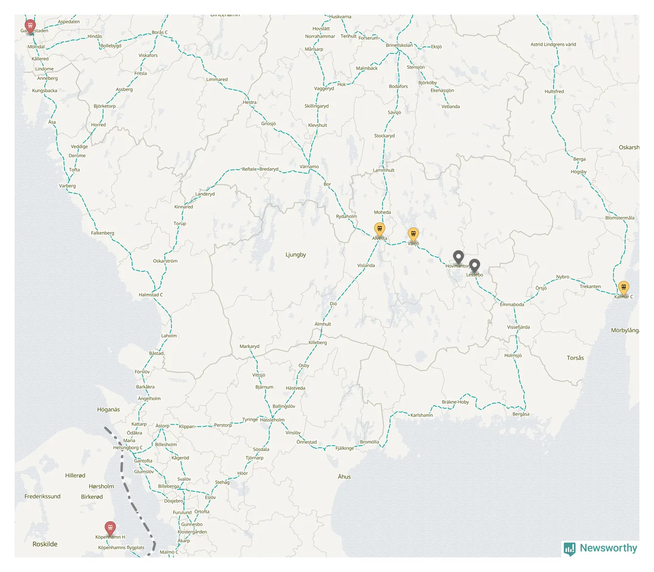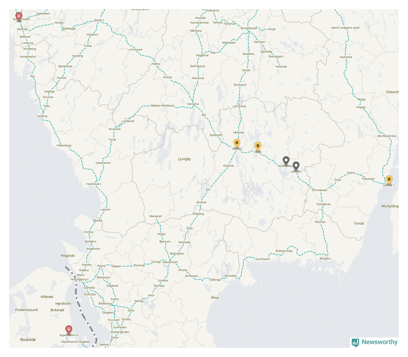 Kartdata från Mapbox, Newsworthy, OpenStreetMap och Trafikverket. Uppgifter om sträckor med passagerartrafik från jarnvag.net.