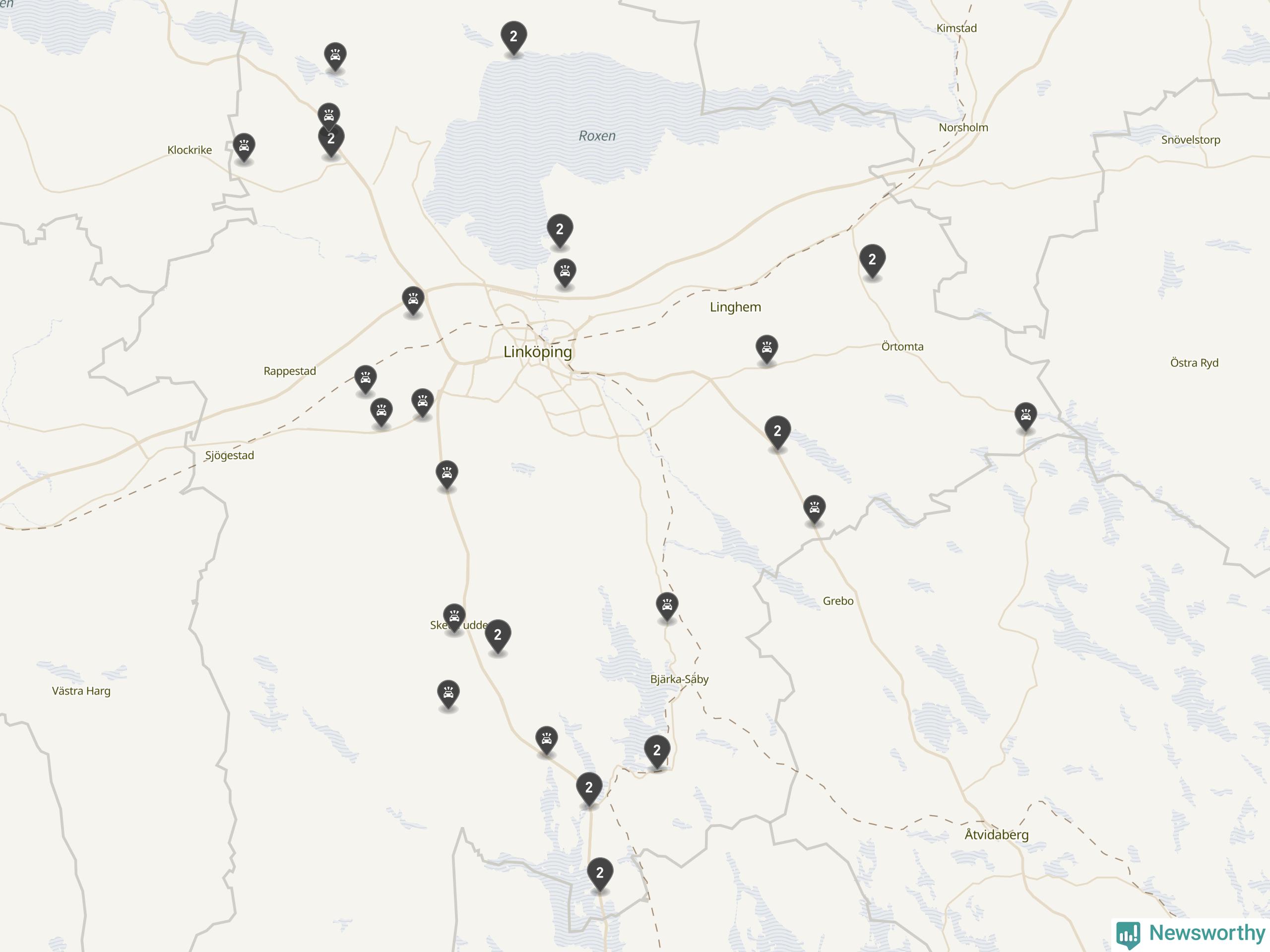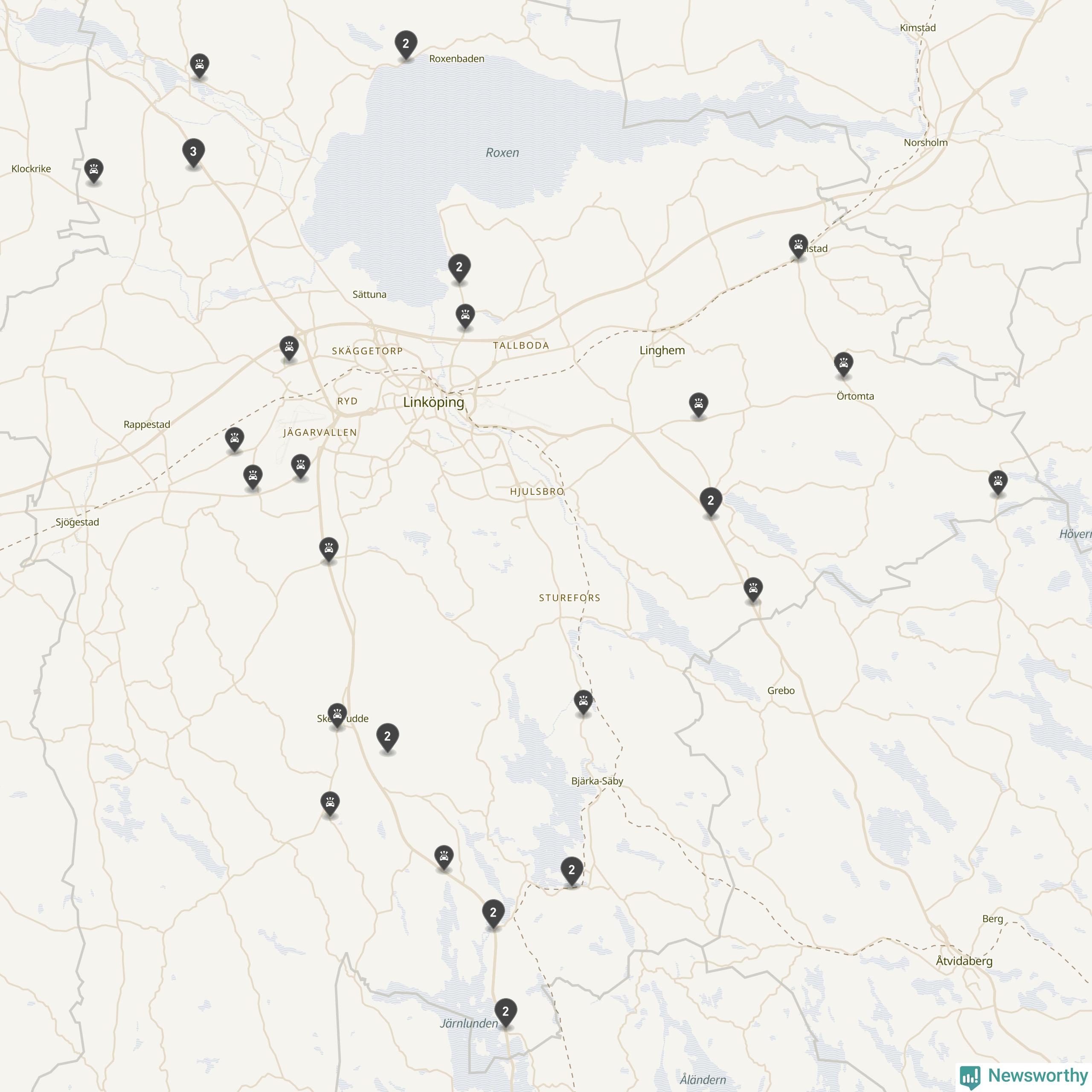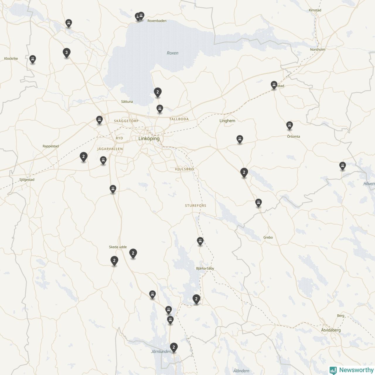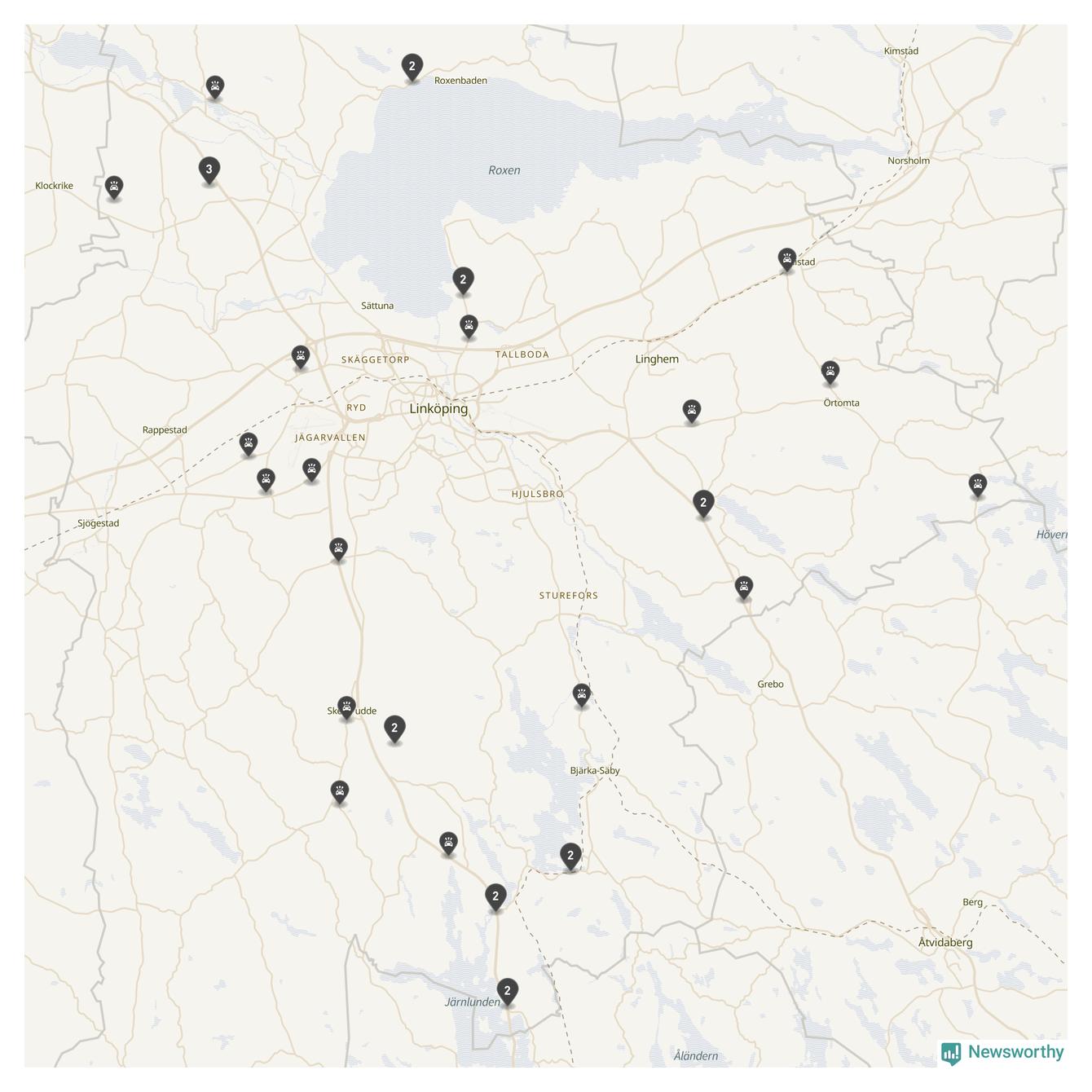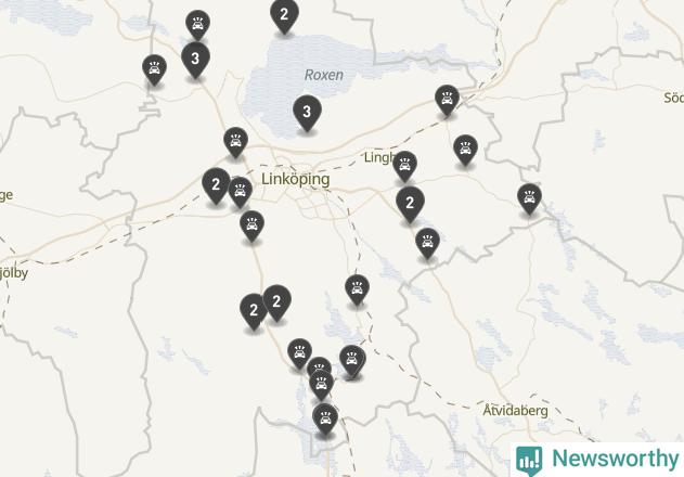 Karta över viltolyckor i Linköpings kommun