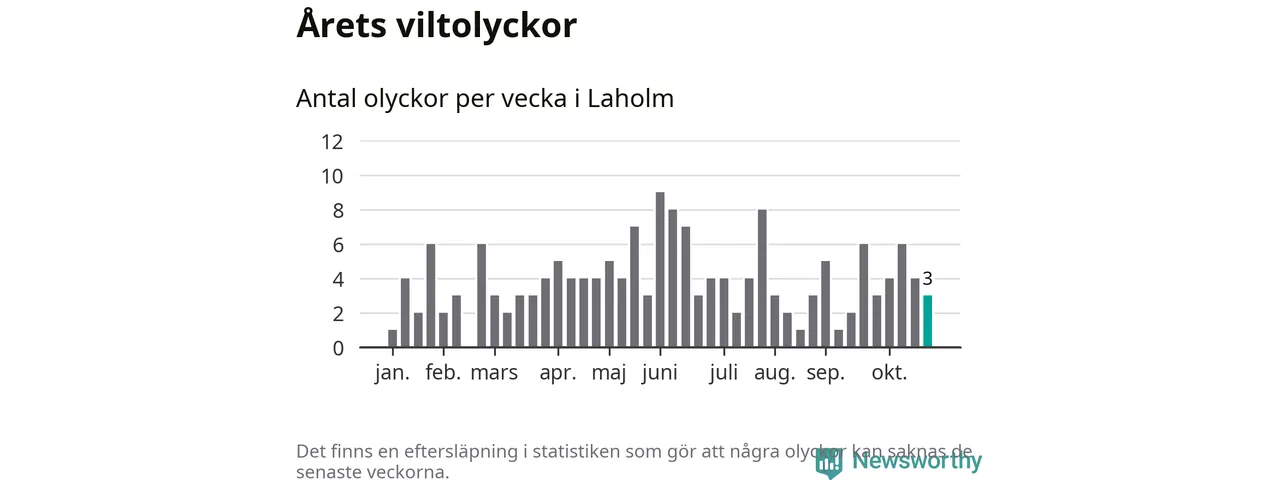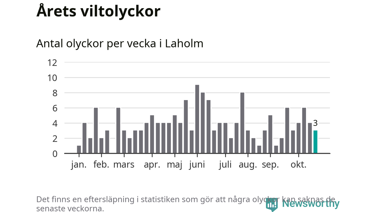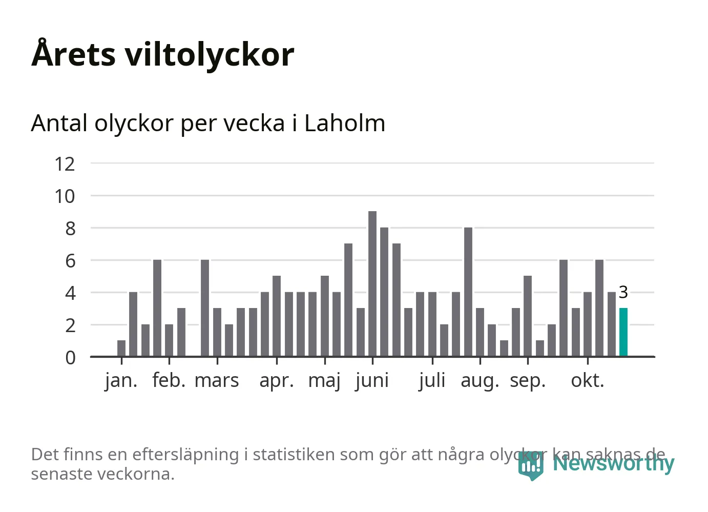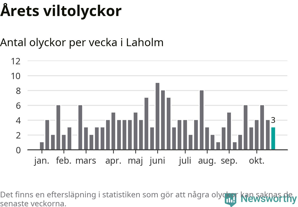 Hittills har tre viltolyckor rapporterats in i Laholms kommun från vecka 44. Se listan här.