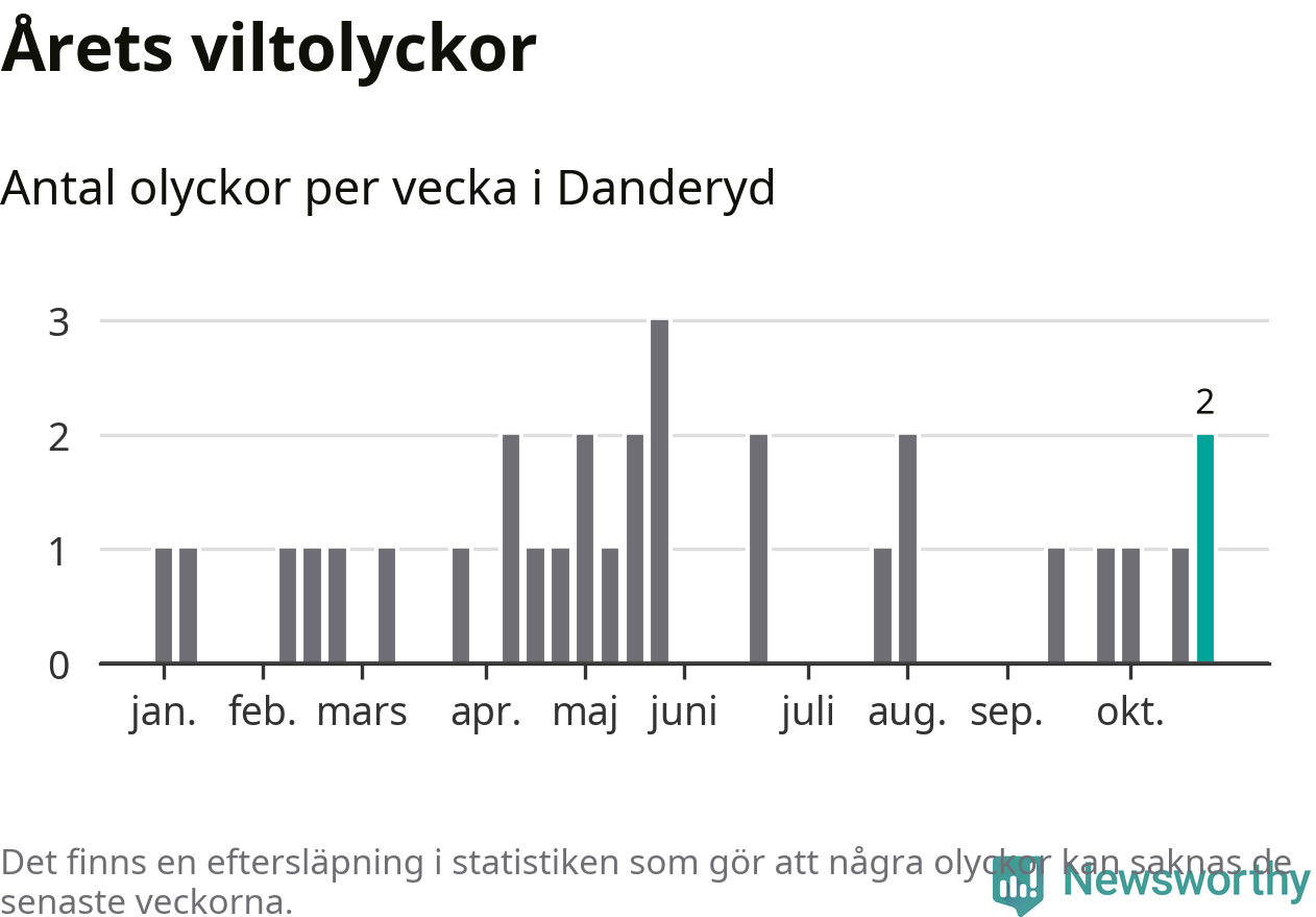 Hittills har två viltolyckor rapporterats in i Danderyds kommun från vecka 44. Se listan här.