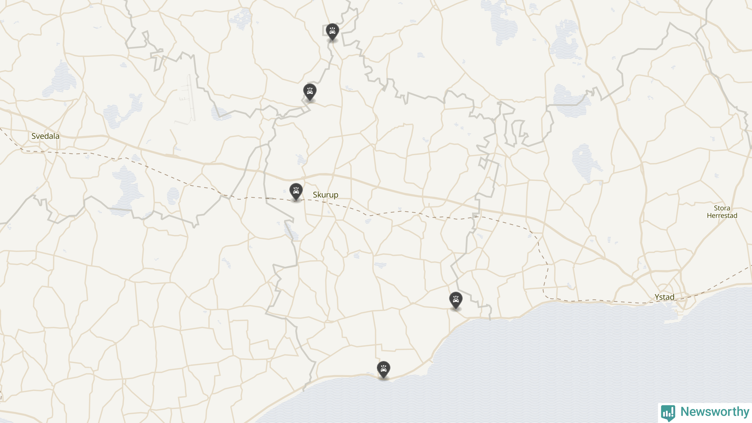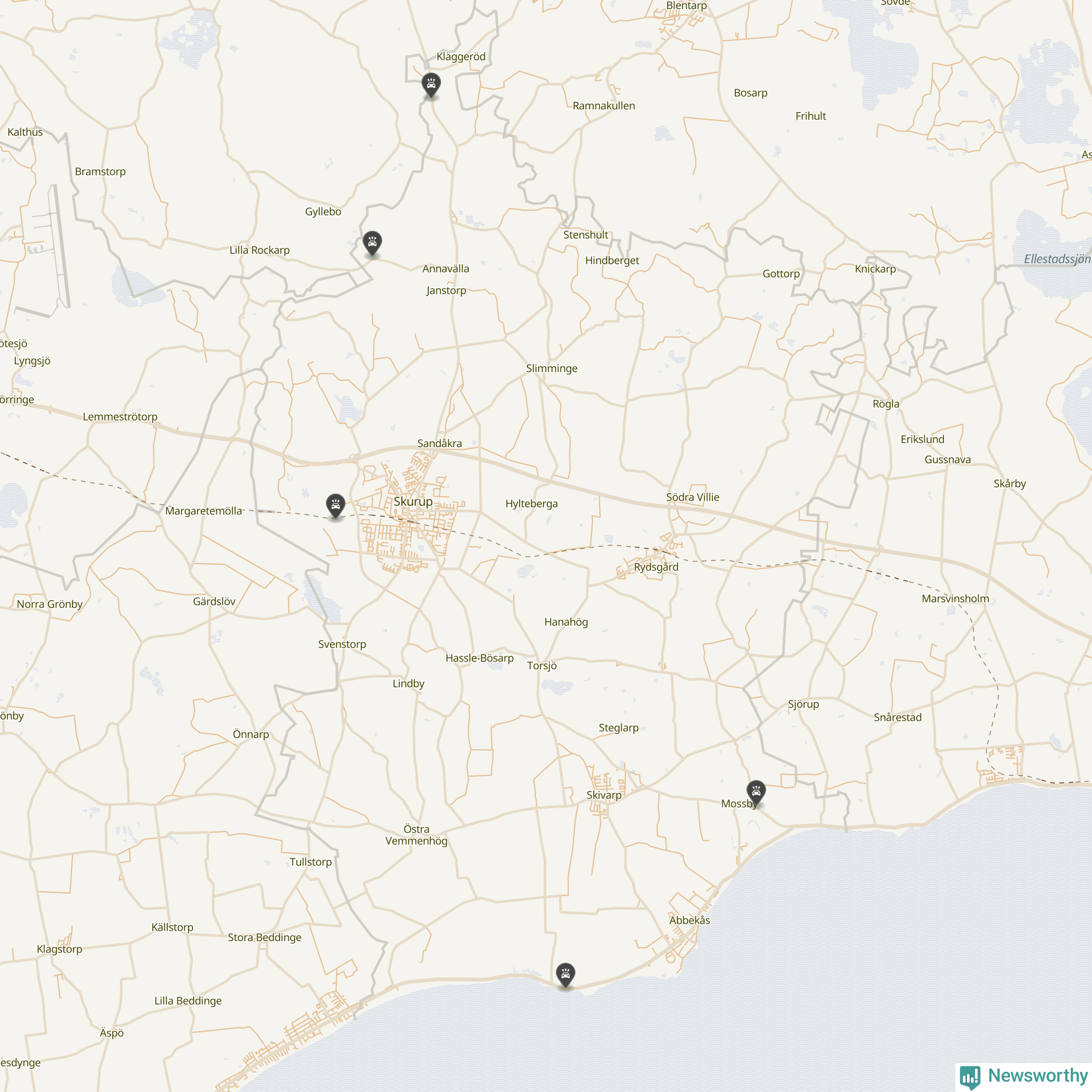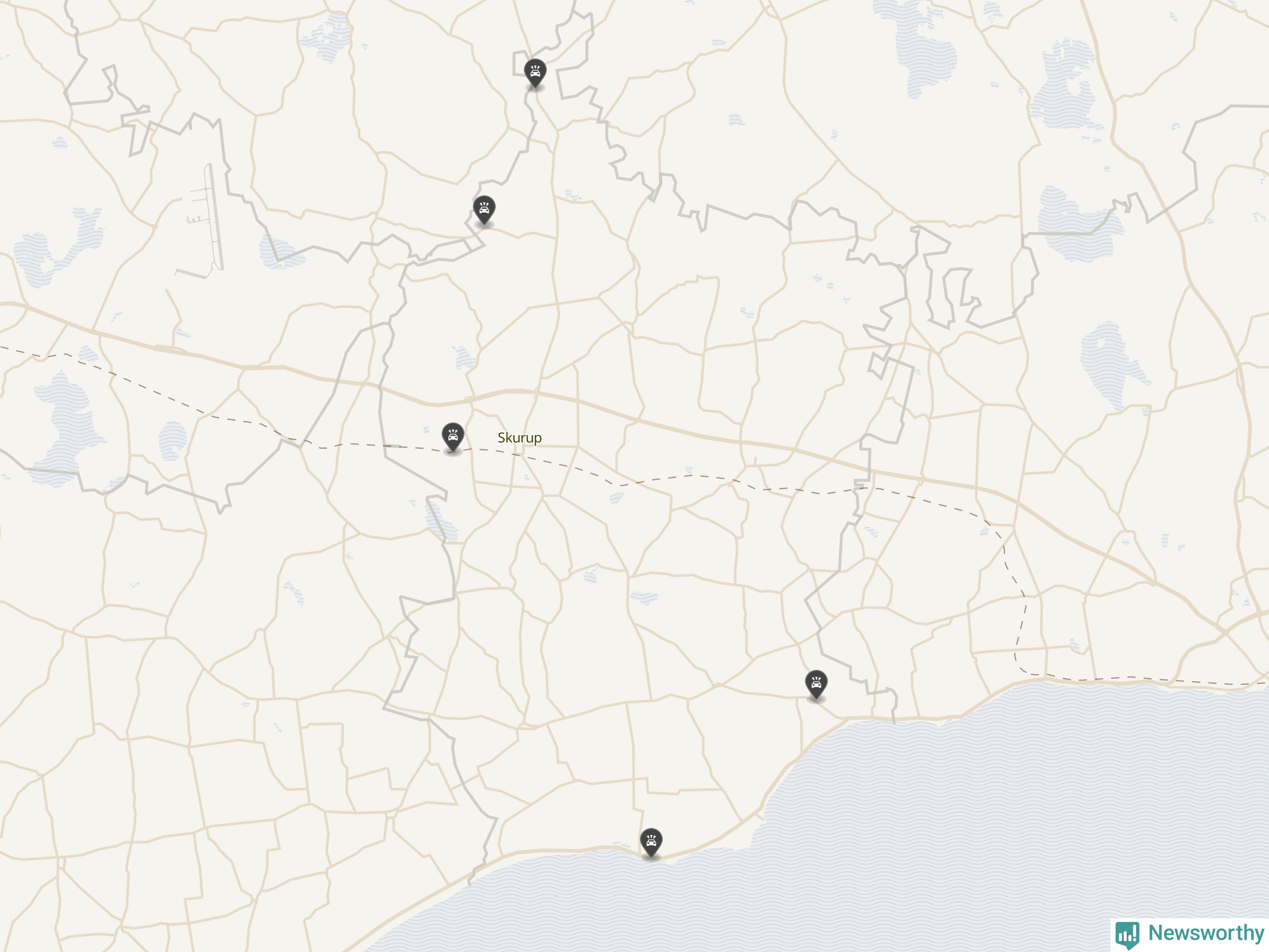 Karta över viltolyckor i Skurups kommun