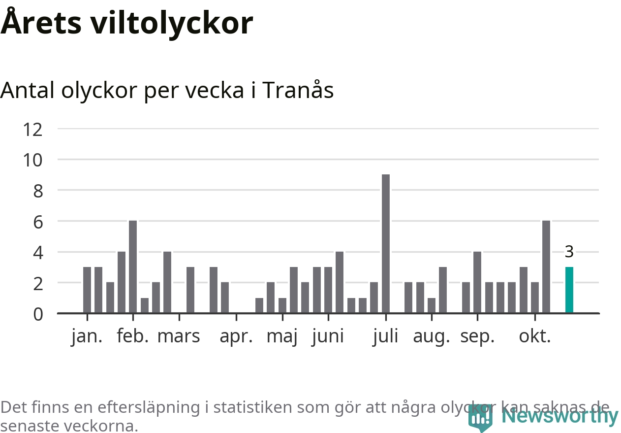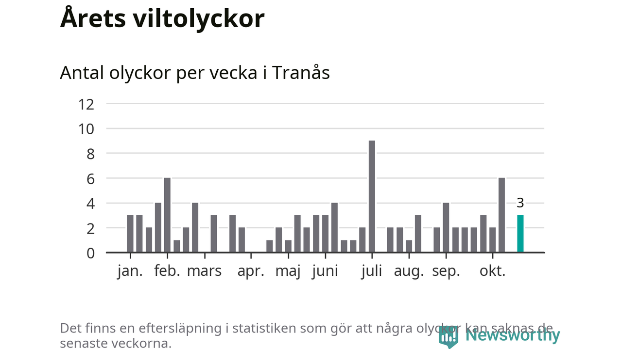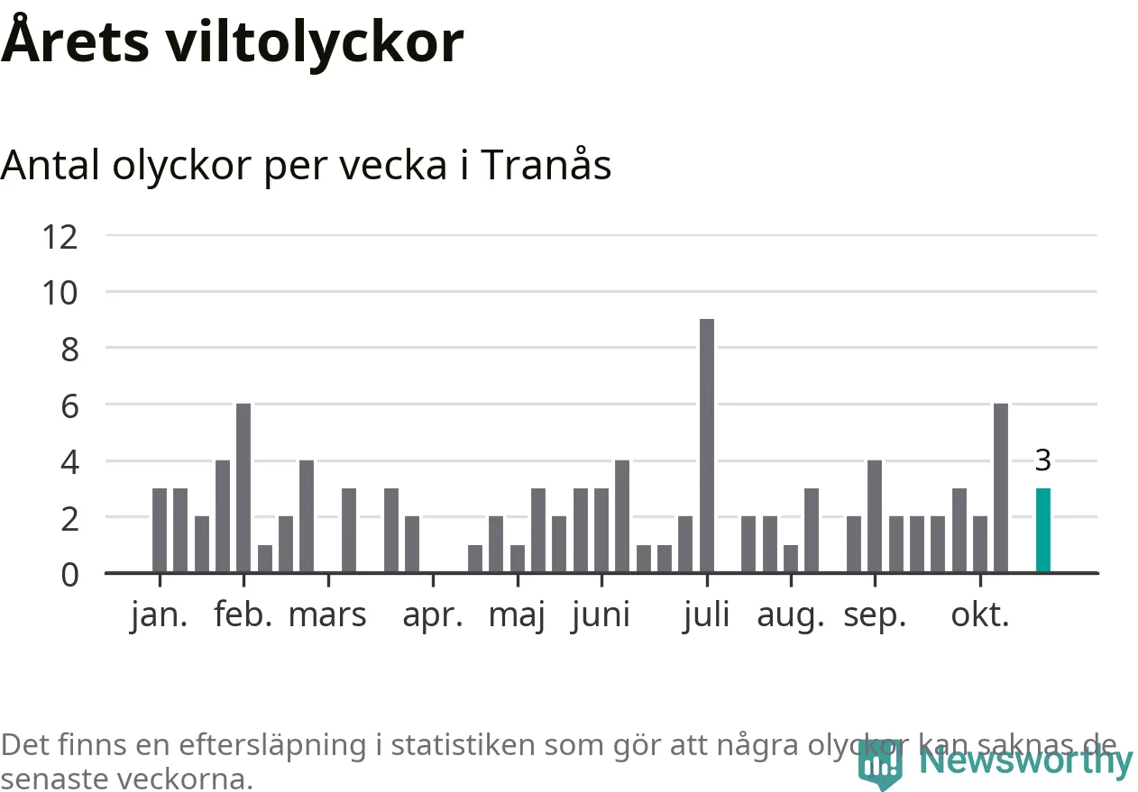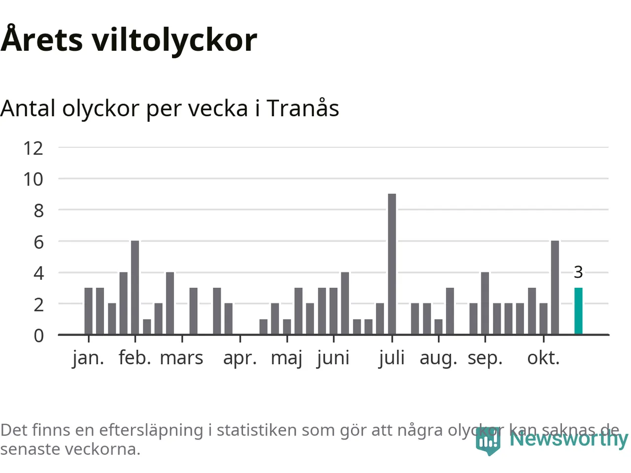 Hittills har tre viltolyckor rapporterats in i Tranås kommun från vecka 44. Se listan här.
