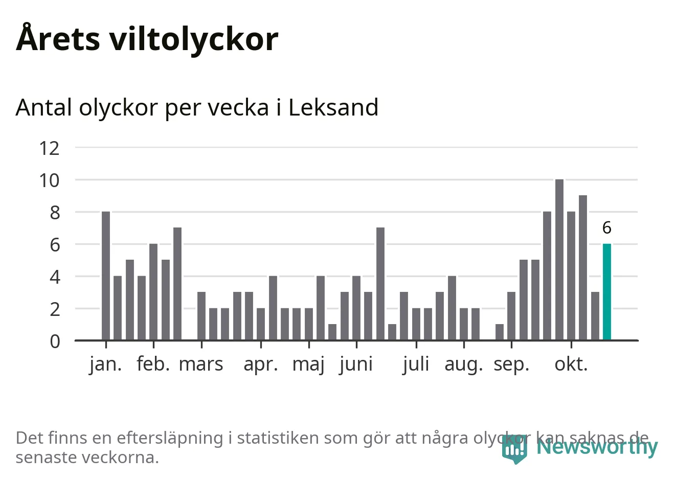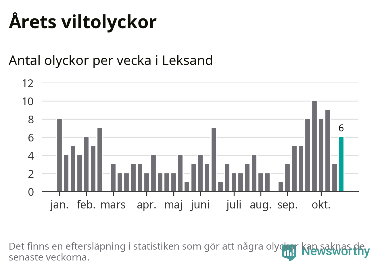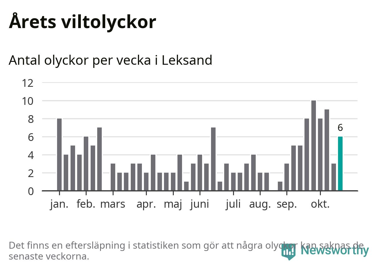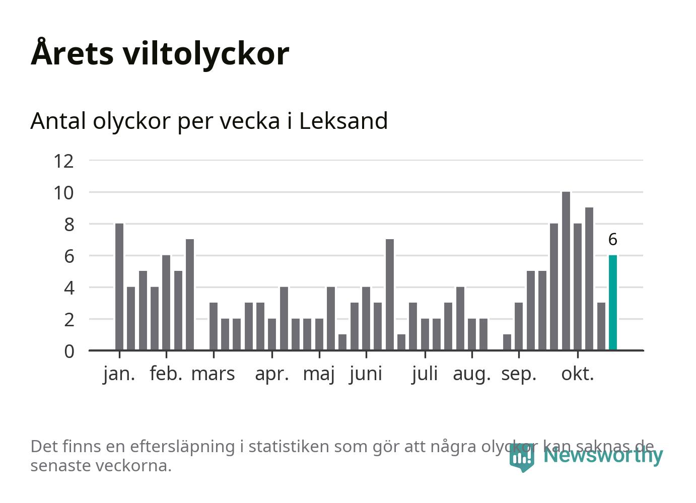 Hittills har sex viltolyckor rapporterats in i Leksands kommun från vecka 44. Se listan här.