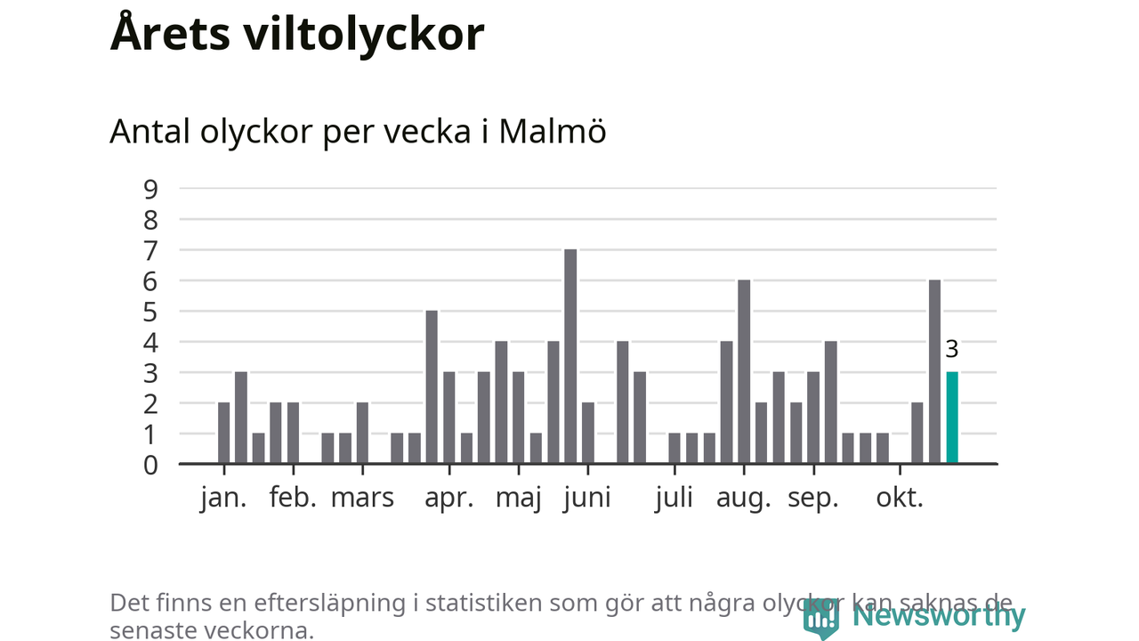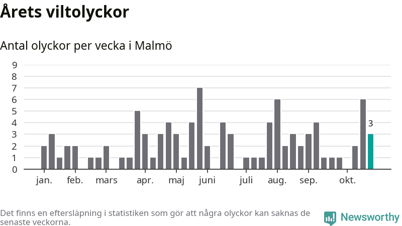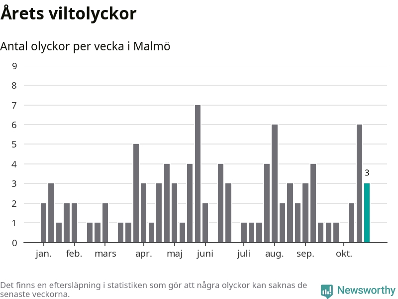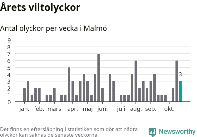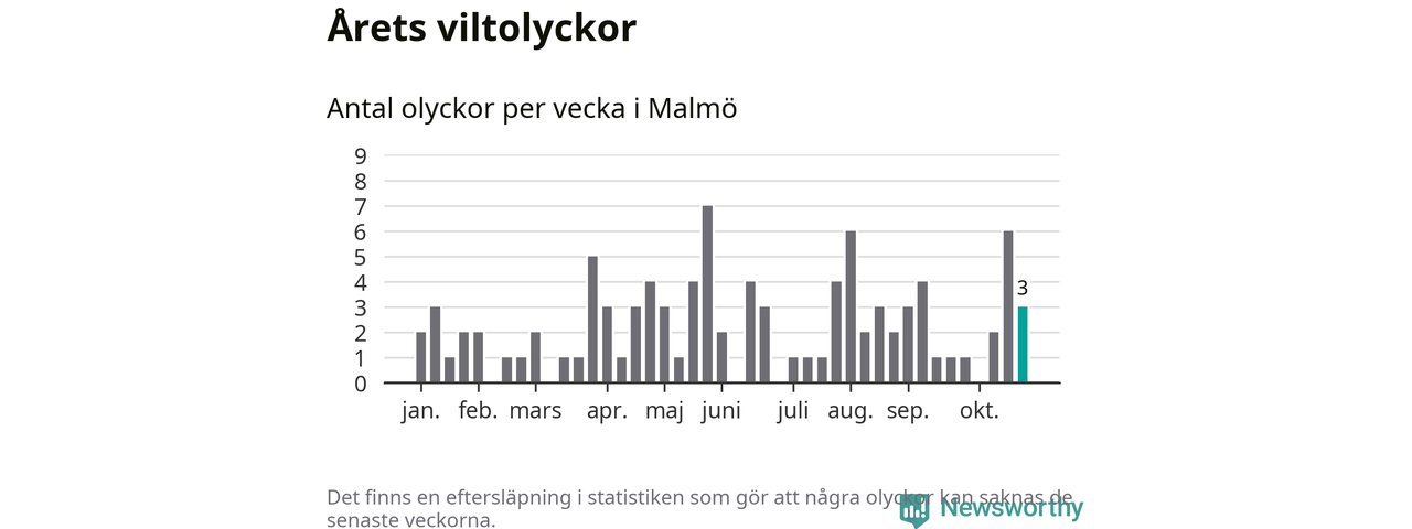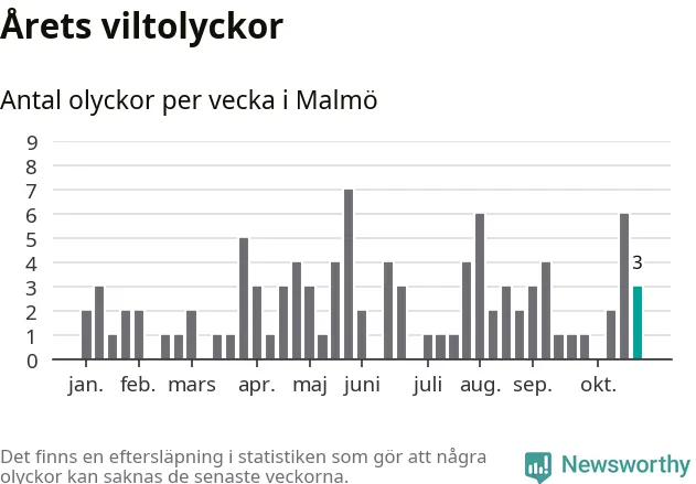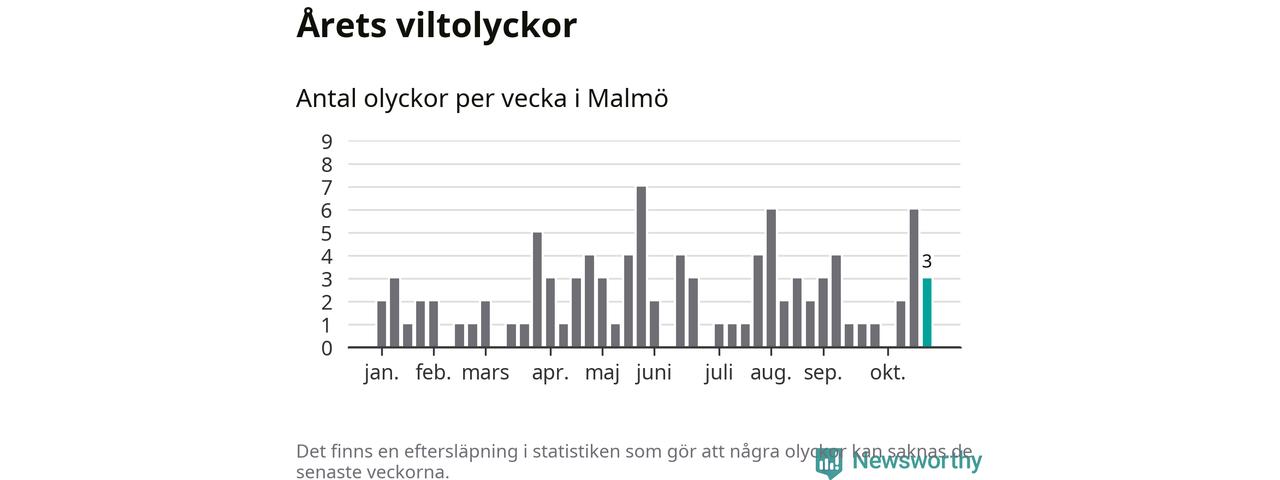 Hittills har tre viltolyckor rapporterats in i Malmö kommun från vecka 44. Se listan här.