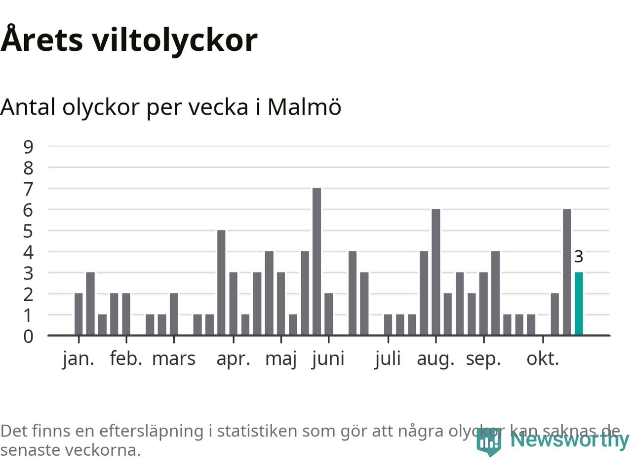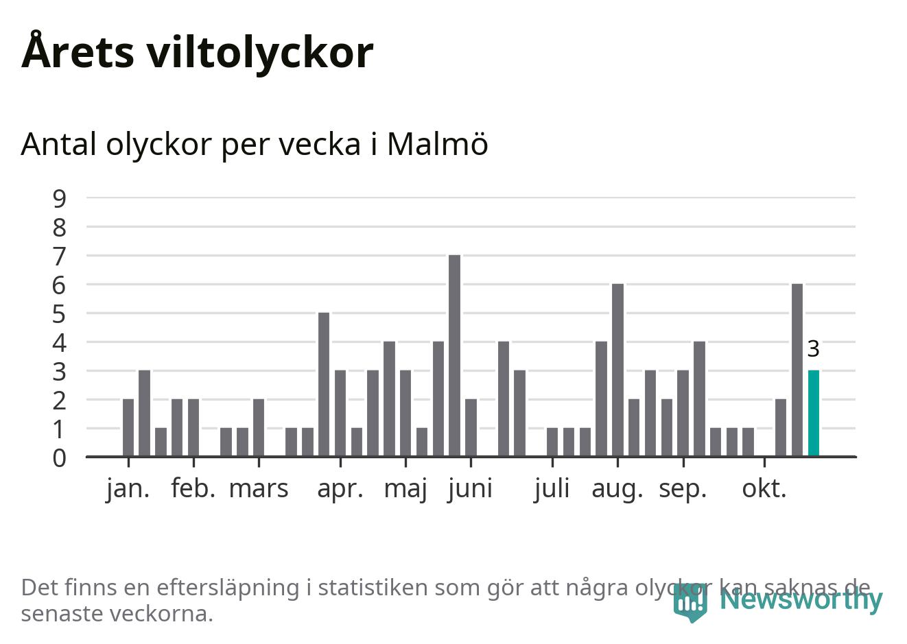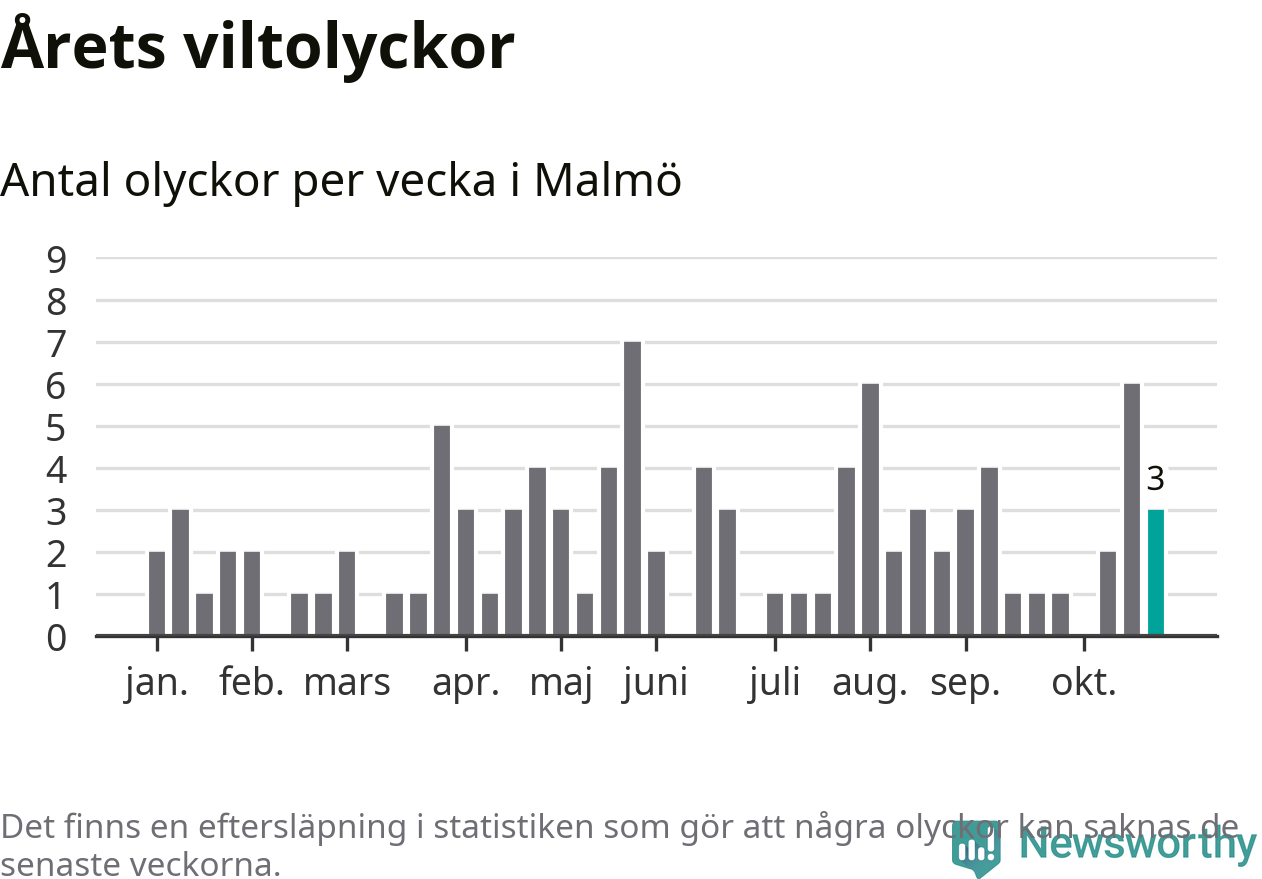Hittills har tre viltolyckor rapporterats in i Malmö kommun från vecka 44. Se listan här.