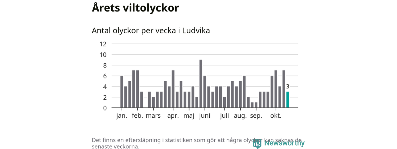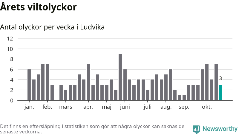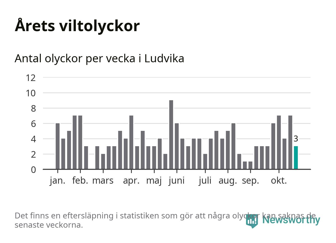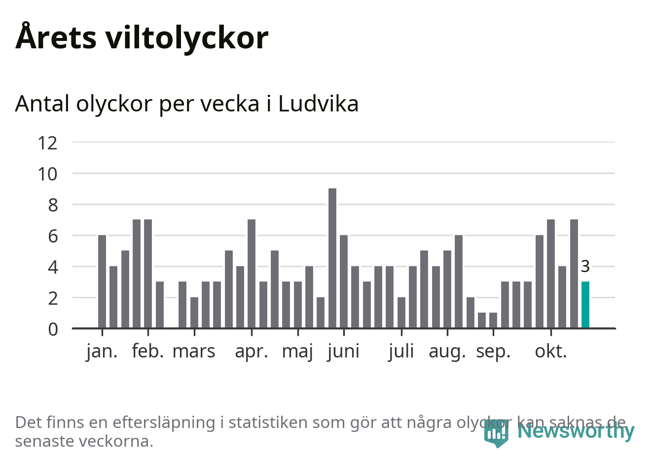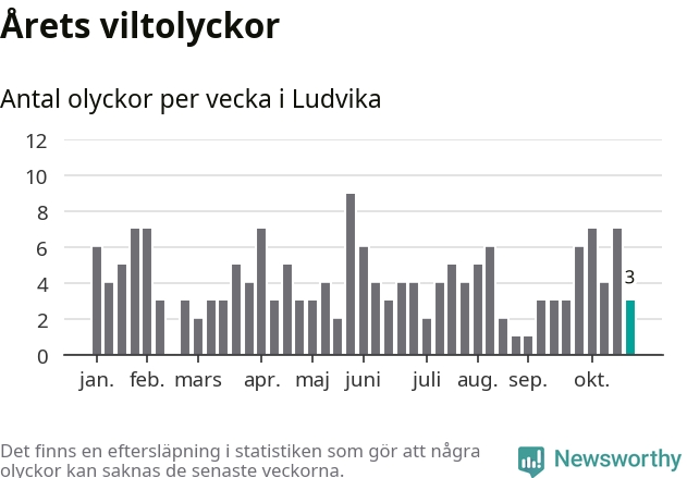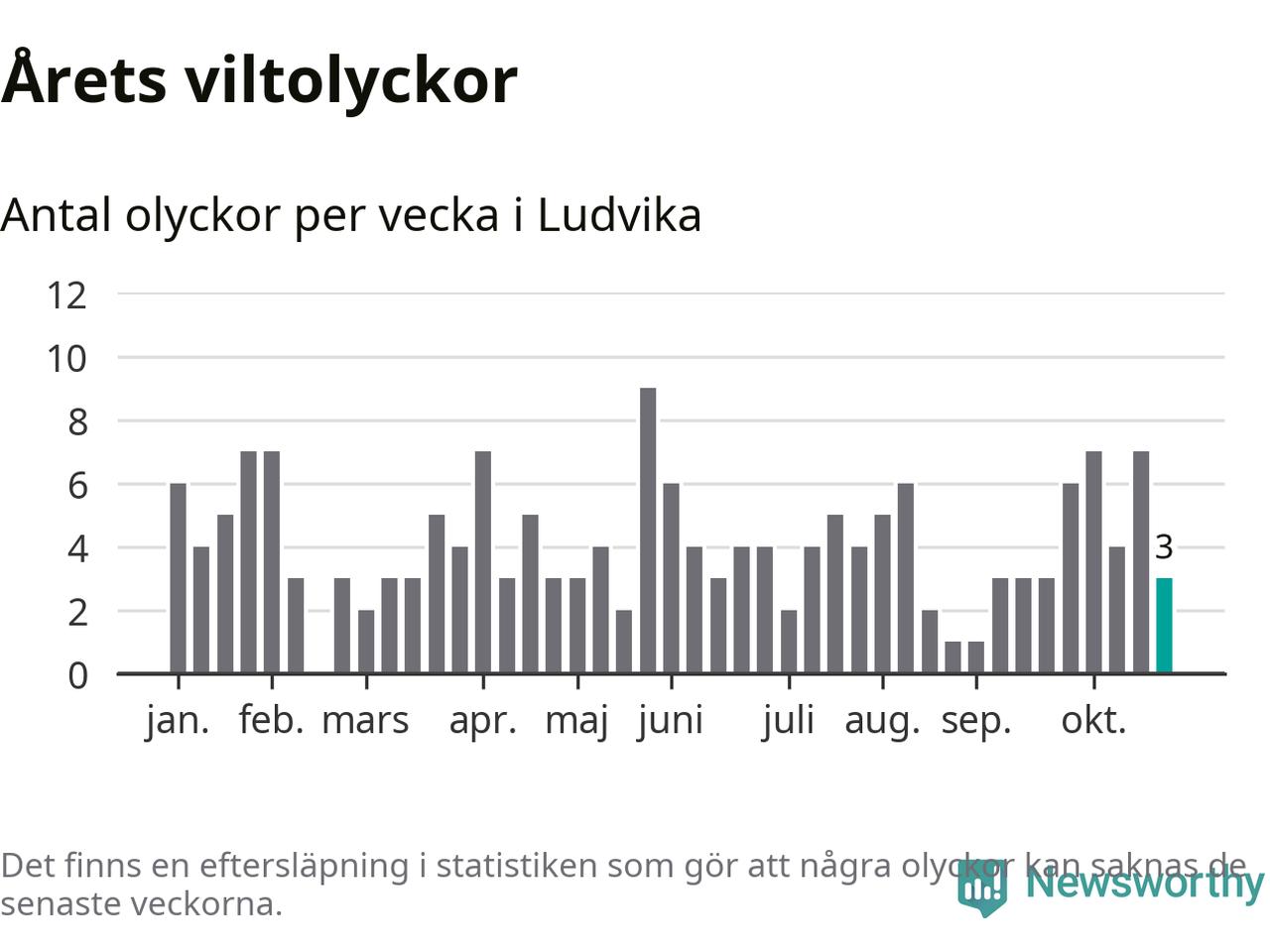 Hittills har tre viltolyckor rapporterats in i Ludvika kommun från vecka 44. Se listan här.