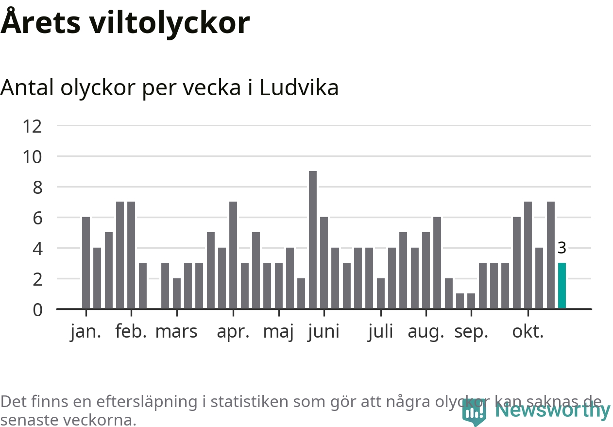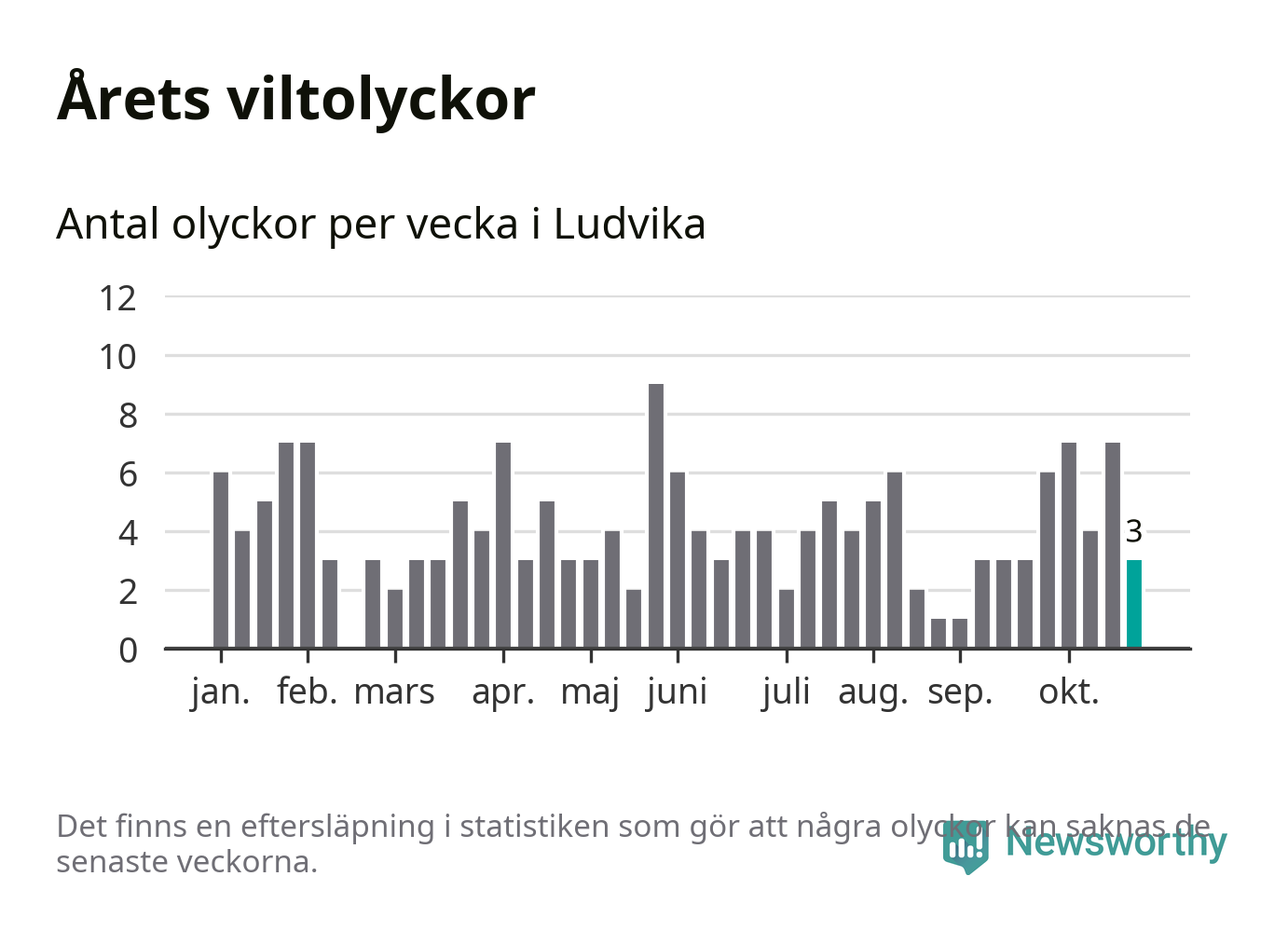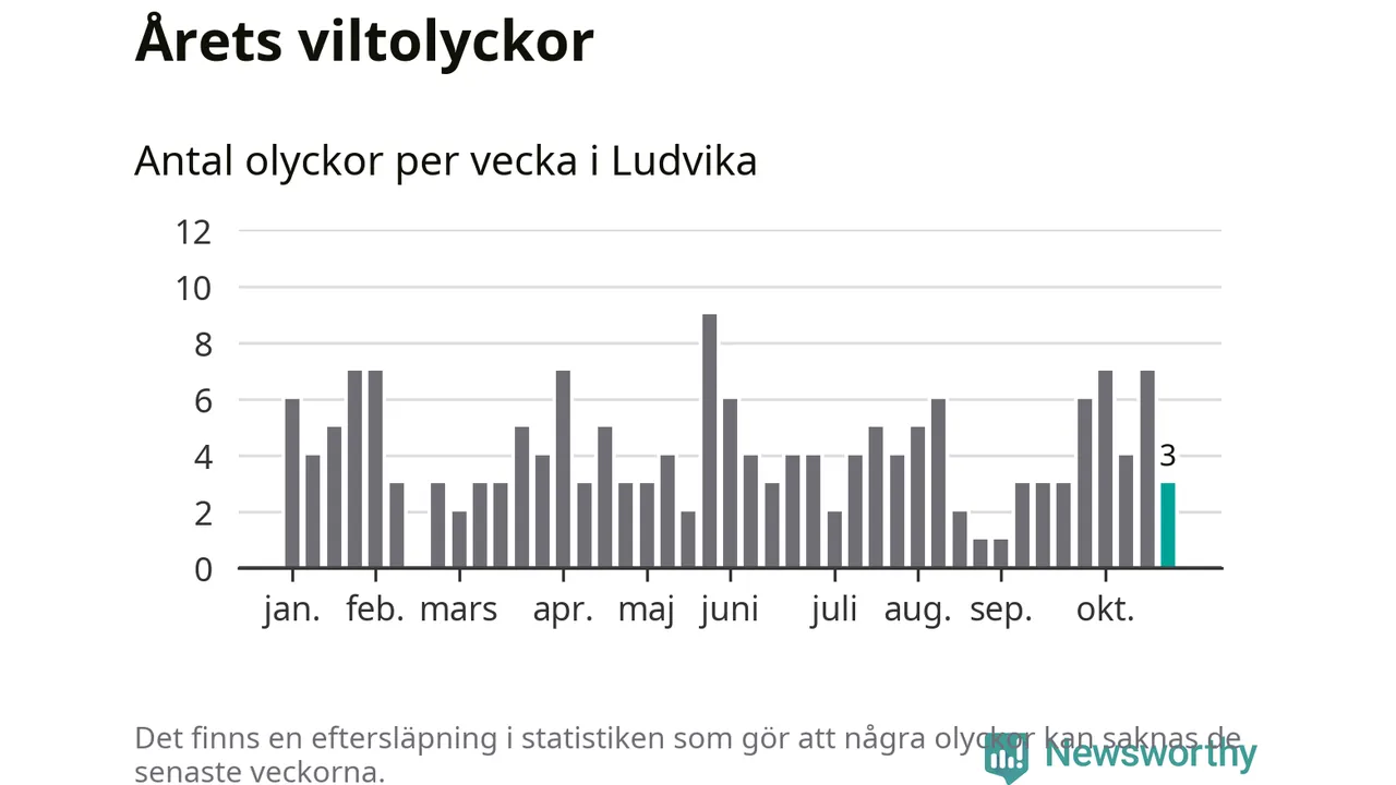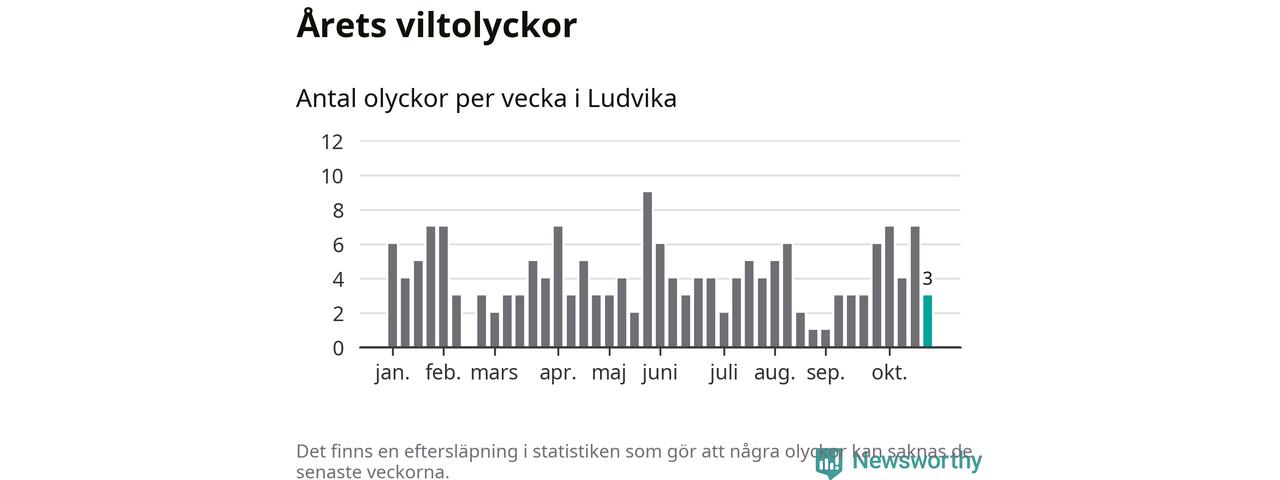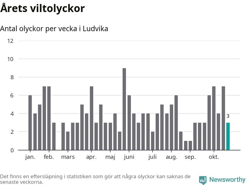 Hittills har tre viltolyckor rapporterats in i Ludvika kommun från vecka 44. Se listan här.