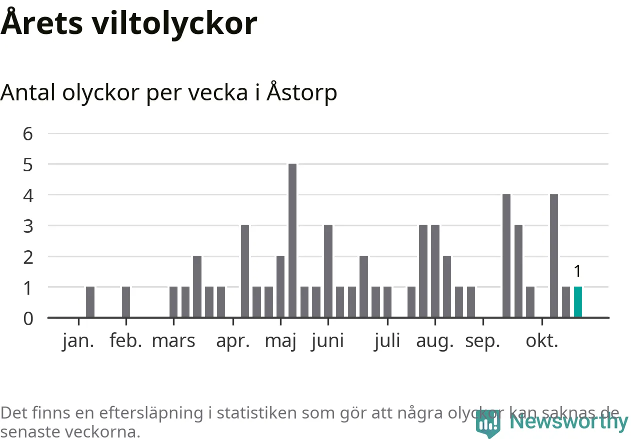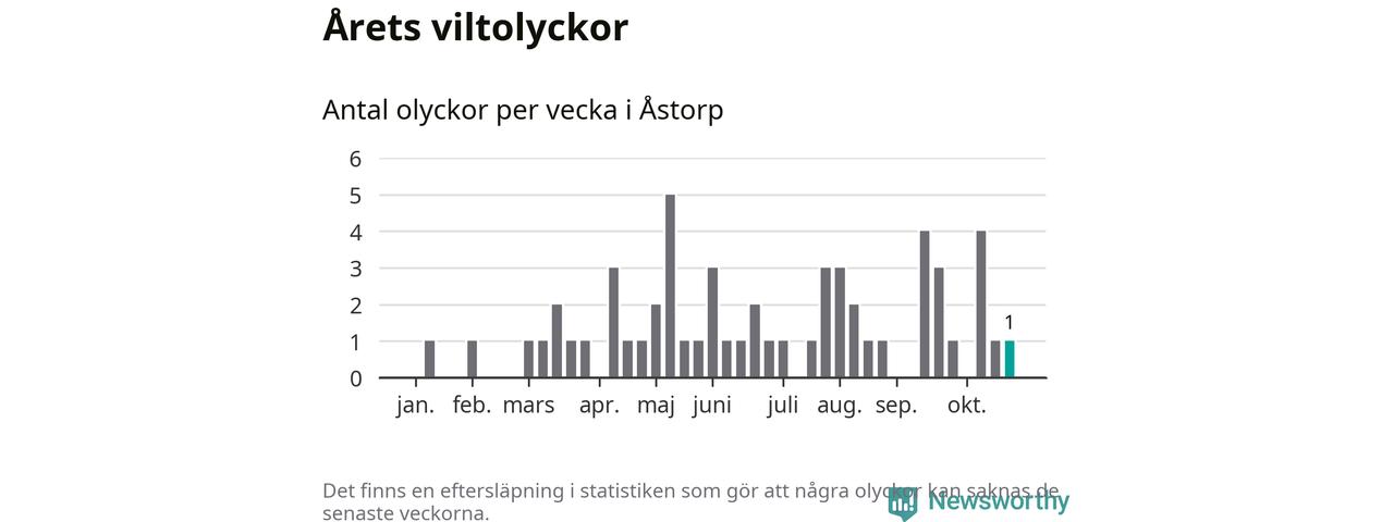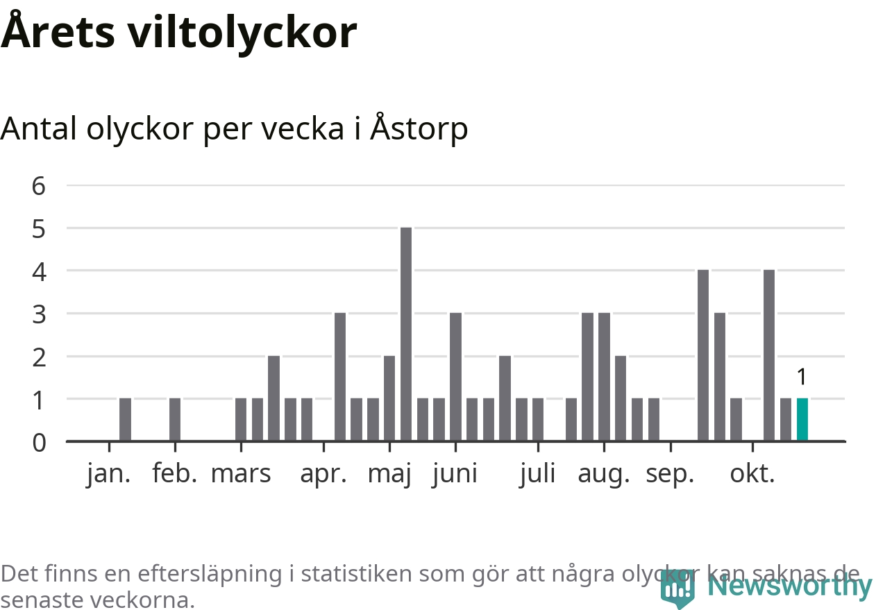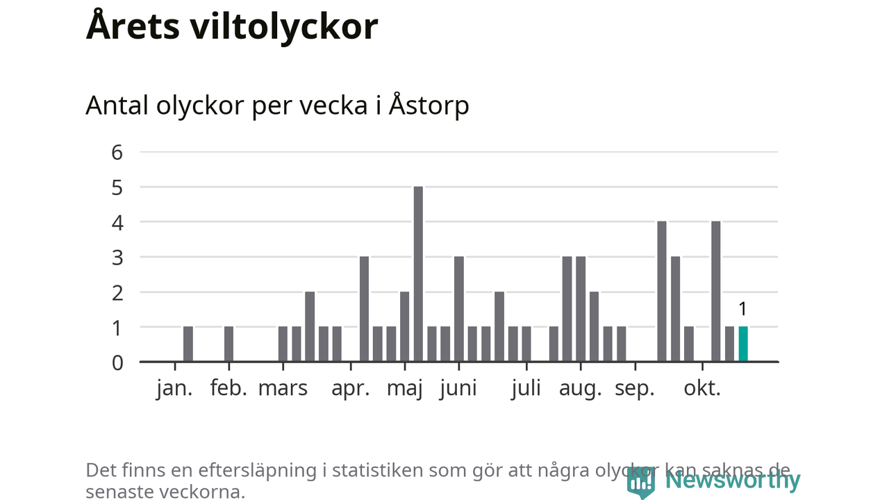 Från förra veckan (vecka 44) har hittills en viltolycka rapporterats in i Åstorps kommun.