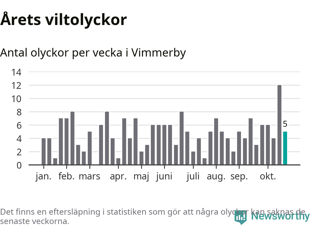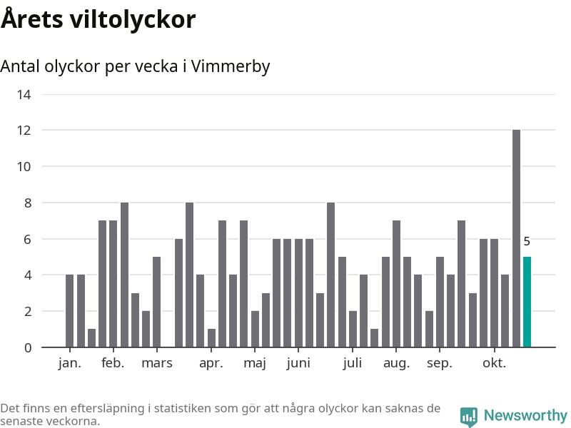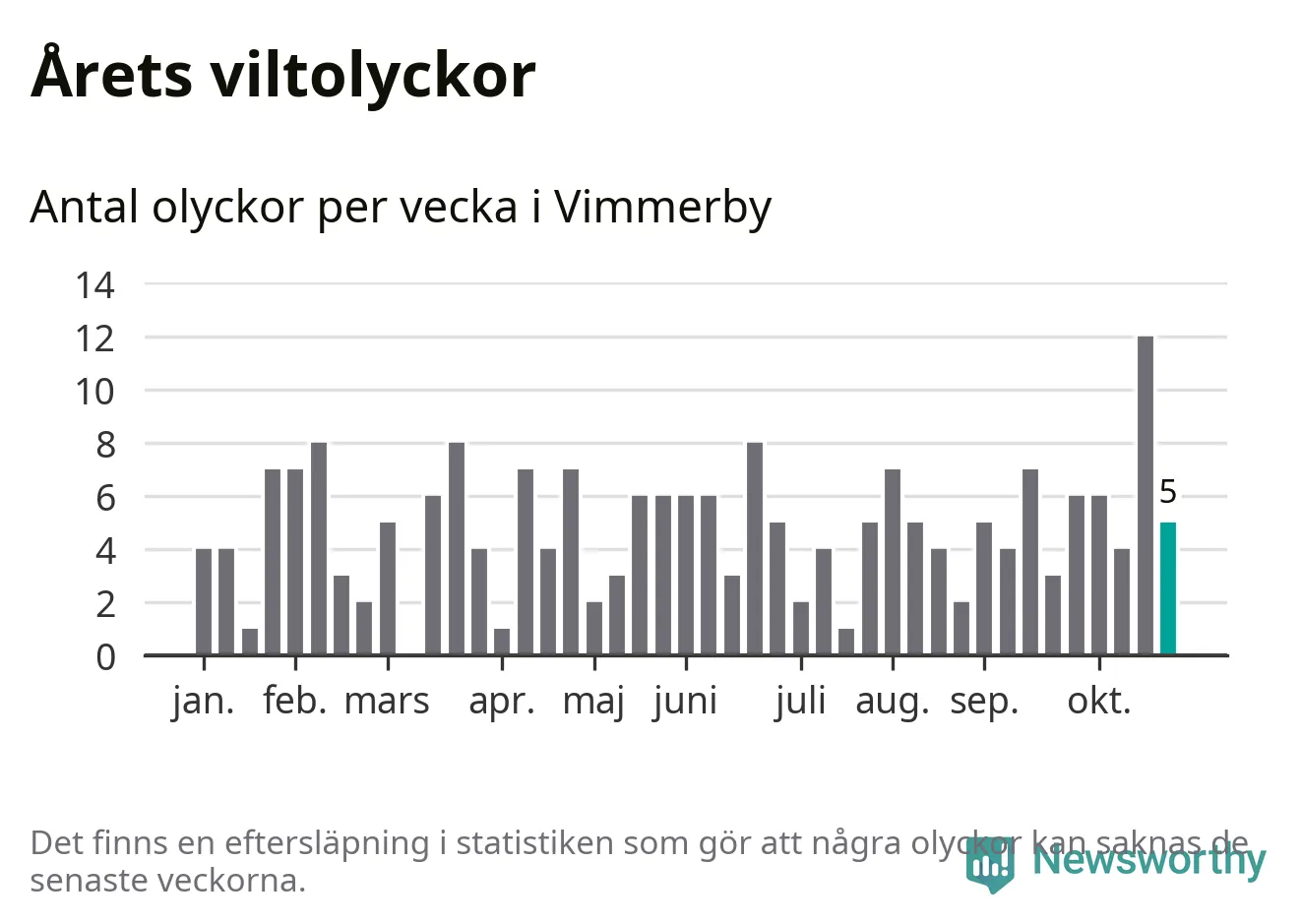 Hittills har fem viltolyckor rapporterats in i Vimmerby kommun från vecka 44. Se listan här.