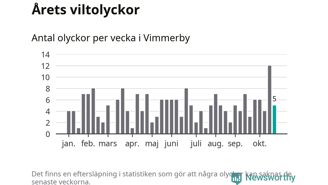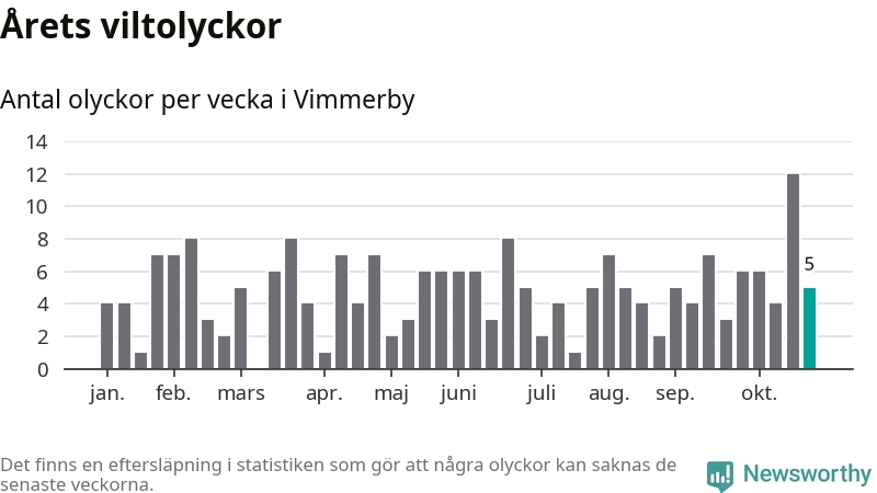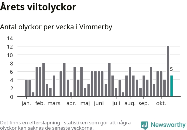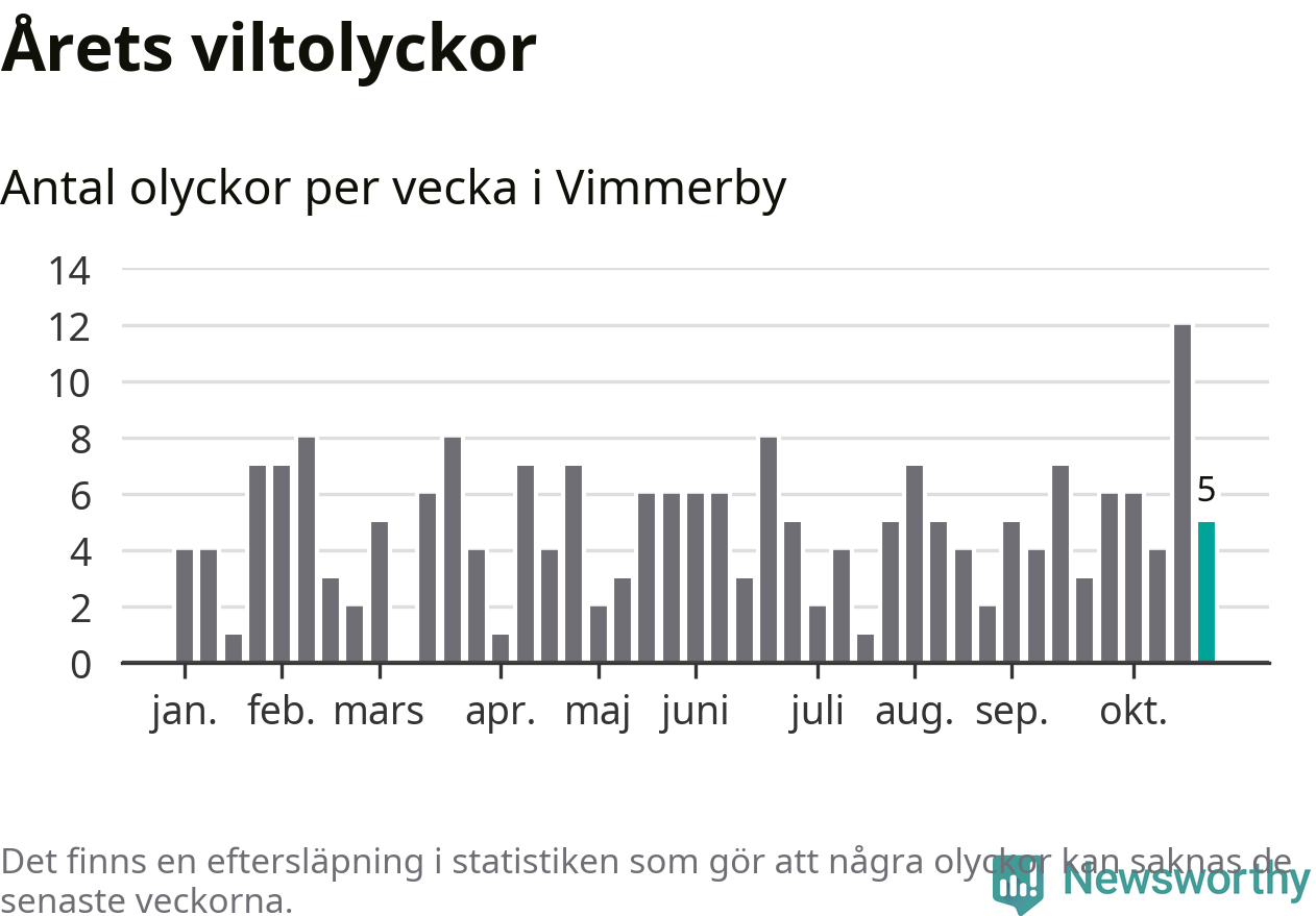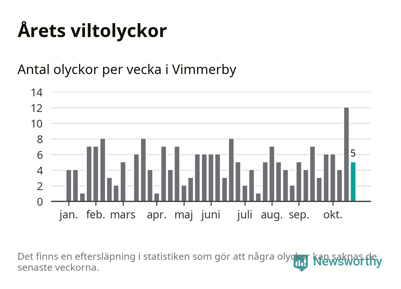 Hittills har fem viltolyckor rapporterats in i Vimmerby kommun från vecka 44. Se listan här.