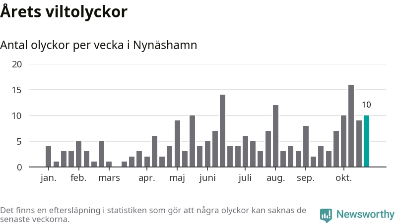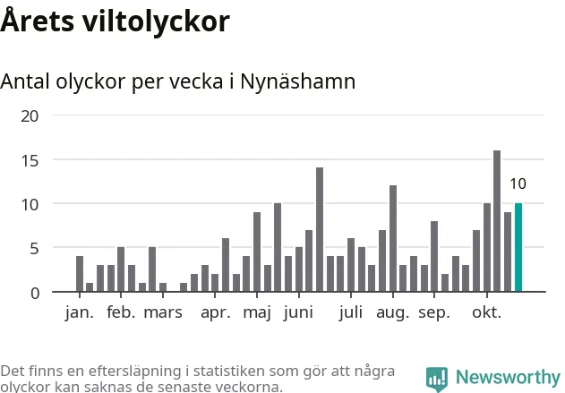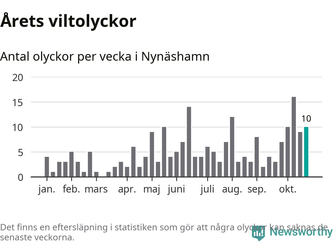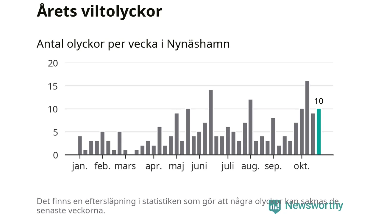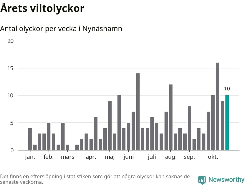 Tio viltolyckor i Nynäshamn förra veckan – här inträffade de