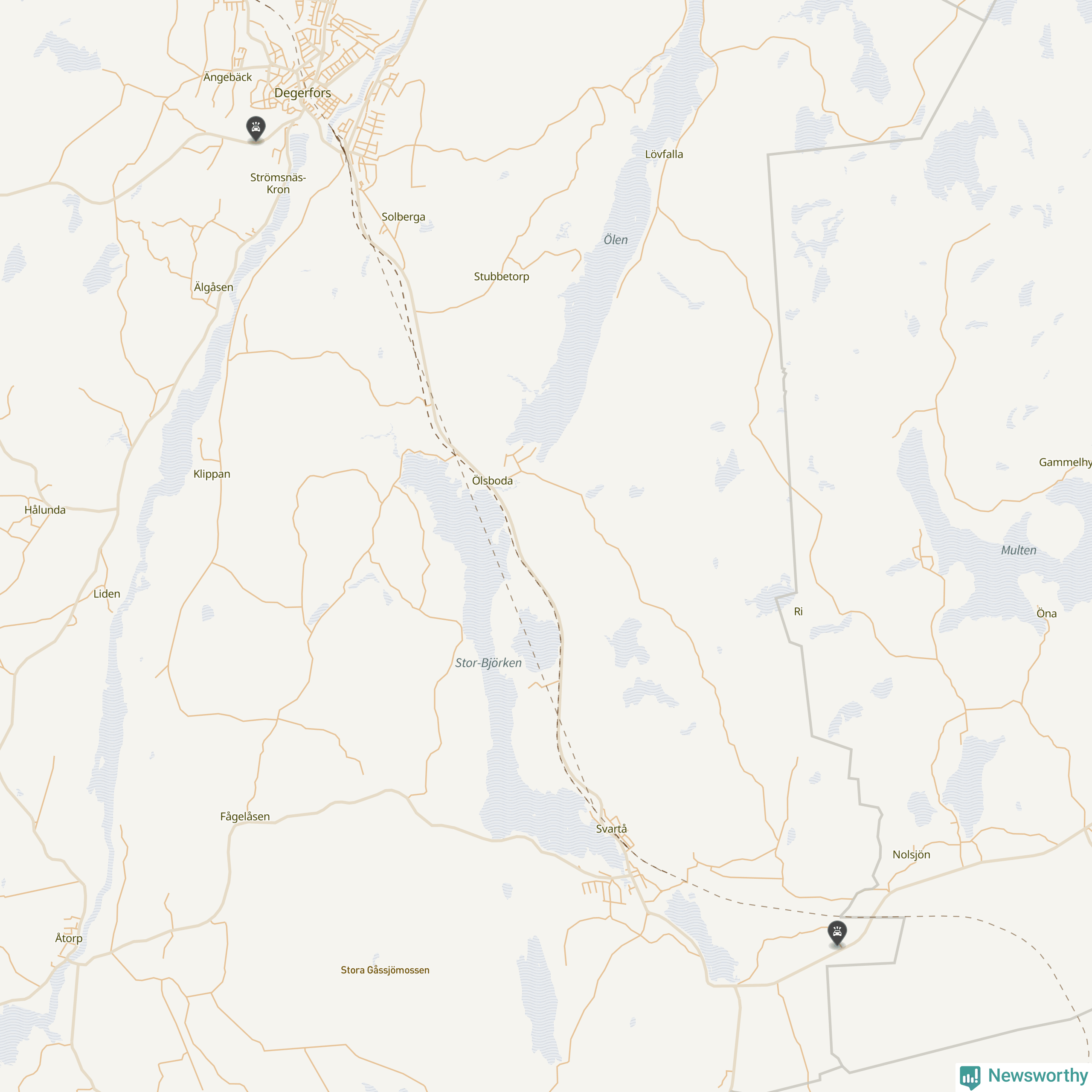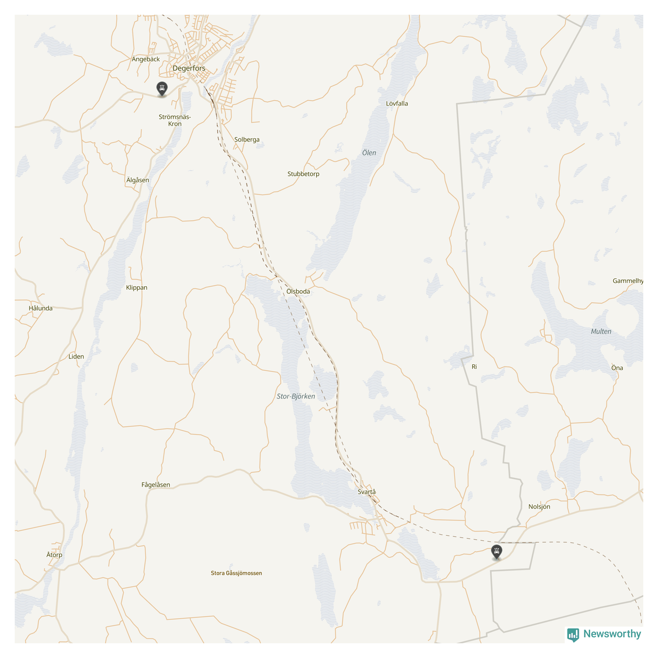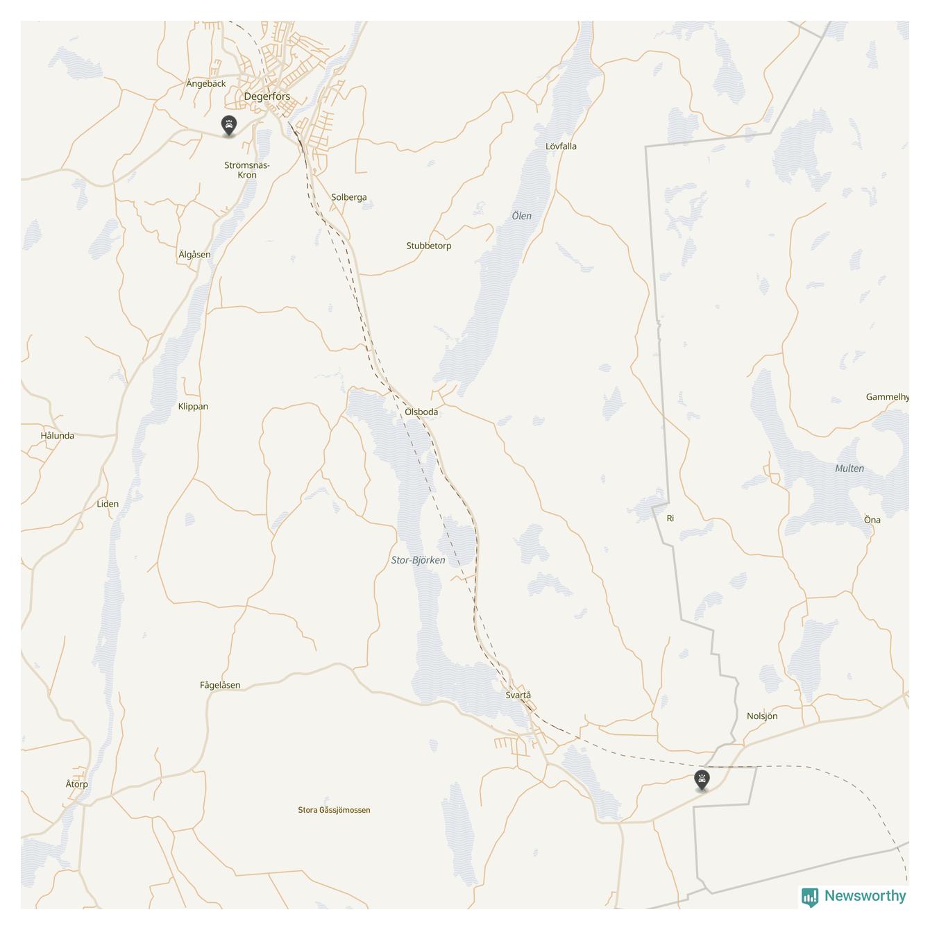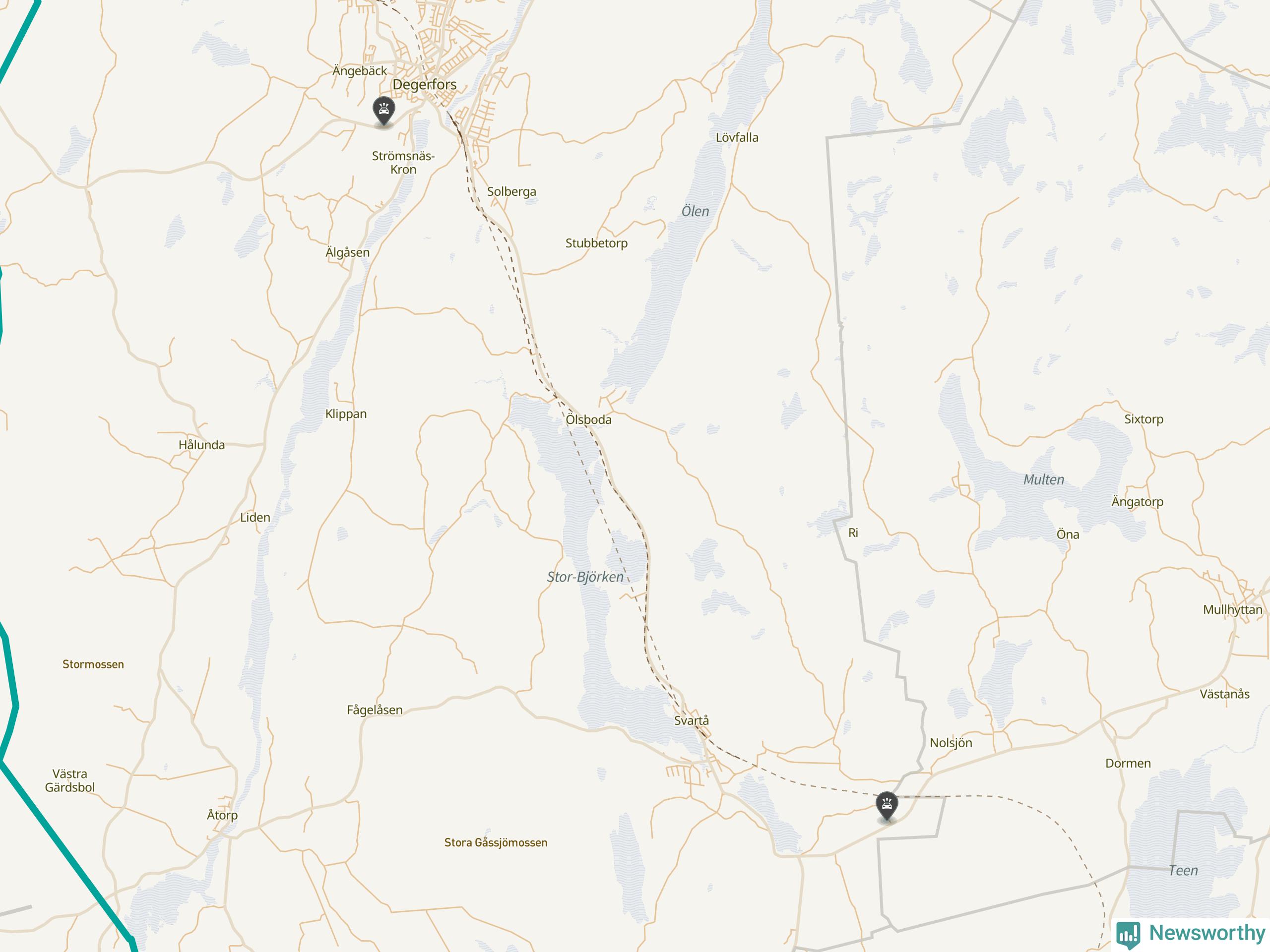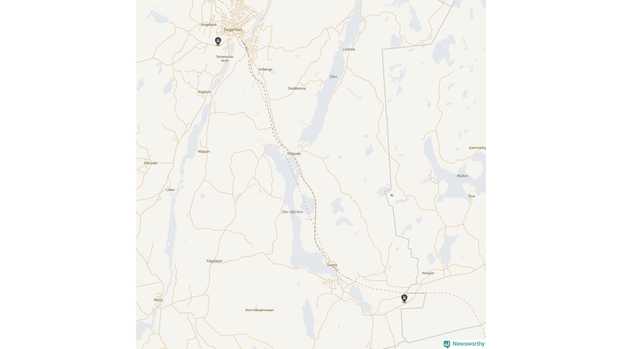 Karta: Förra veckans viltolyckor i Degerfors
