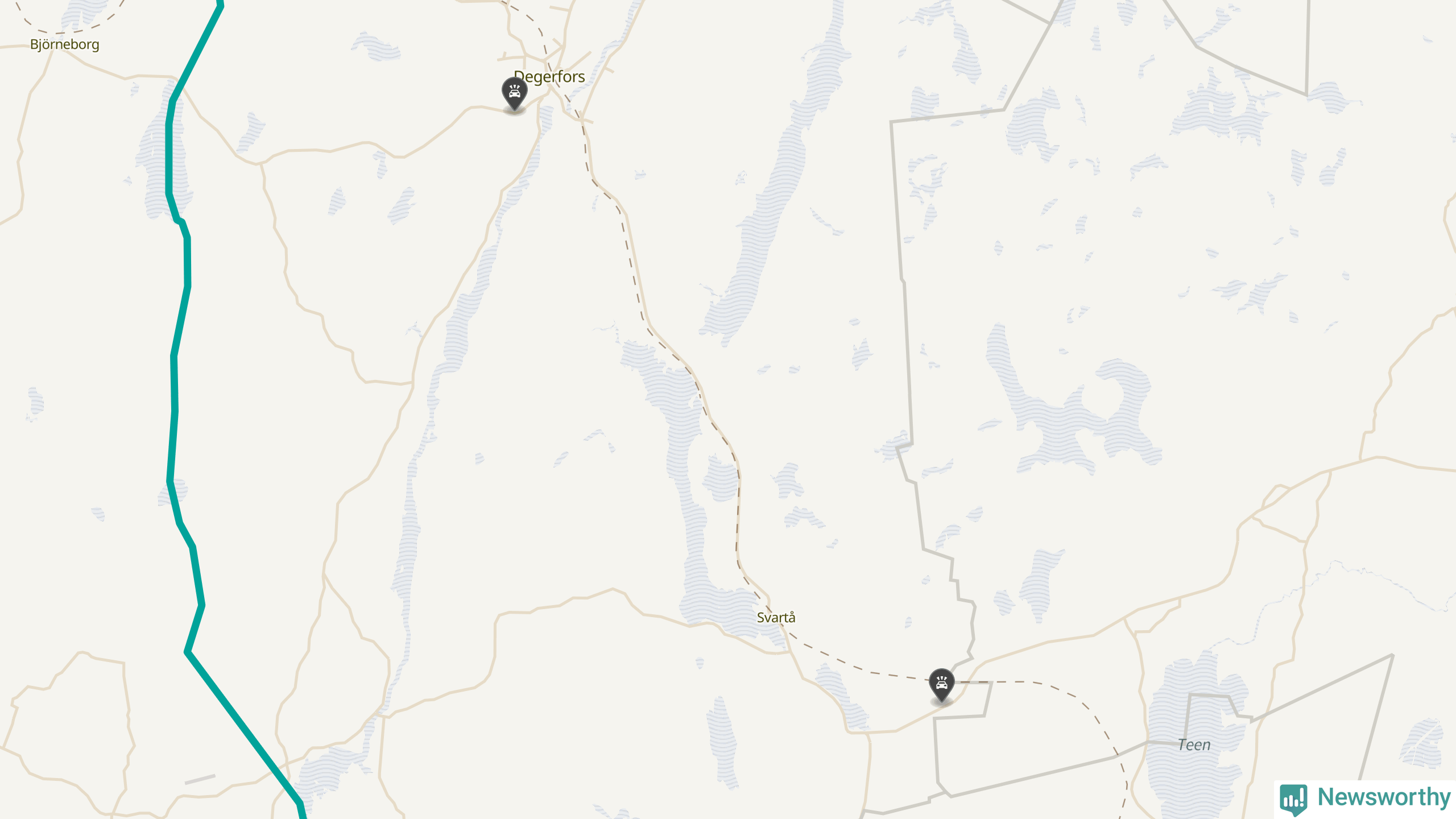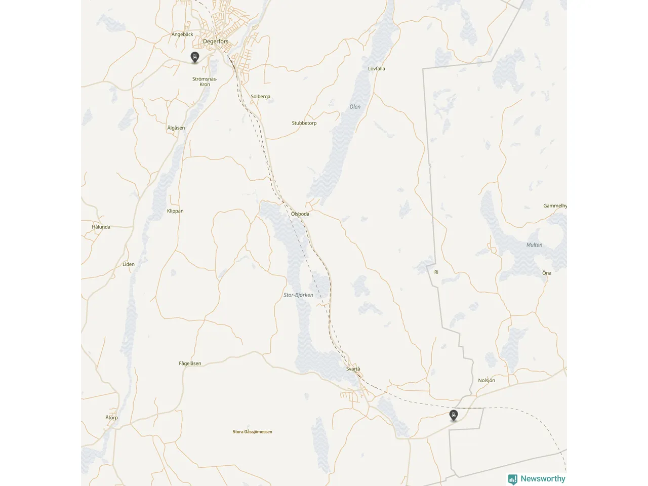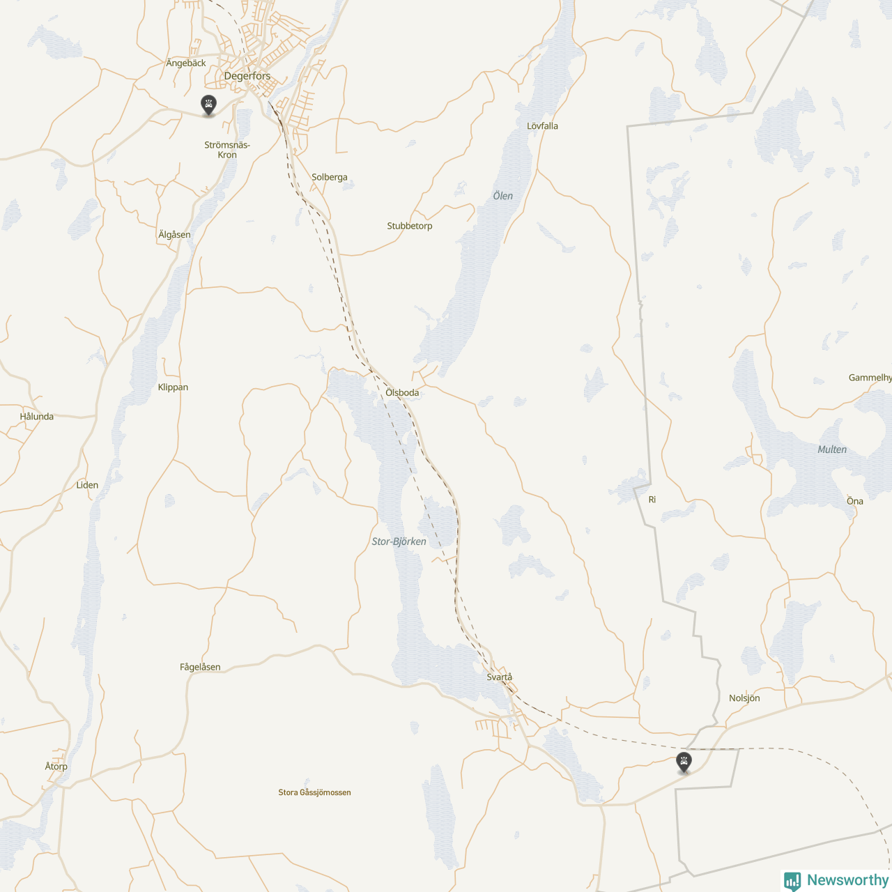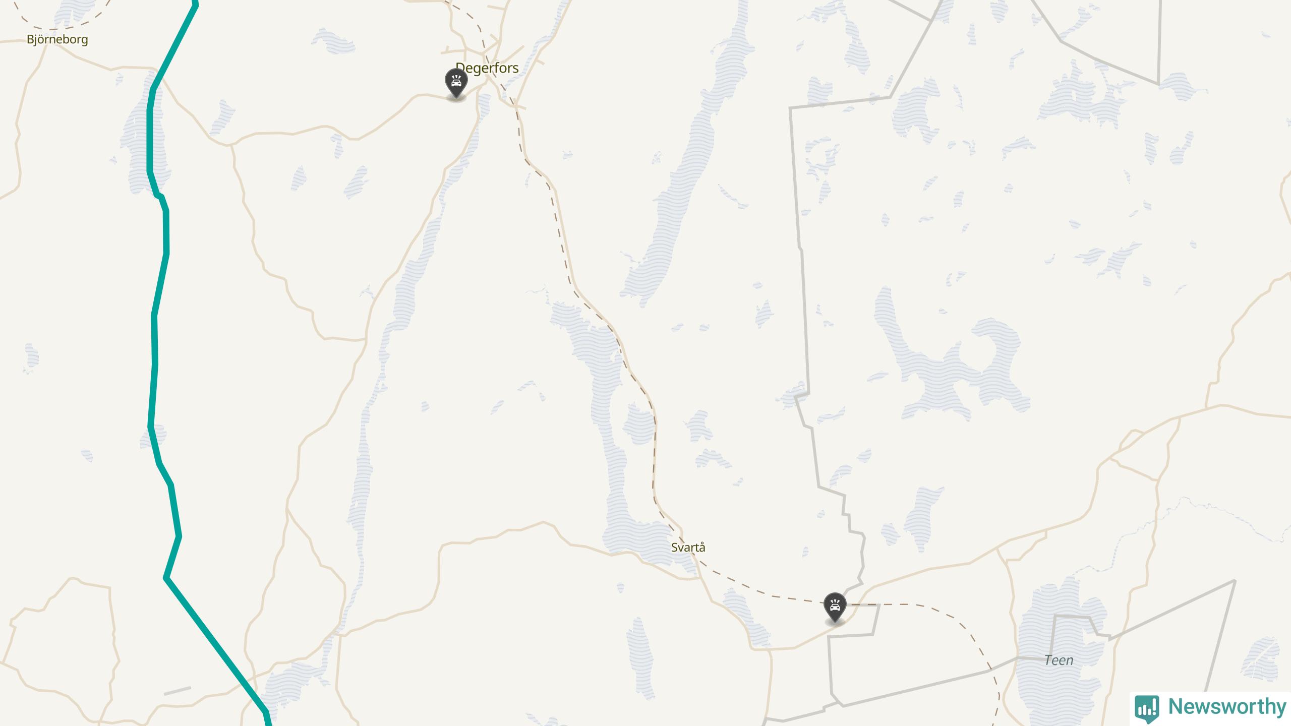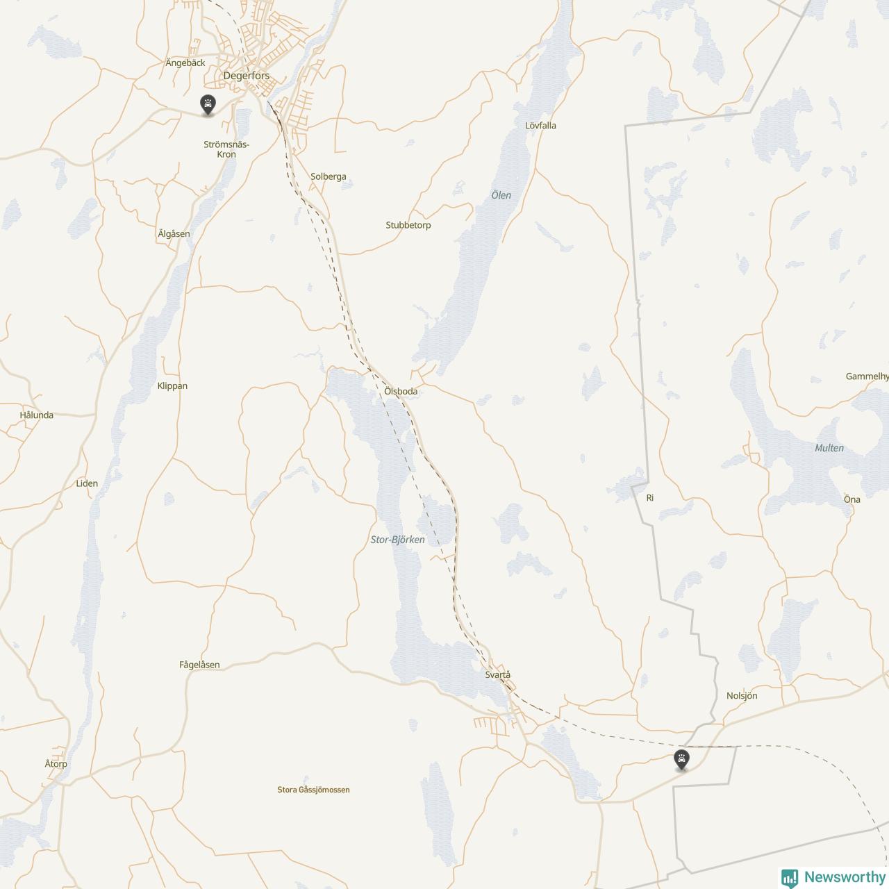 Karta: Förra veckans viltolyckor i Degerfors